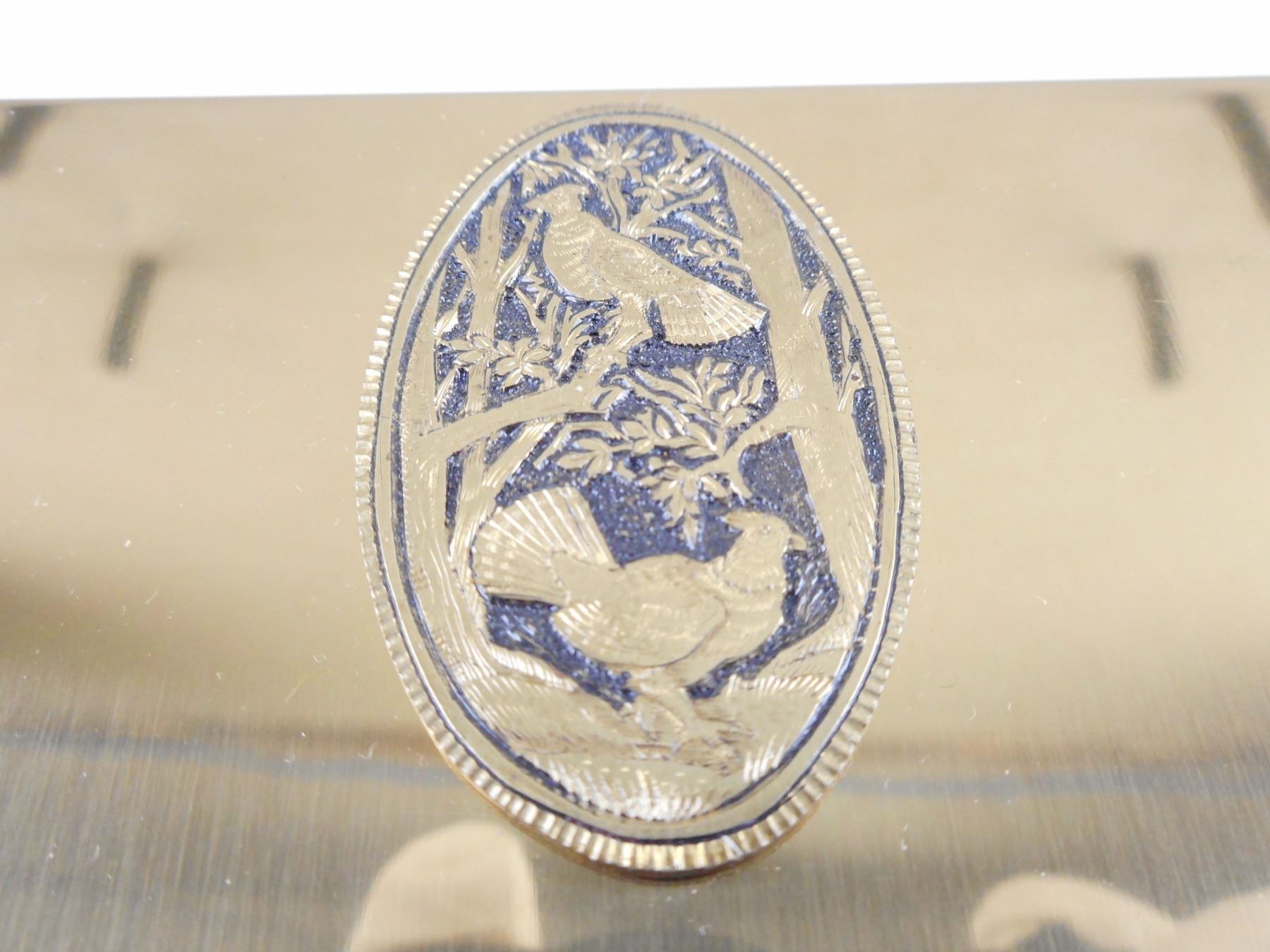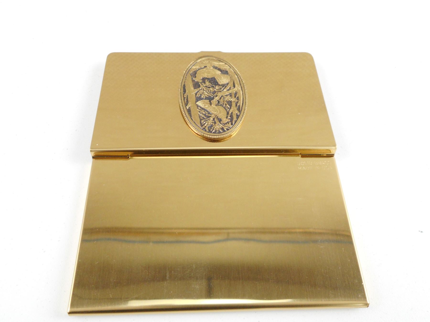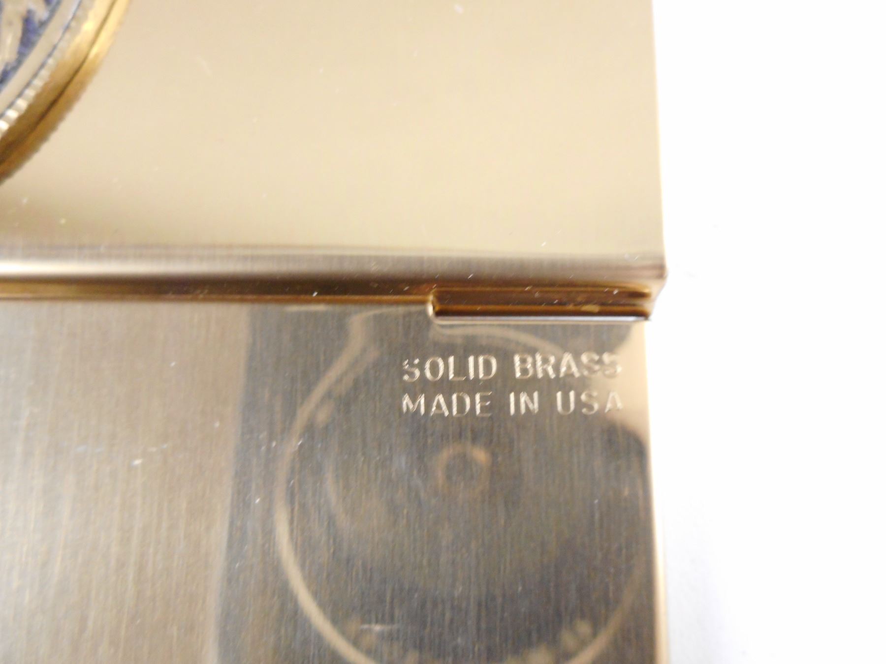 Lot 1063 SOLID BRASS BUISNESS CARD HOLDER WITH ENGRAVED ANIMAL. AND IN WOODEN BOX