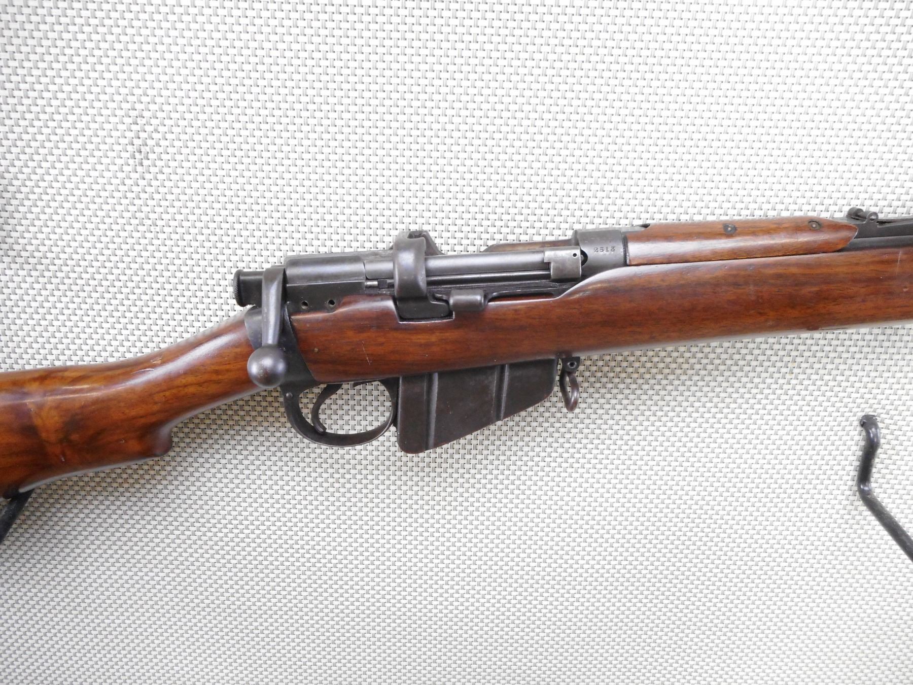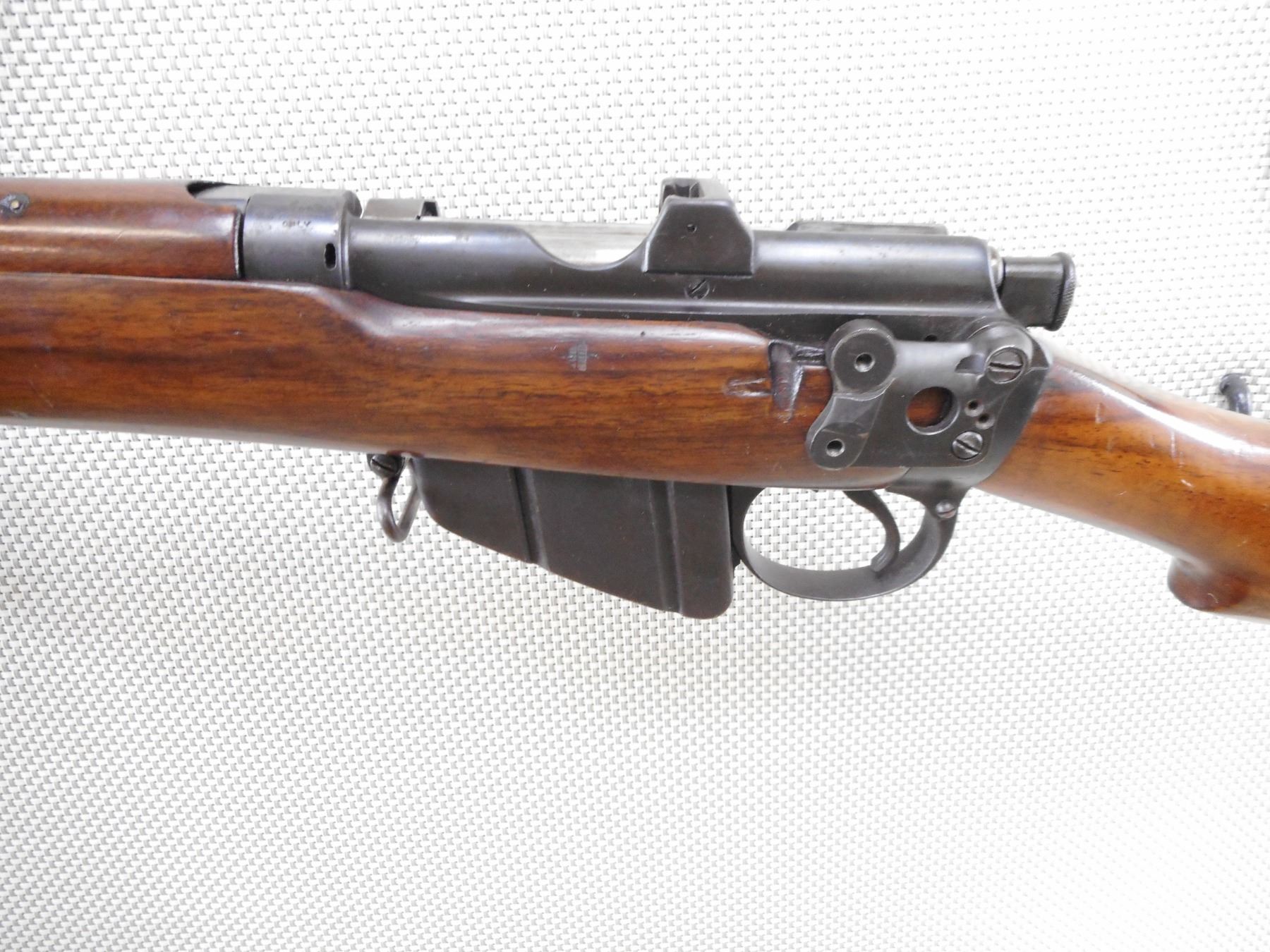LEE ENFIELD , MODEL: CHARGER LOADING LEE METFORD MKII COMMERCIAL , CALIBER: 303 BR , COMES WITH MAGAZINE, BSA COMMERCIAL RECEIVER (NO YEAR) , RECEIVER HAS TWO SERIAL #'S ONE MATCHES THE BOLT. REBARRELED WITH A CROWN BM PROOF ON THE BARREL. FACTORY REPLACEMENT AND RENUMBERED NO 1 MKIII BOLT, SOME BRITISH MILITARY PROOF MARKS JM7 ON TOP OF THE RECEIVER. BORE IS GOOD WITH SOME WEAR. BASE FOR TARGET REAR SIGHT, NO BACK SIGHT LEAF. BARLEY CORN FRONT SIGHT. NEEDS REAR VOLLEY ARM. RIGHT SIDE OF RECEIVER HAS BEEN MODIFIED FOR PEEP SIGHT. NO AVAILABLE SAFETY. TRAP DOOR IN BRASS BUTT PLATE. THREE PIECE HARDWOOD STOCK THAT RETAINS FULL MILITARY CONFIGURATION. MAG CUTOFF. 4 SLING SWIVEL LOOPS. SHOWS SOME HANDLING MARKS AND LIGHT SURFACE PITTING ON THE BARREL ACTION: BOLT ACTION RIFLE , BARREL LENGTH: 30" , SERIAL # L05072513 , CONDITION: 7/10 , CLASS: CANADIAN NON RESTRICTED CLASS