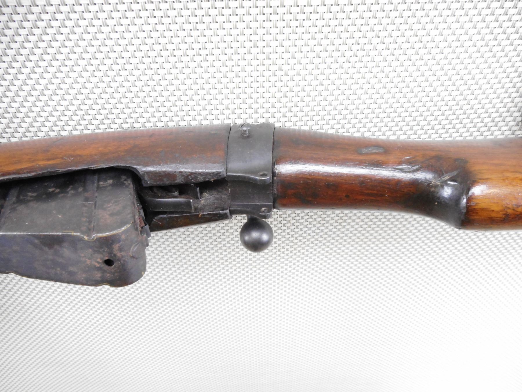 LEE ENFIELD , MODEL: NO. 1 MK III* SMLE , CALIBER: 303 BR , COMES WITH MAGAZINE . BORE IS EXCELLENT. BOLT AND RECEIVER ARE MATCHING BY SERIAL #. RAMP FRONT AND ADJUSTABLE REAR SIGHT. RETAINS ORGINAL MILITARY STOCK. BOLT BODY BUT HAS NO BOLT HEAD. MISSING TRIGGER ASSEMBLY. NO TRIGGER GUARD. NO COSE CAP, PLUNGER OR SCREWS. NO SAFETY AND SCREWS. FOREND CRACKED AT THE REAR. MISSING REINFORCING KEY. MISSING MID BARREL BAND. MISSING BUTT UNIT DISC. VERY GOOD BORE. MISSING MIDDLE BARREL BAND, SWIVEL AND SCREW. NO TOP HAND GUARDS. SHOWS SOME HANDLING MARKS AND WEARACTION: BOLT ACTION RIFLE , BARREL LENGTH: 25" , SERIAL # B93902 , CONDITION: 3/10 , CLASS: CANADIAN NON RESTRICTED CLASS