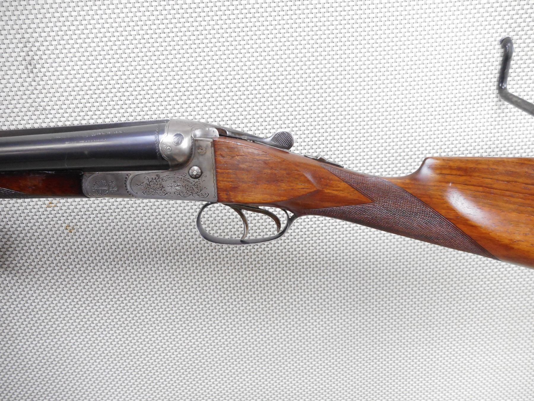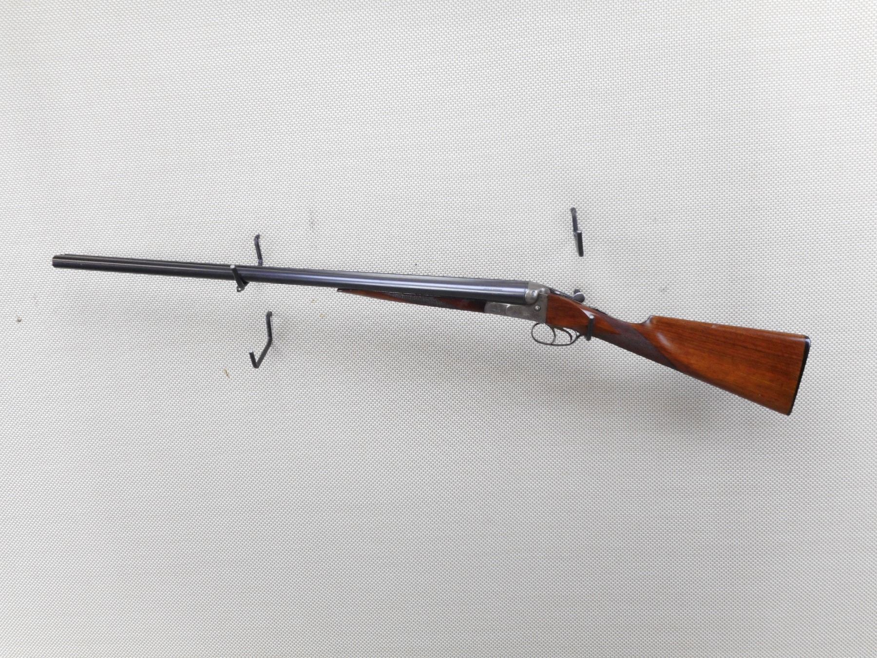 J.P. SAUER & SOHN , MODEL: SIDE BY SIDE , CALIBER: 12GA X 2 3/4" , BORES ARE VERY GOOD. FIXED FULL AND MODIFIED CHOKES. BEAD FRONT SIGHT. CHECKERED TWO PIECE HARDWOOD STOCK WITH PLASTIC BUTT PLATE. 14" LENGTH OF PULL. LIGHTLY ENGRAVED RECEIVER. COCKING INDICATORS. SLING SWIVEL LOOP, MISSING THE REAR ONE. SHOWS SOME HANDLING MARKS. ACTION: SIDE BY SIDE BREAK ACTION SHOTGUN , BARREL LENGTH: 28" , SERIAL # 4249 , CONDITION: 7/10 , CLASS: CANADIAN NON RESTRICTED CLASS