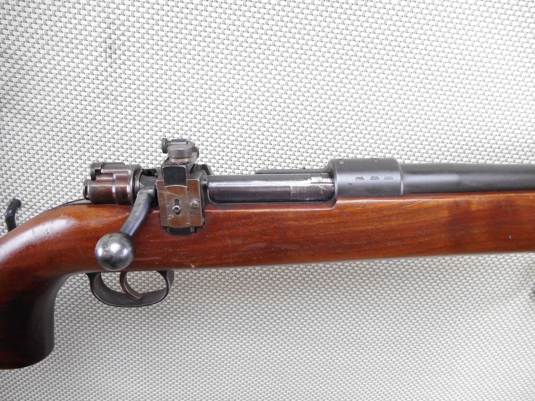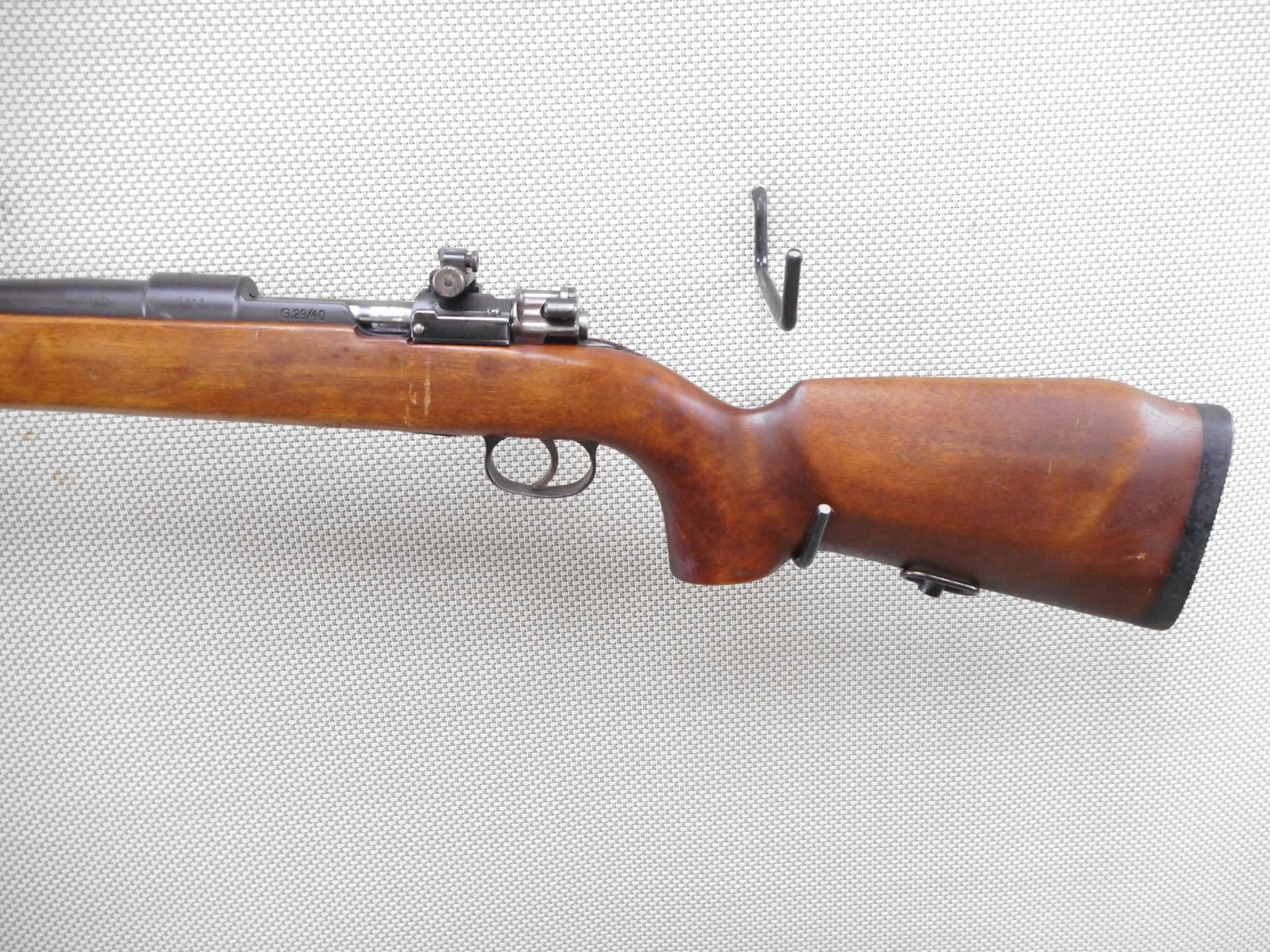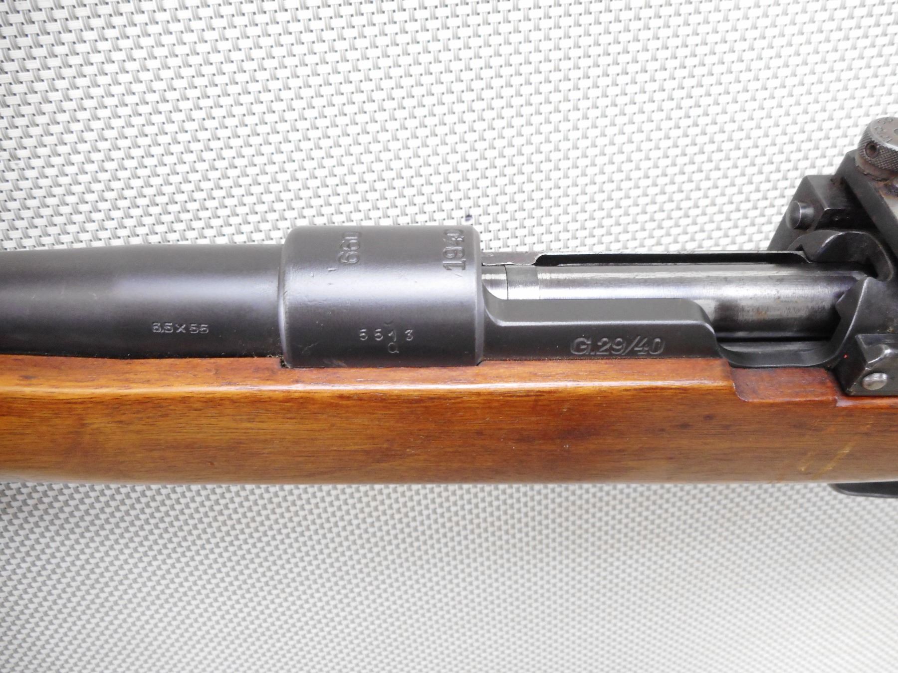 SCHULTZ & LARSEN , MODEL: 69 REWORKED 29/40 MAUSER , CALIBER: 6.5 X 55 SWEDISH MAUSER , DATED 1940. BORE IS VERY GOOD. HOODED FRONT AND PEEP REAR SIGHT. BOLT AND RECEIVER DON'T MATCH BY SERIAL #. ONE PIECE HARDWOOD STOCK WITH RAISED CHEEK PIECE. RUBBER BUTT PLATE. SLING SWIVEL LOOPS. SHOWS SOME HANDLING MARKS. ACTION: BOLT ACTION RIFLE , BARREL LENGTH: 29" , SERIAL # 5513 , CONDITION: 6/10 , CLASS: CANADIAN NON RESTRICTED CLASS