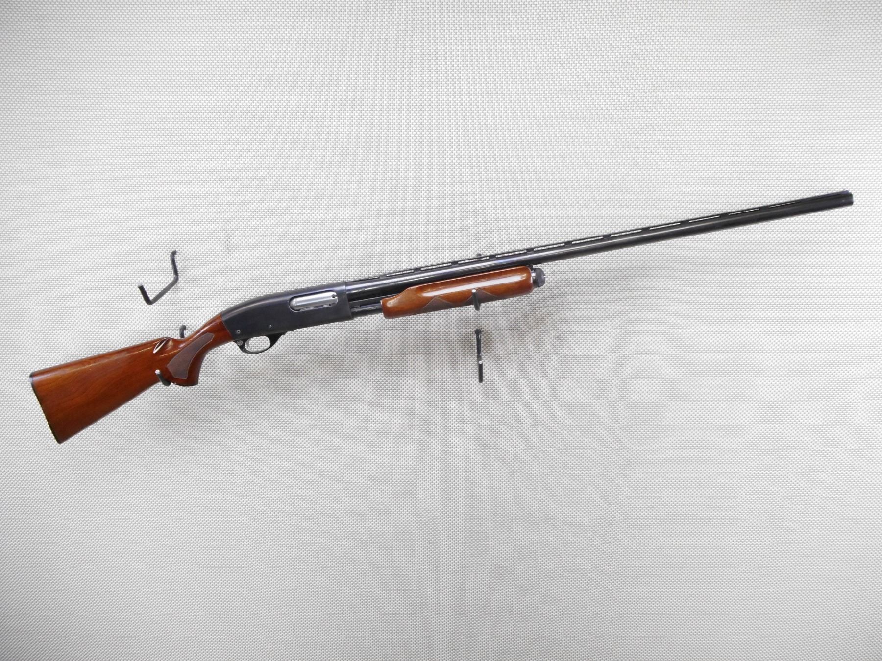 REMINGTON , MODEL: 870 WINGMASTER , CALIBER: 12GA X 2 3/4" , BORE IS EXCELLENT WITH A FIXED FULL CHOKE. BEAD FRONT SIGHT ON A VENTED RIB BARREL. CHECKERED TWO PIECE HARDWOOD STOCK WITH CAPPED PISTOL GRIP AND PLASTIC BUTT PLATE. SHOWS VERY LITTLE HANDLING MARKS. ACTION: PUMP ACTION SHOTGUN , BARREL LENGTH: 28" , SERIAL # 731019V , CONDITION: 8/10 , CLASS: CANADIAN NON RESTRICTED CLASS