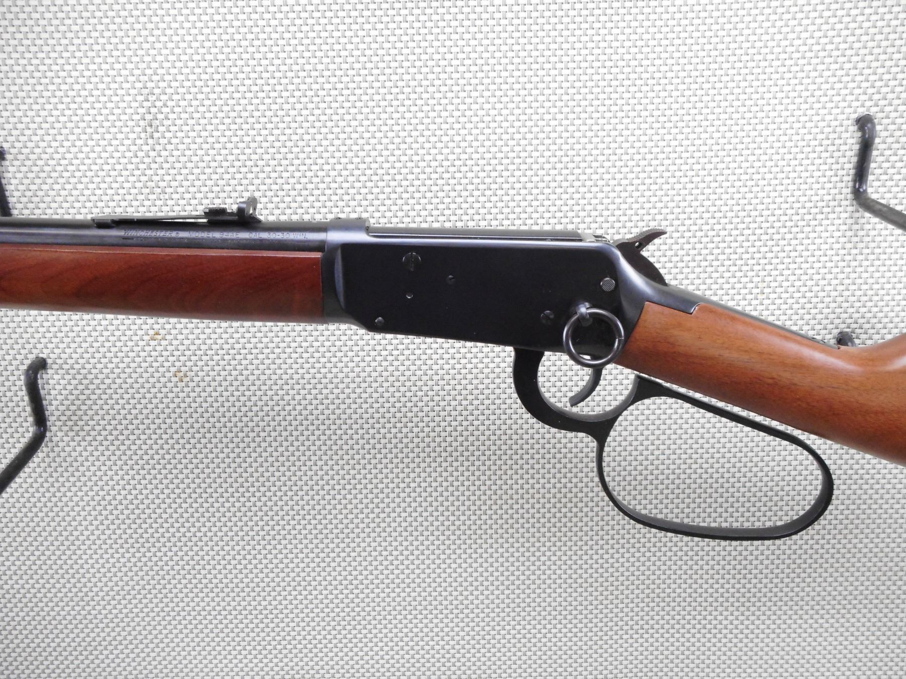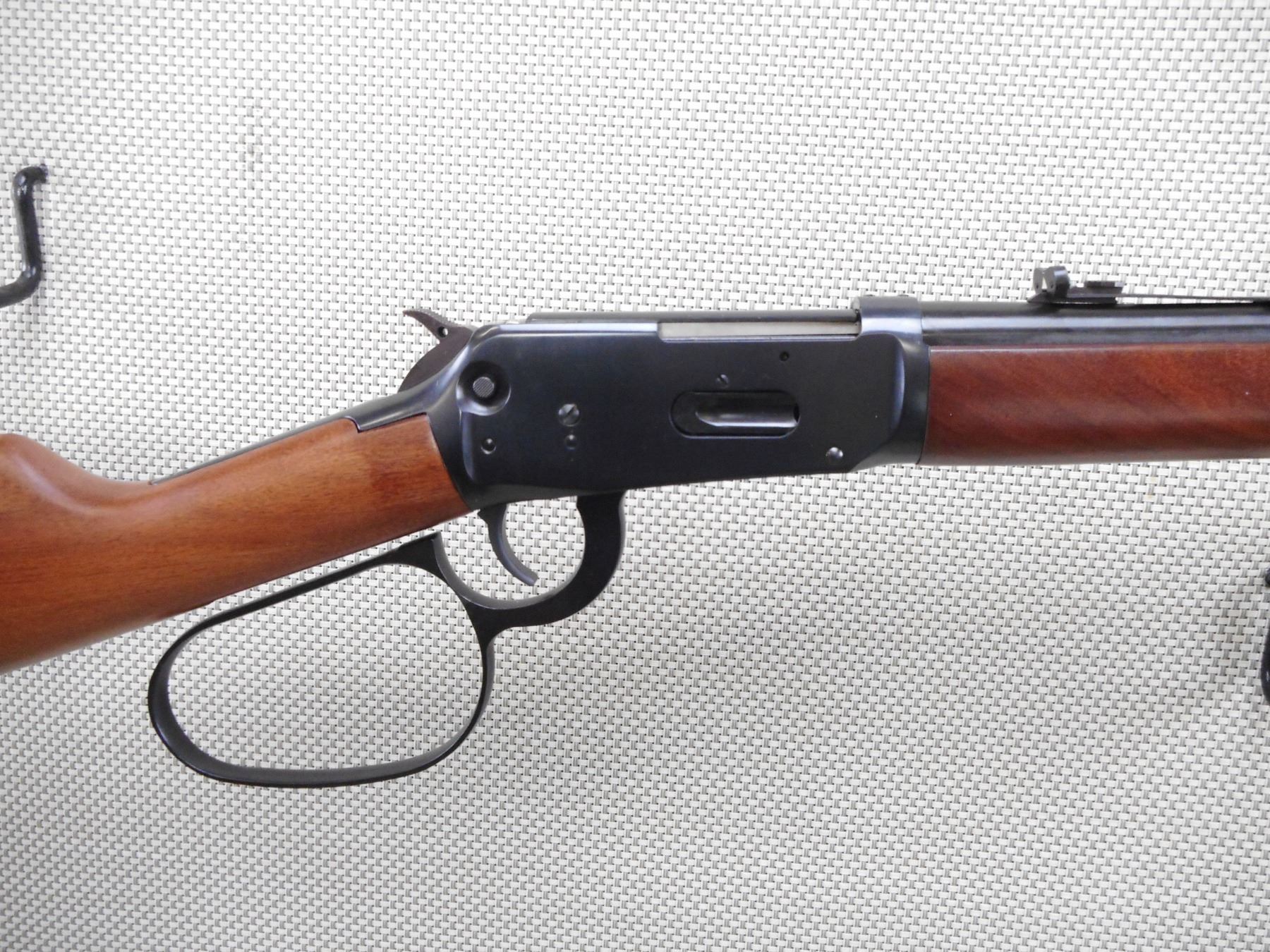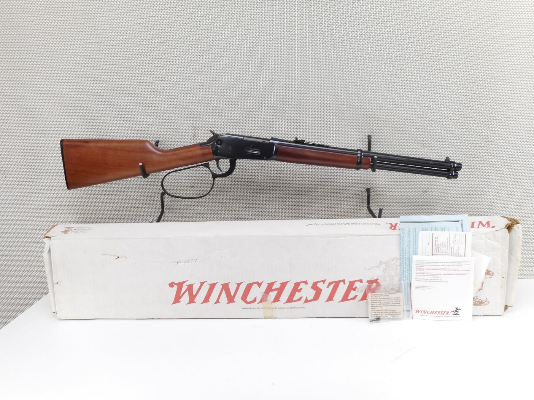 WINCHESTER , MODEL: 94 AE , CALIBER: 30-30 WIN , COMES WITH BOX (DAMAGED), MANUAL. HAMMER EXTENSION. BORE IS EXCELLENT, APPEARS AS NEW, MAY HAVE BEEN TEST FIRED. BLADE FRONT AND ADJUSTABLE REAR SIGHT. TWO PIECE HARDWOOD STOCK WITH PLASTIC BUTT PLATE. OVER SIZED LEVER LOOP. SADDLE RING. SHOWS VIRTUALLY NO HANDLING MARKS. ACTION: LEVER ACTION RIFLE , BARREL LENGTH: 16" , SERIAL # 6085341 , CONDITION: AS NEW IN BOX , CLASS: CANADIAN NON RESTRICTED CLASS