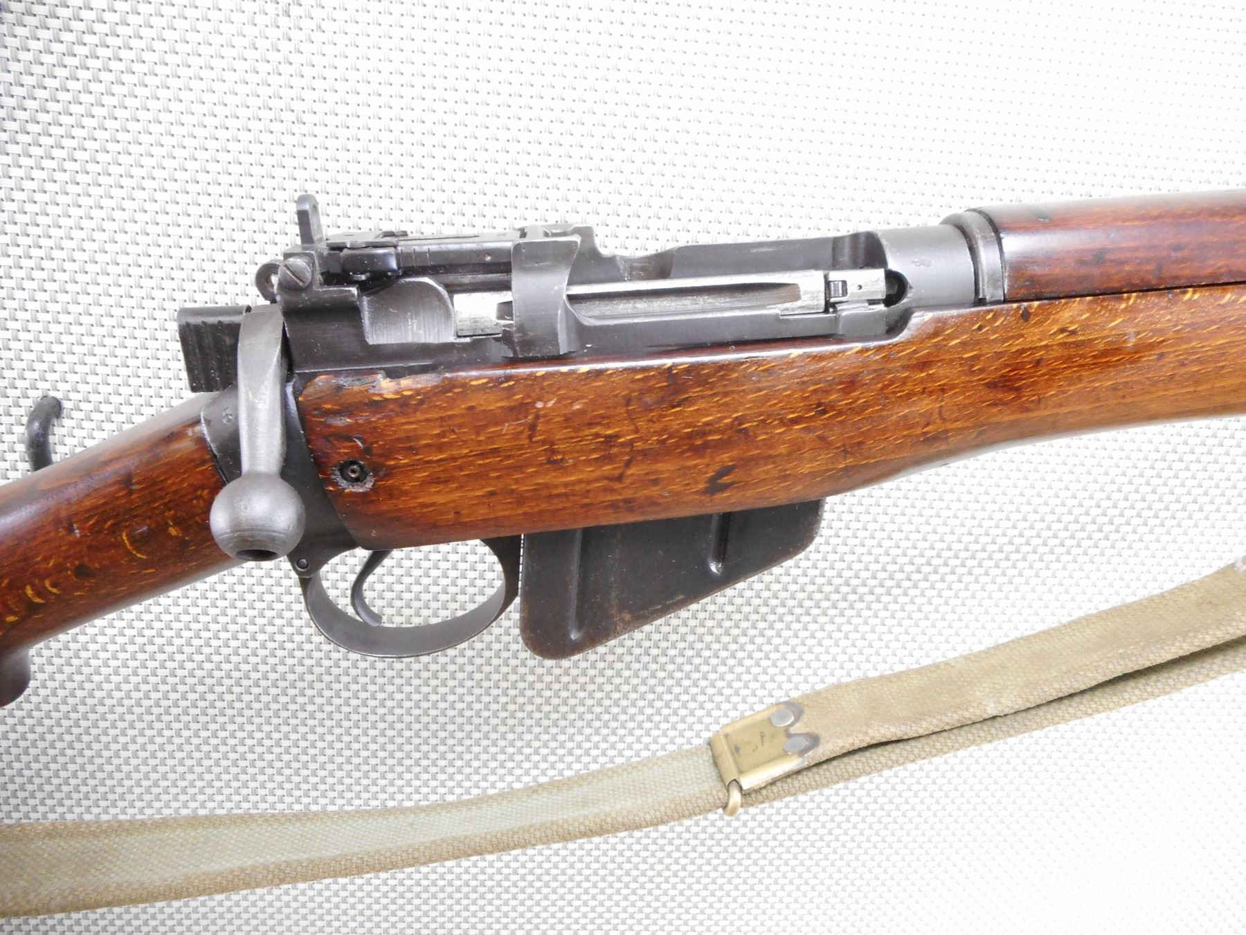 WWII ERA, LEE ENFIELD , MODEL: NO. 4 MK I* , CALIBER: 303 BR , COMES WITH MAGAZINE. BORE IS VERY GOOD. # HAS BEEN REMVOED ON THE BOLT. DATED 1942. MANUFACTURED BY SAVAGE. BARLEY CORN FRONT AND PEEP REAR SIGHTS. 4 PIECE HARDWOOD STOCK WITH STEEL BUTT PLATE. RETAINS FULL MILITARY CONFIGURATION. ORIGINAL MILITARY CANVAS SLING. SHOWS SOME HANDLING MARKS. ACTION: BOLT ACTION RIFLE , BARREL LENGTH: 25 1/2" , SERIAL # 36C4348 , CONDITION: 7/10 , CLASS: CANADIAN NON RESTRICTED CLASS