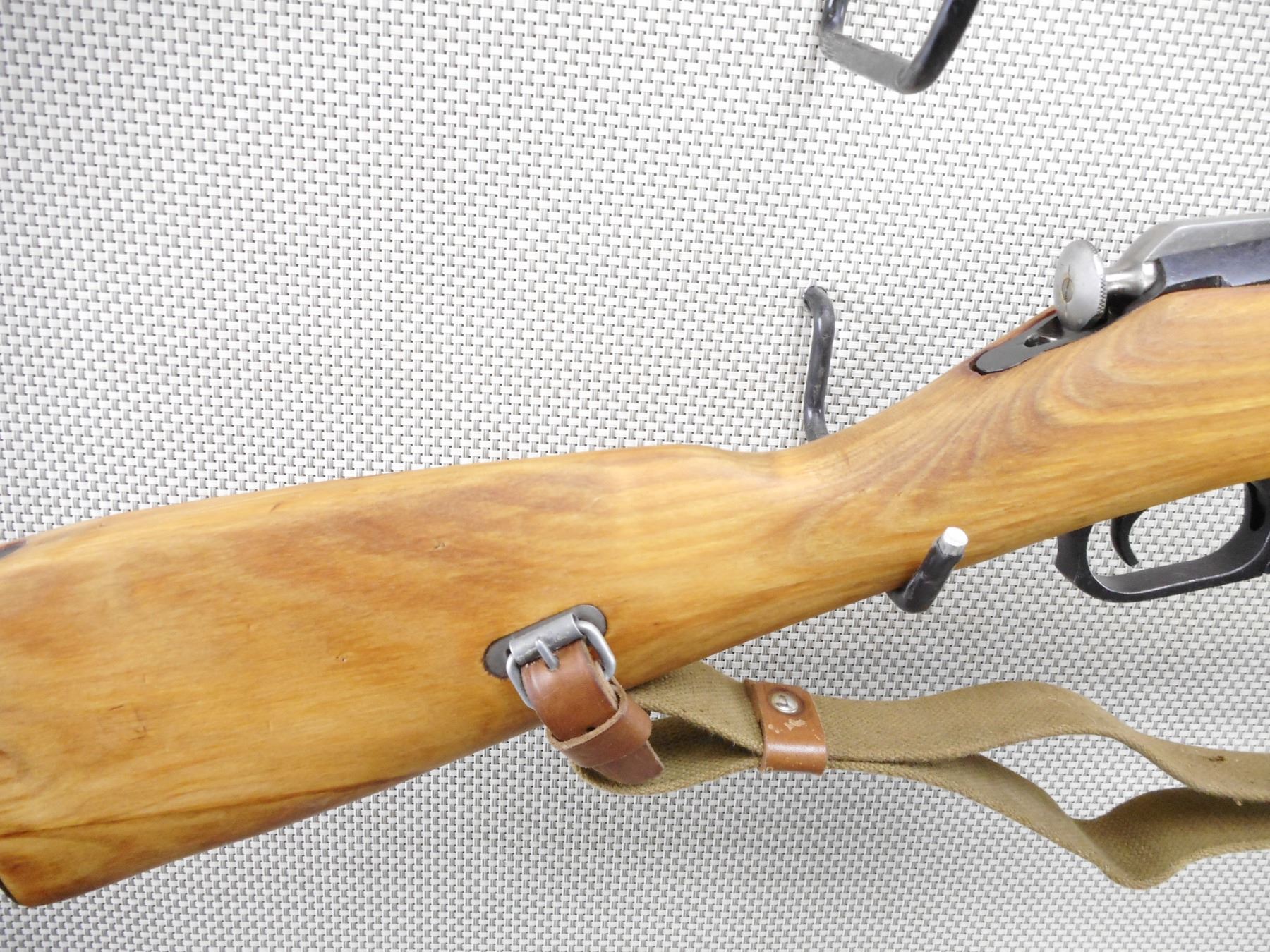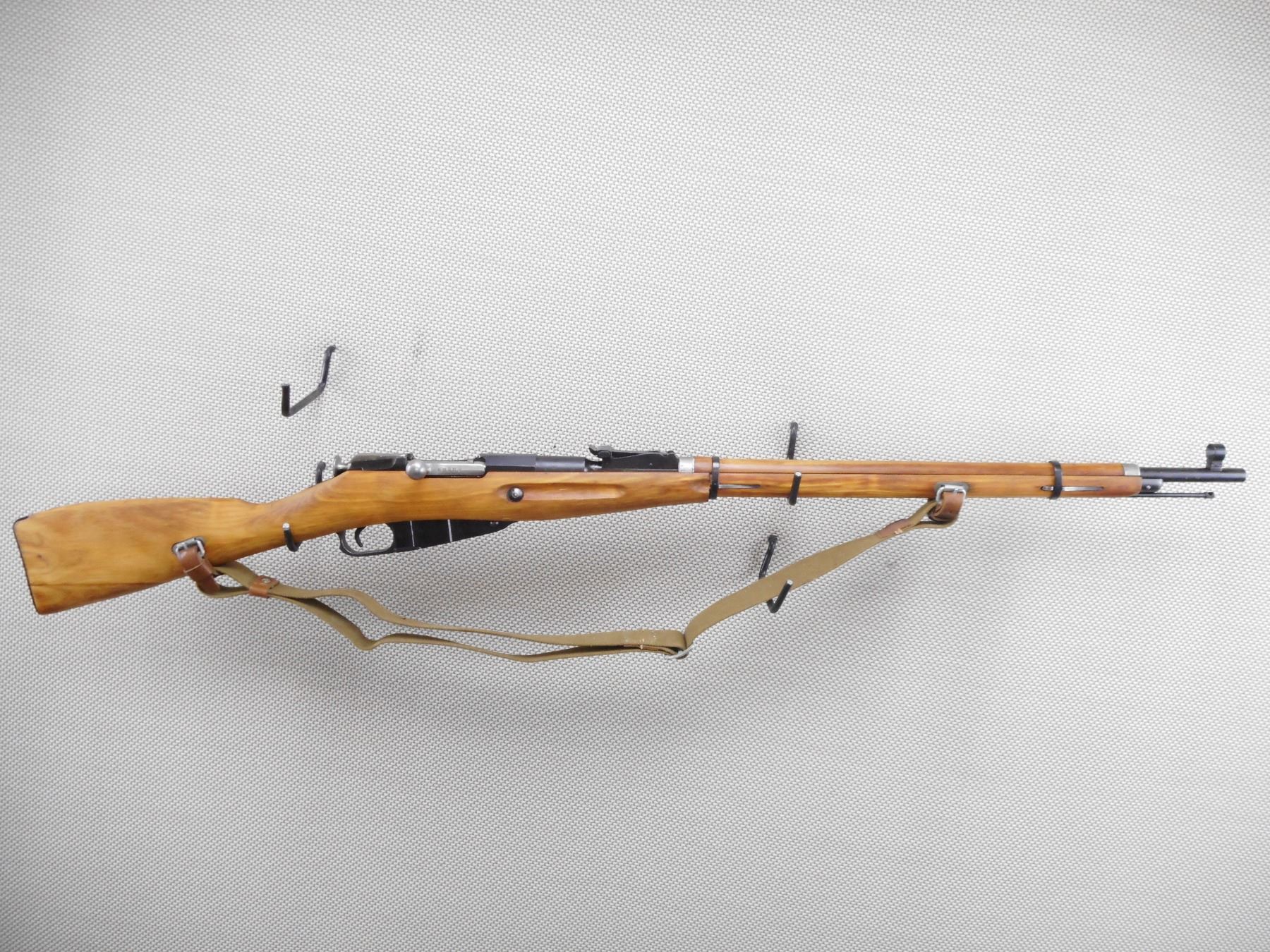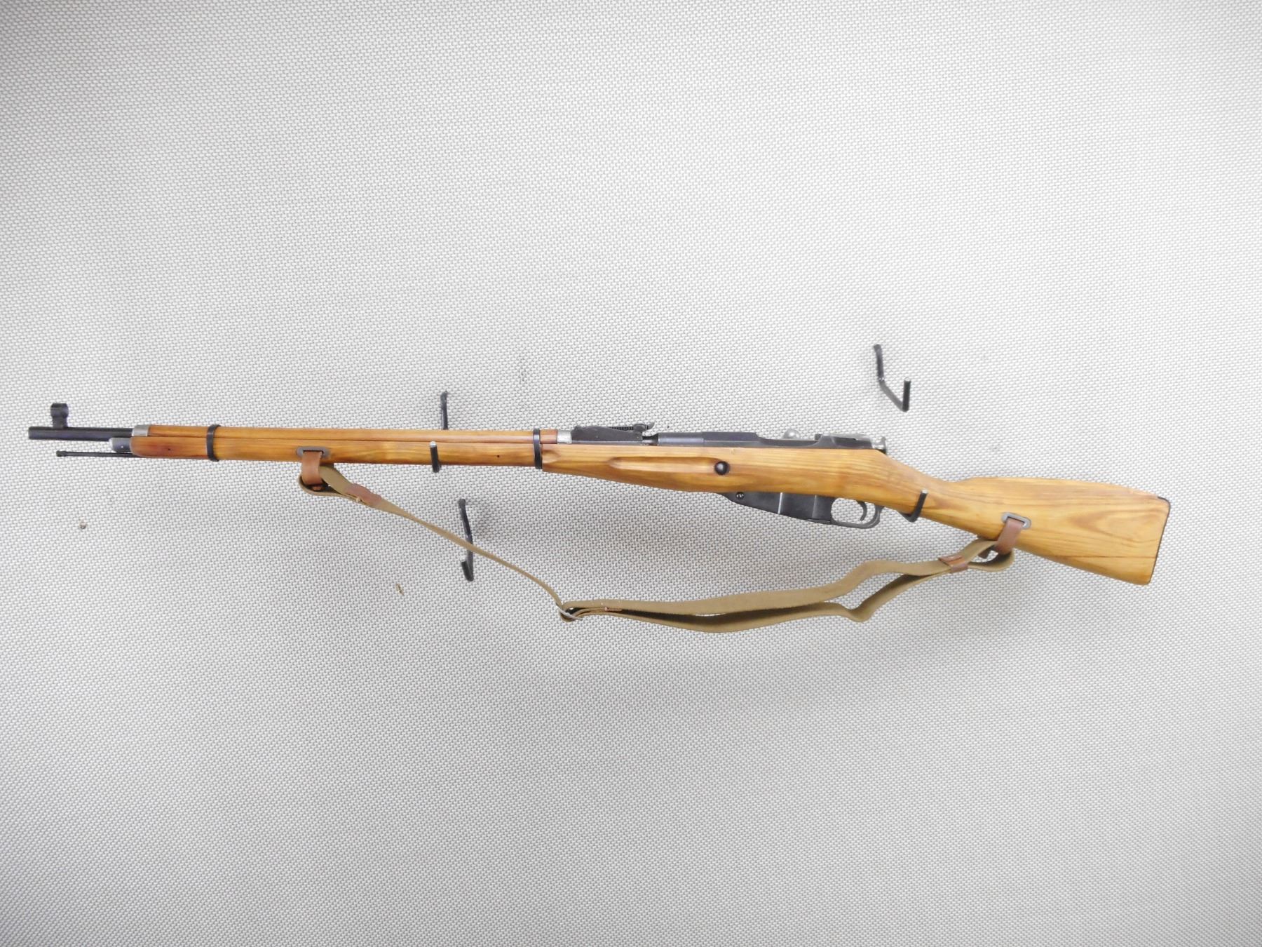 MOSIN NAGANT , MODEL: M91/30 DRAGOON , CALIBER: 7.62 X 54 R , BORE IS GOOD. DATED 1929. TULA ARSENAL. BOLT AND RECEIVER ARE MATCHING BY SERIAL#. HOODED FRONT AND ADJUSTABLE REAR SIGHT. RETAINS FULL MILITARY CONFIGURATION. TWO PIECE HARDWOOD STOCK WITH STEEL BUTT PLATE. LEATHER AND CANVAS SLING. ORIGINAL CLEANING ROD. SHOWS VERY LITTLE HANDLING MARKS. ACTION: BOLT ACTION RIFLE , BARREL LENGTH: 27" , SERIAL # 86829 , CONDITION: 8/10 , CLASS: CANADIAN NON RESTRICTED CLASS