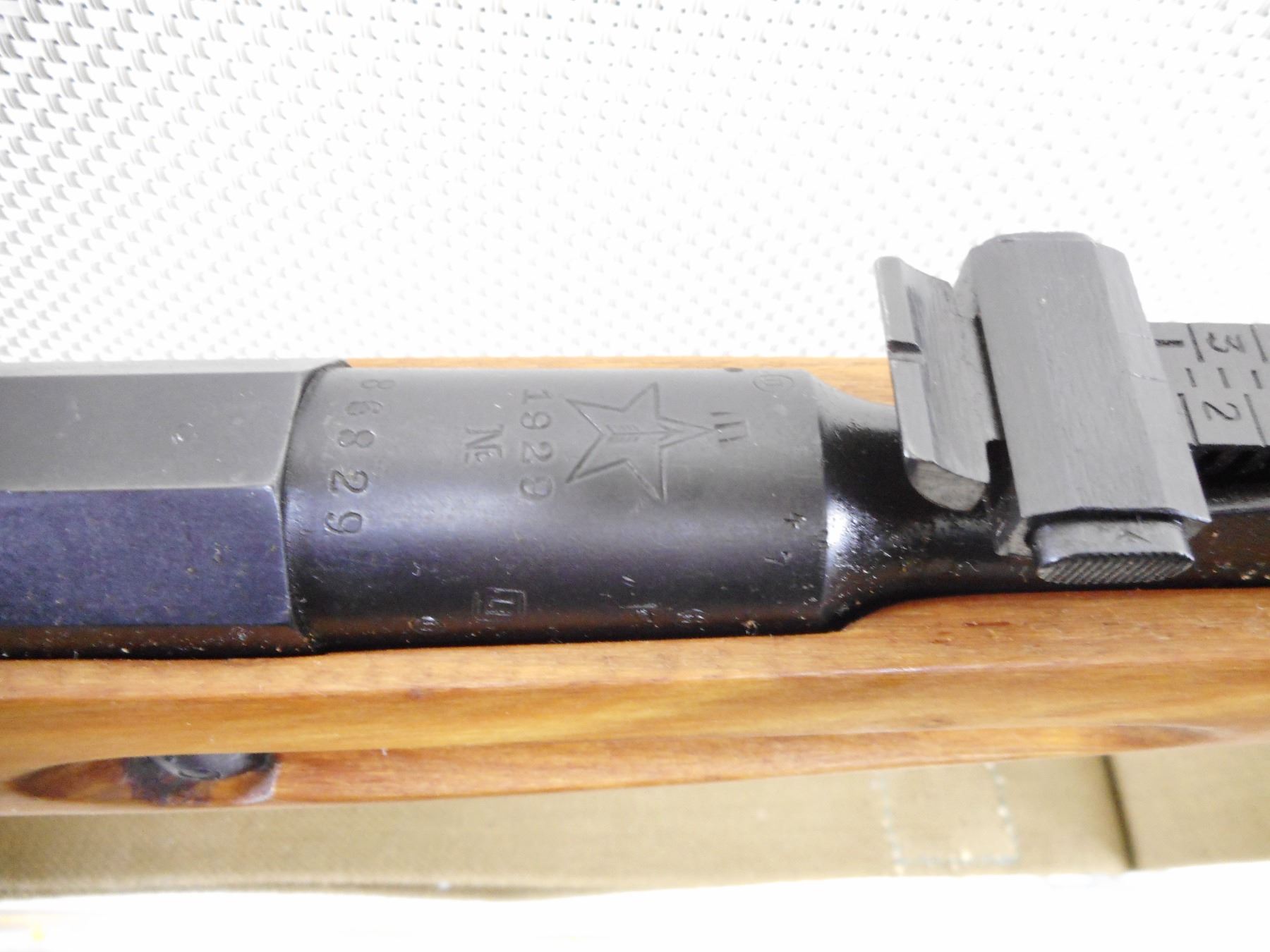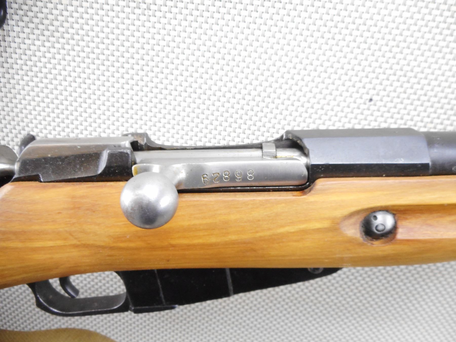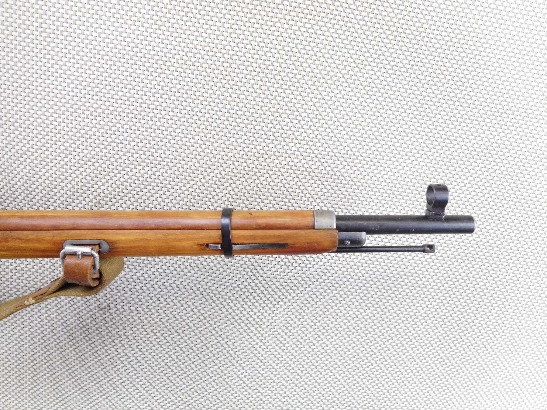 MOSIN NAGANT , MODEL: M91/30 DRAGOON , CALIBER: 7.62 X 54 R , BORE IS GOOD. DATED 1929. TULA ARSENAL. BOLT AND RECEIVER ARE MATCHING BY SERIAL#. HOODED FRONT AND ADJUSTABLE REAR SIGHT. RETAINS FULL MILITARY CONFIGURATION. TWO PIECE HARDWOOD STOCK WITH STEEL BUTT PLATE. LEATHER AND CANVAS SLING. ORIGINAL CLEANING ROD. SHOWS VERY LITTLE HANDLING MARKS. ACTION: BOLT ACTION RIFLE , BARREL LENGTH: 27" , SERIAL # 86829 , CONDITION: 8/10 , CLASS: CANADIAN NON RESTRICTED CLASS