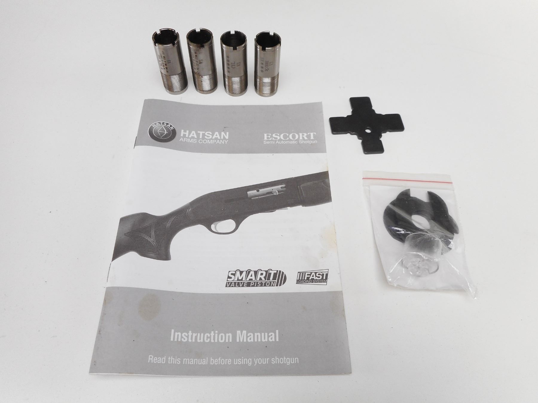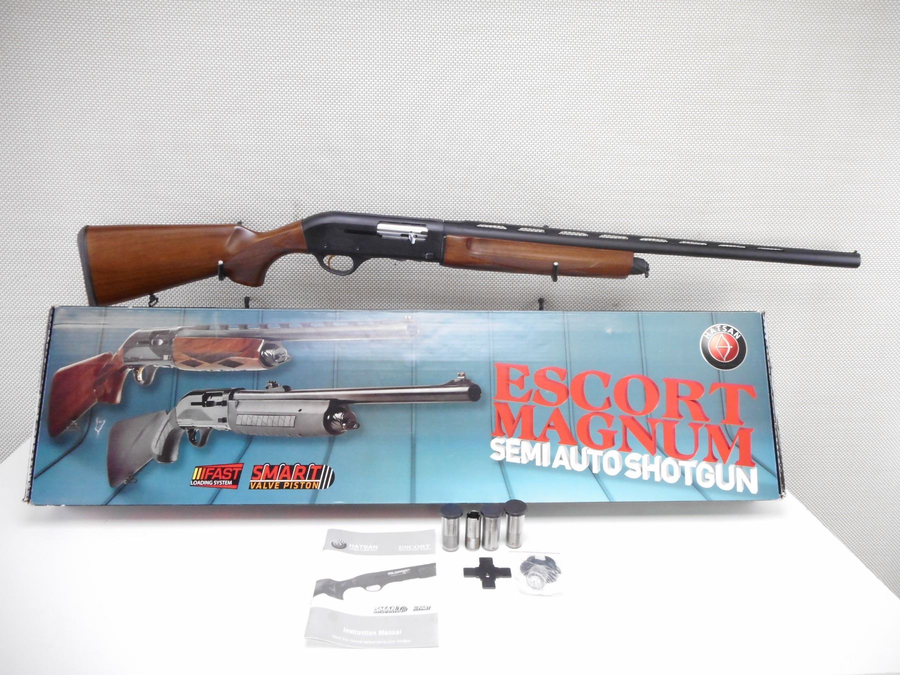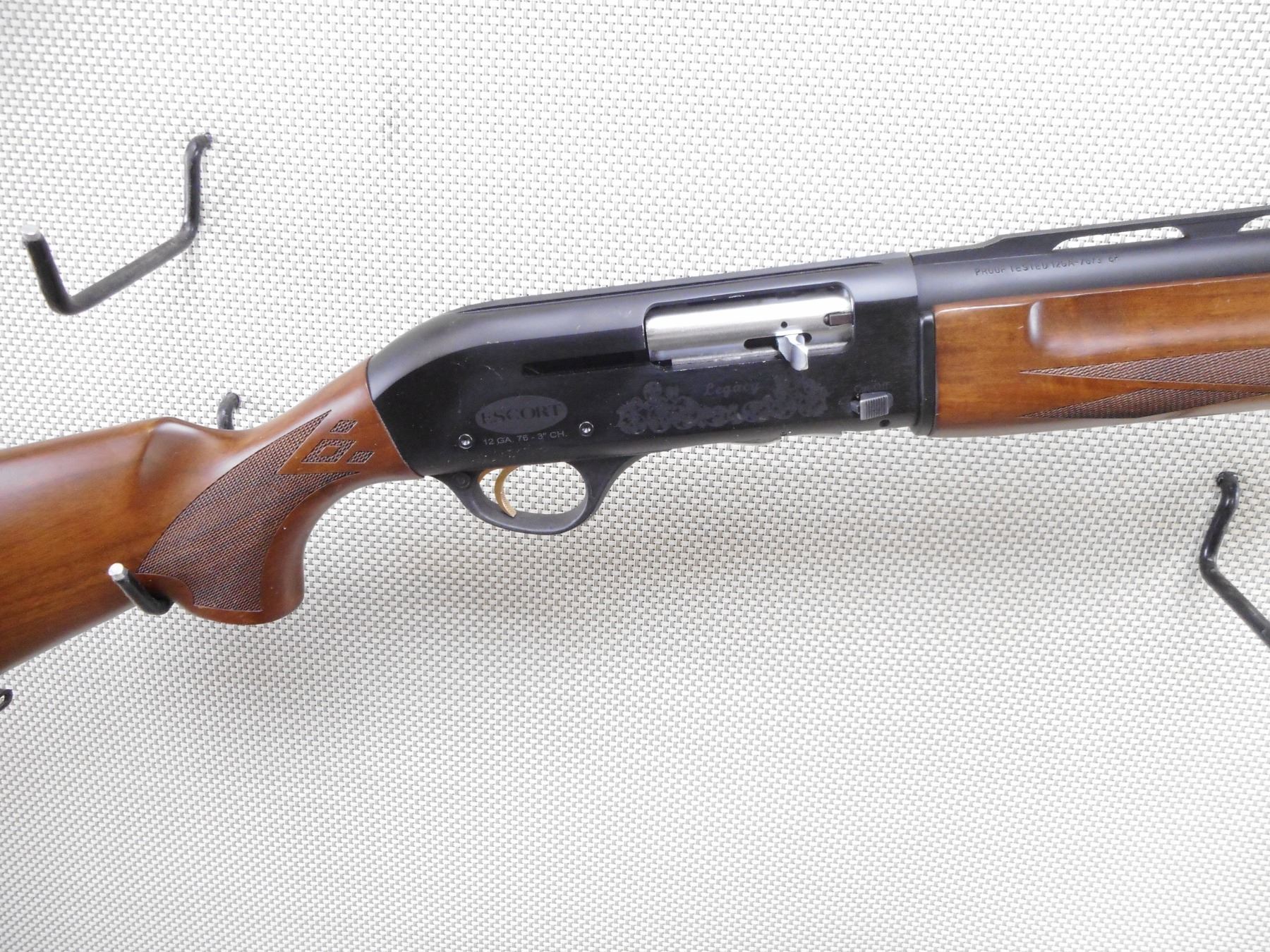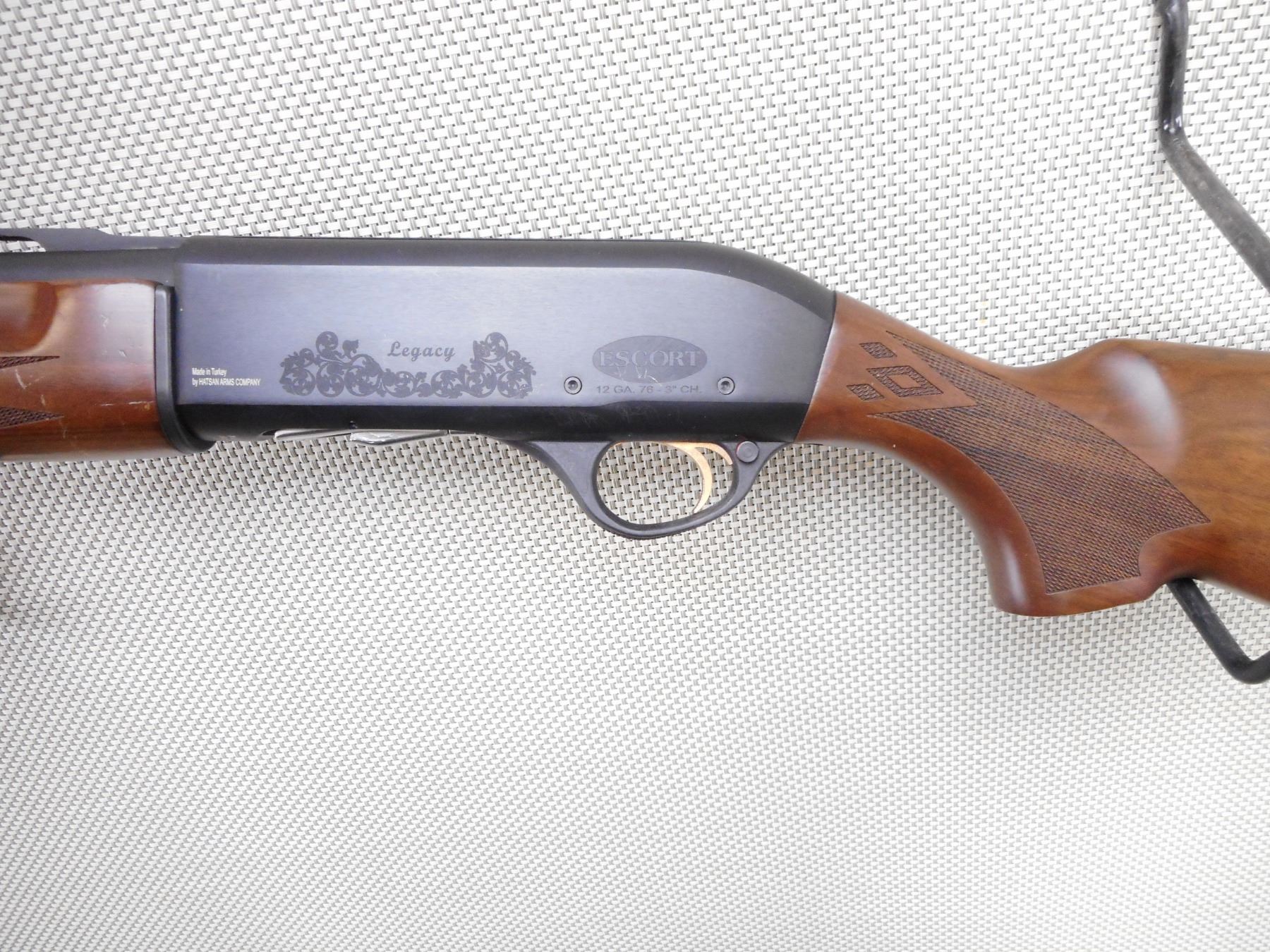 HATSAN , MODEL: ESCORT , CALIBER: 12 GA X 3" , COMES WITH BOX AND 5 CHOKES. BORE IS VERY GOOD. FIBER OPTIC FRONT ON A VENTED RIB BARREL. CHECKERED TWO PIECE HARDWOOD STOCK WITH VENTED RUBBER RECOIL PAD. SHOWS SOME HANDLING MARKS. ACTION: SEMI-AUTOMATIC SHOTGUN , BARREL LENGTH: 26" , SERIAL # 14390650 , CONDITION: 8/10 , CLASS: CANADIAN NON RESTRICTED CLASS