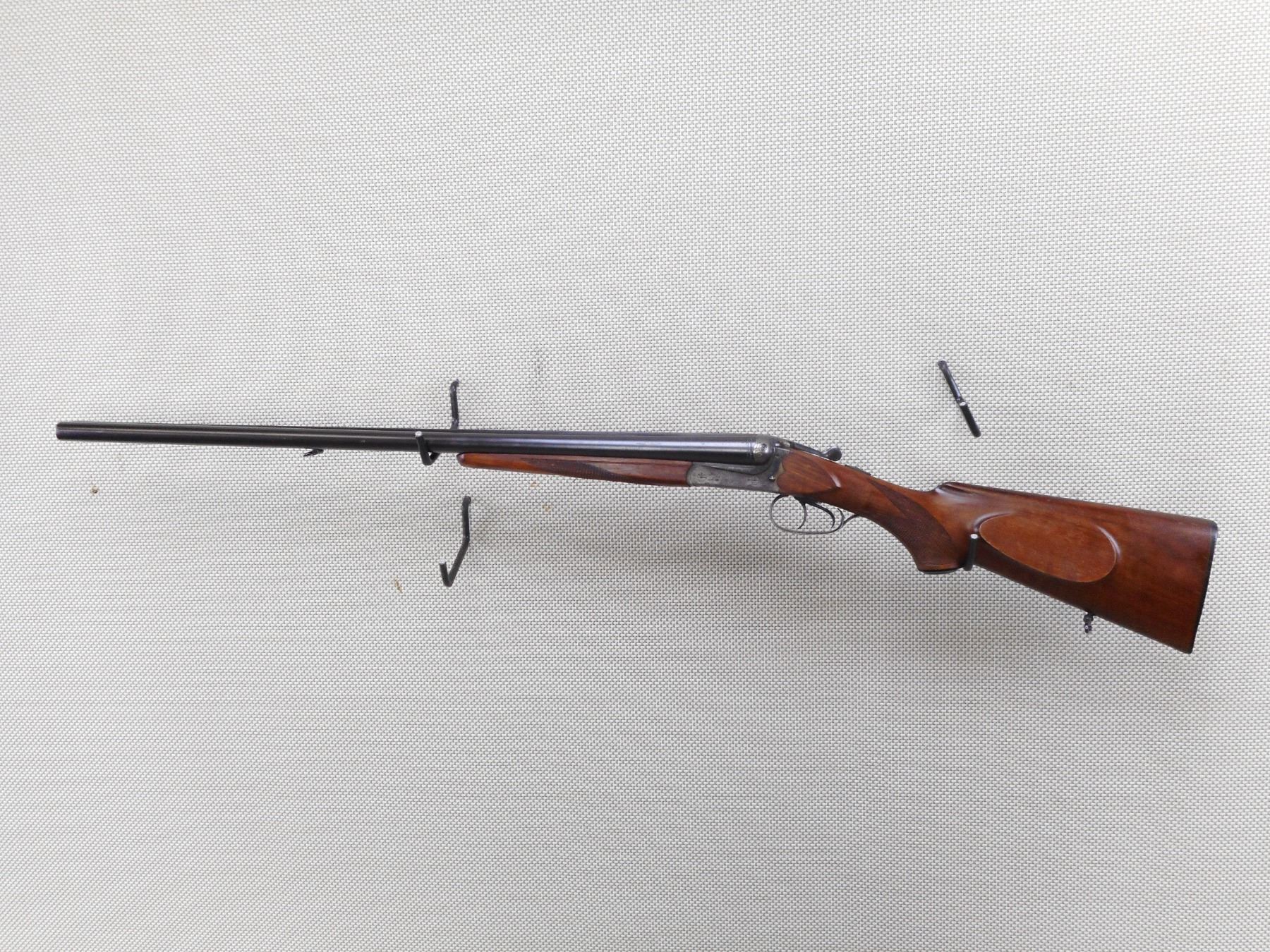 MERKEL , MODEL: SIDE BY SIDE , CALIBER: 12GA X 2 3/4" , FIXED FULL CHOKES. BORES ARE FAIR. CHECKERED TWO PIECE HARDWOOD STOCK WITH RAISED CHEEK PIECE. CASE HARDENED RECEIVER. SOME LIGHT SURFACE PITTING ON THE BARRELS. MISSING THE BEAD FRONT SIGHT. PLASTIC BUTT PLATE. SHOWS SOME HANDLING MARKS. ACTION: SIDE BY SIDE BREAK ACTION SHOTGUN , BARREL LENGTH: 28" , SERIAL # 602690 , CONDITION: 6/10 , CLASS: CANADIAN NON RESTRICTED CLASS