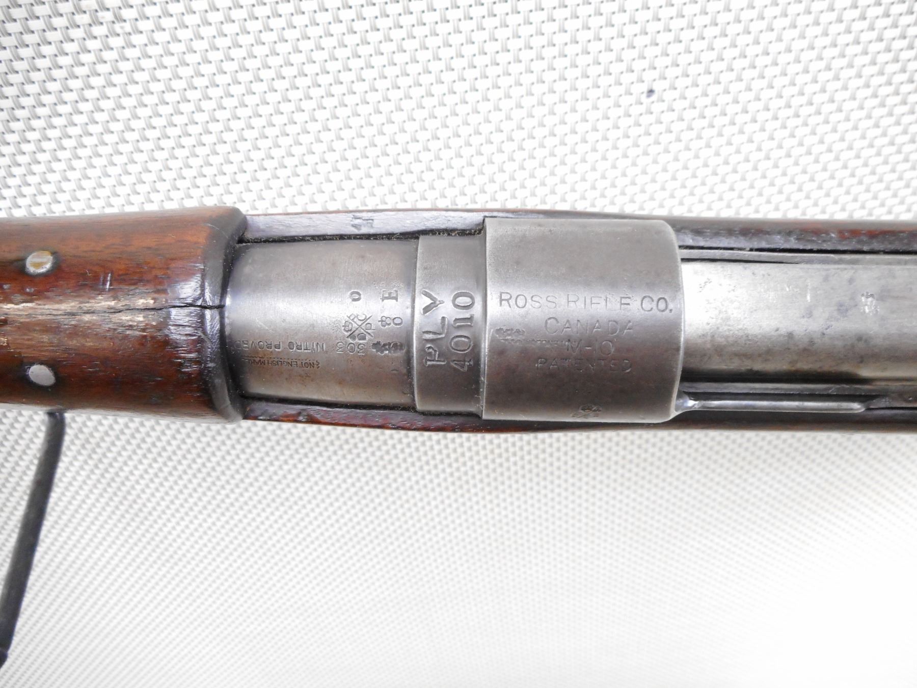 ROSS , MODEL: M-10 SPORTER , CALIBER: 303 BR , BORE IS EXCELLENT. BOLT AND RECEIVER DON'T MATCH BY SERIAL #. RAMP FRONT AND ADJUSTABLE REAR PEEP SIGHT. TWO PIECE HARDWOOD STOCK WITH SLING SWIVEL LOOPS. STEEL BUTT PLATE. ORIGINAL STOCK MARKINGS REMOVED. SHOWS SOME HANDLING MARKS.ACTION: STRAIGHT PULL , BARREL LENGTH: 24 1/2" , SERIAL # PLY4010 , CONDITION: 6/10 , CLASS: CANADIAN NON RESTRICTED CLASS