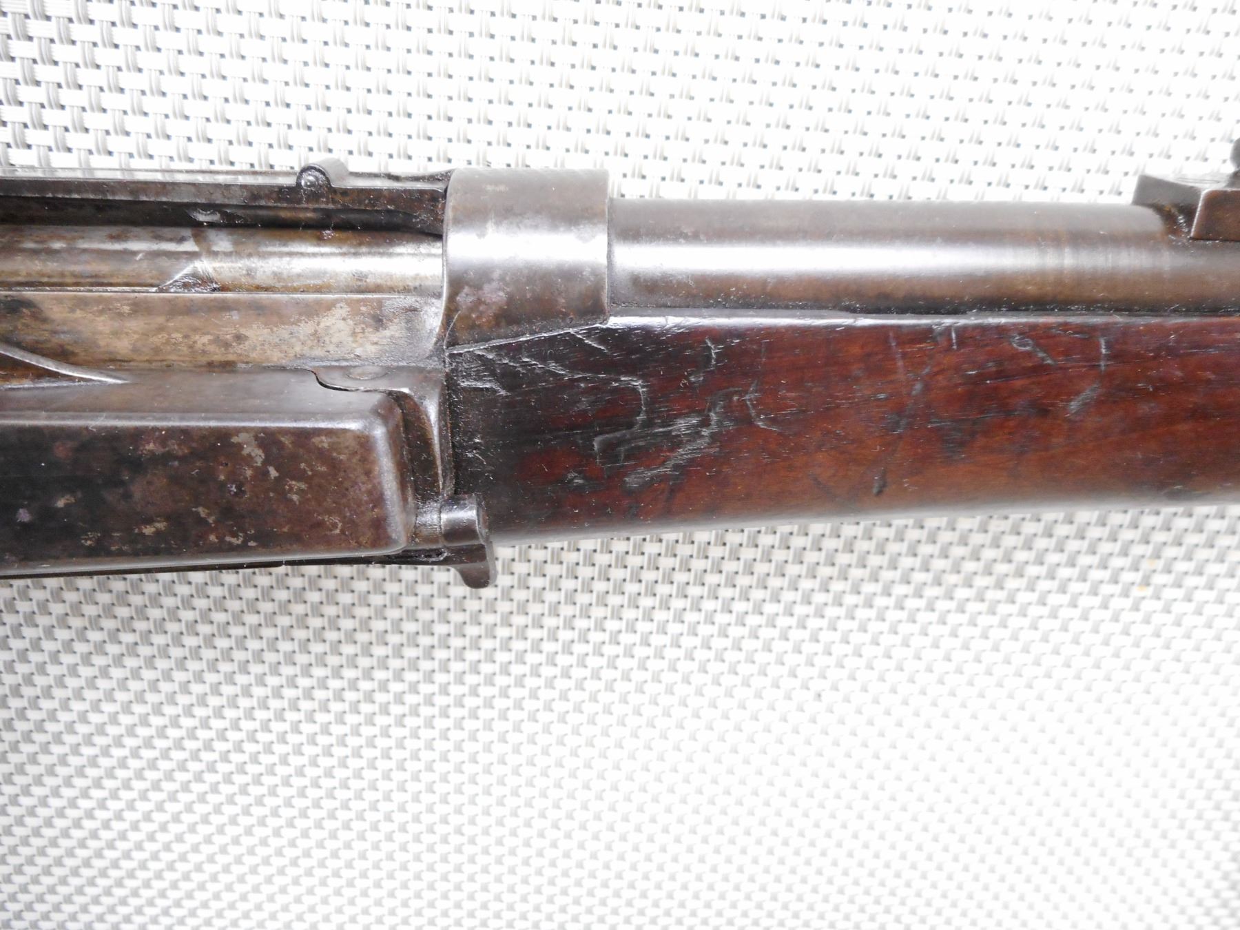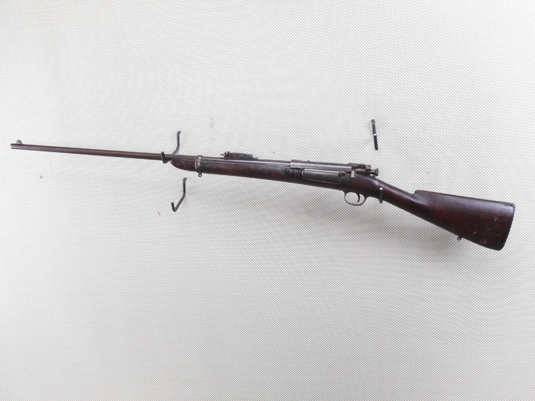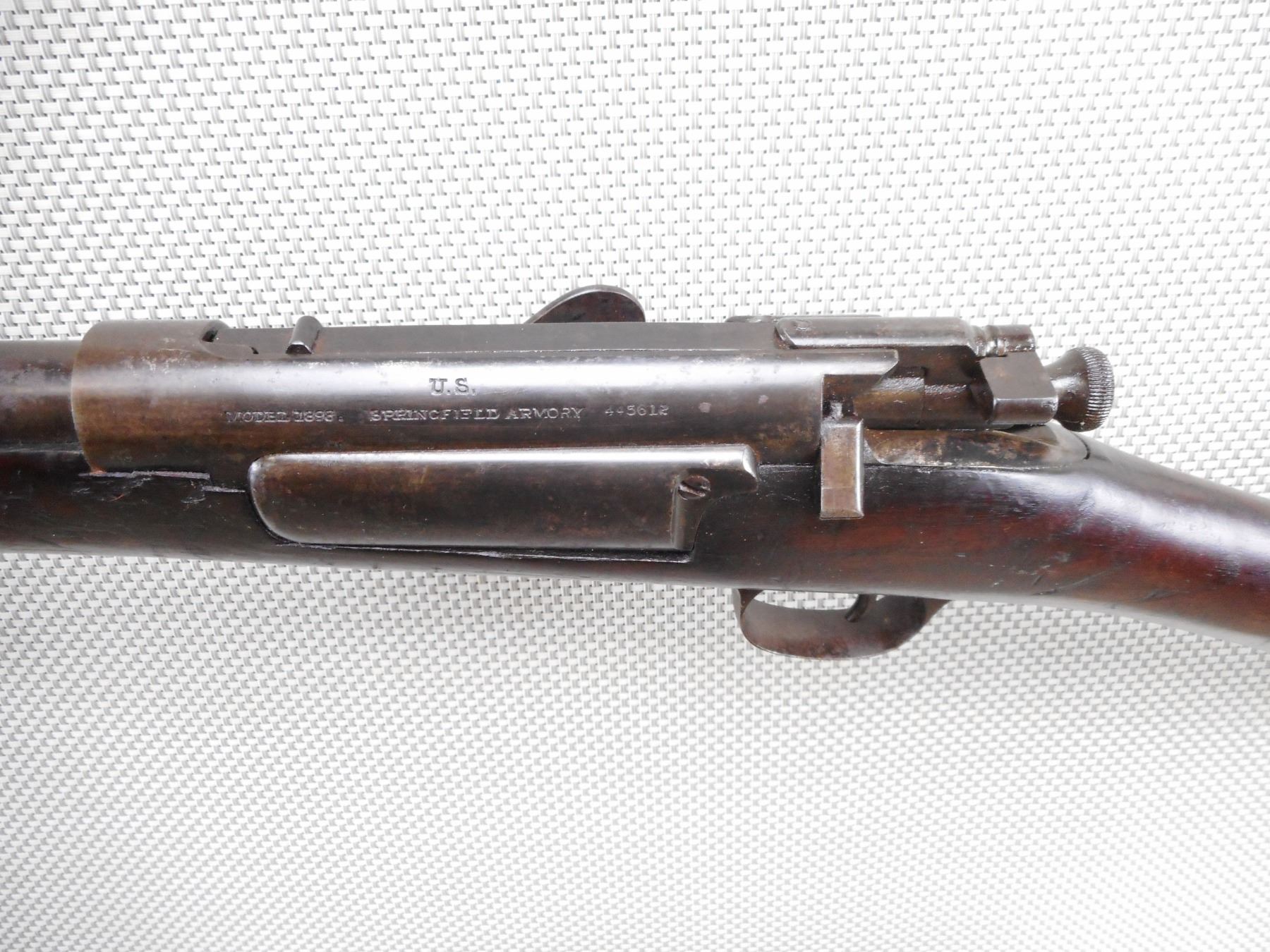 SPRINGFIELD ARMOURY , MODEL: 1898 KRAG SPORTER , CALIBER: 30-40 KRAG , BORE IS GOOD WITH SOME PITTING. BLADE FRONT AND ADJUSTABLE REAR SIGHT. ONE PIECE HARDWOOD STOCK WITH STEEL BUT PLATE. SLING SWIVEL LOOPS. SHOWS SOME HANDLING MARKS. ACTION: BOLT ACTION RIFLE , BARREL LENGTH: 30" , SERIAL # 445612 , CONDITION: 5/10 , CLASS: CANADIAN NON RESTRICTED CLASS