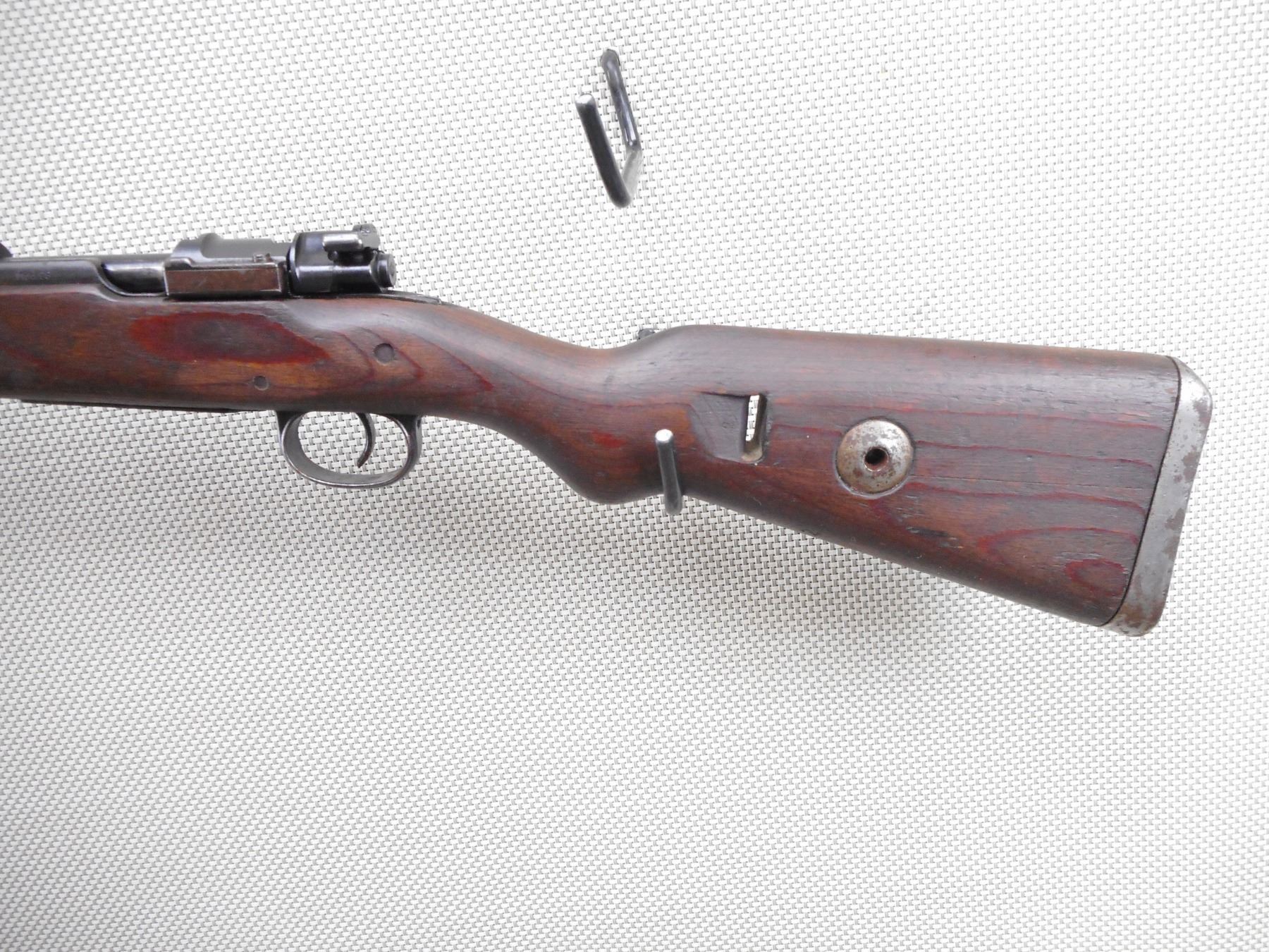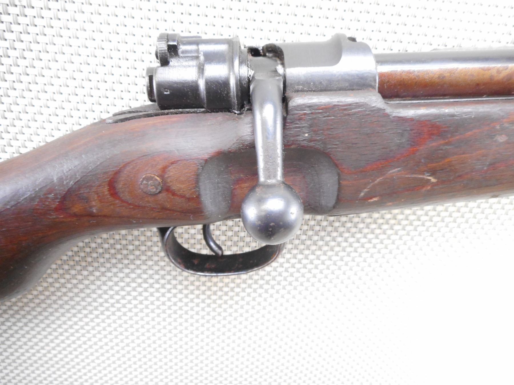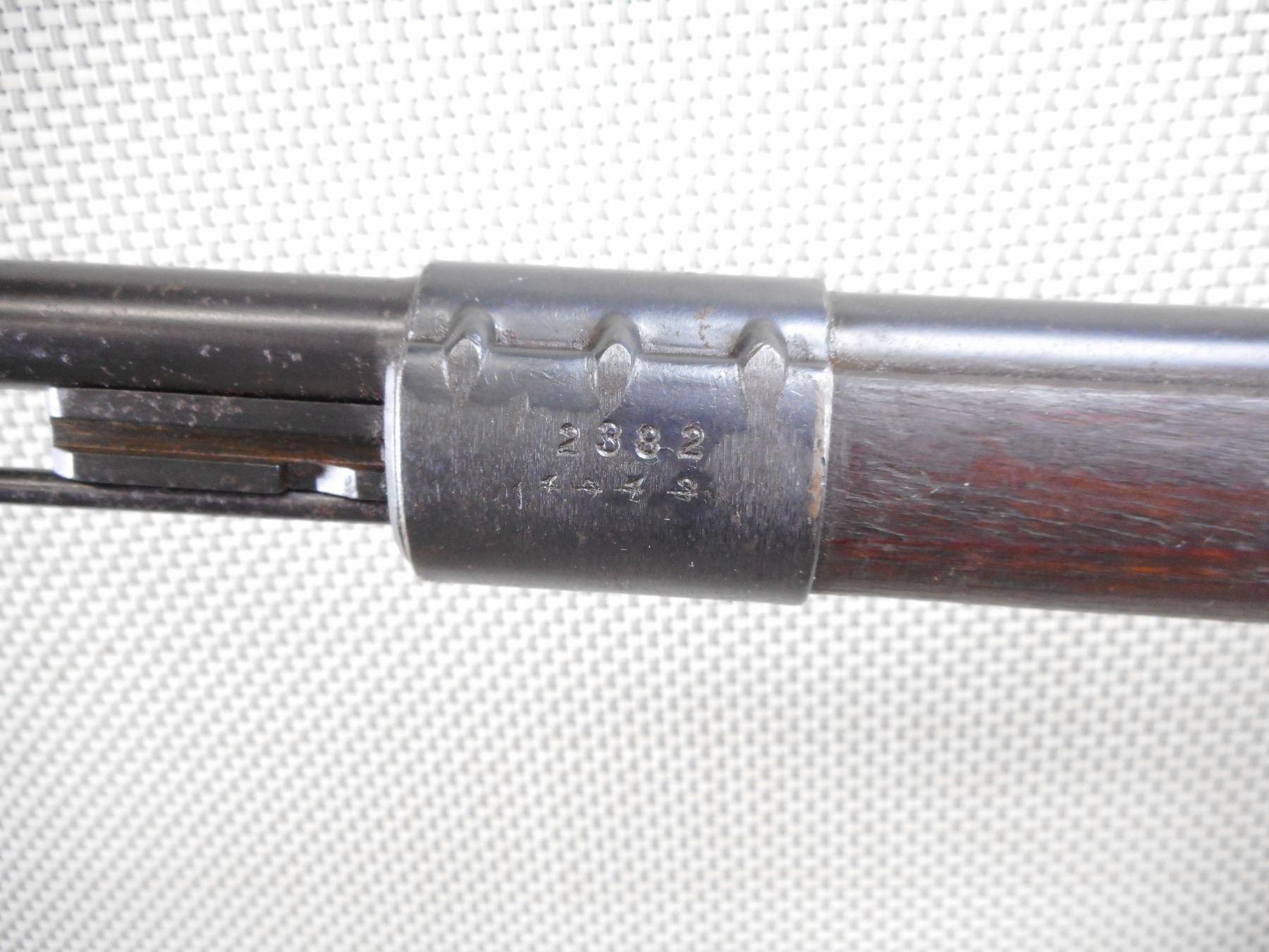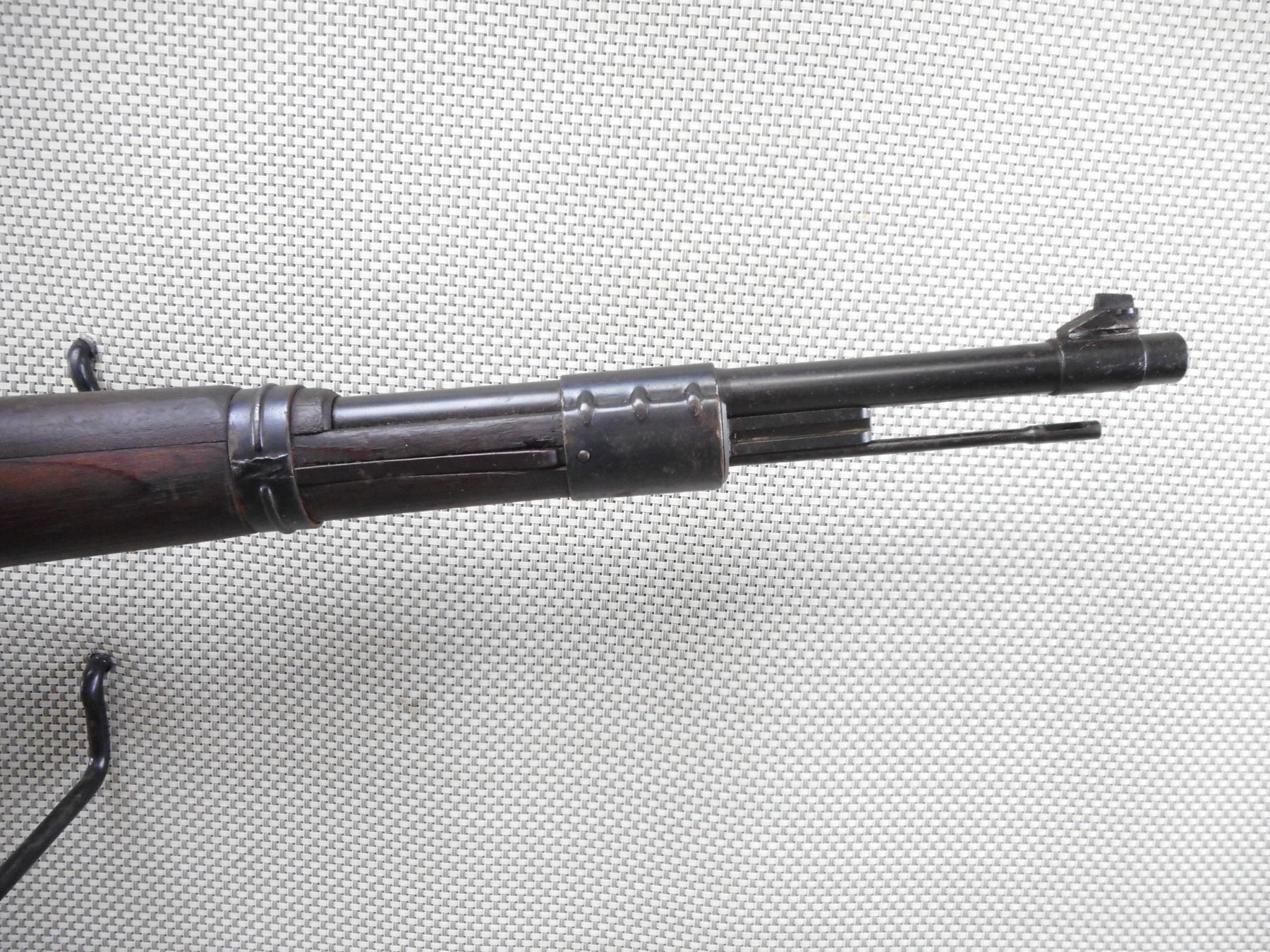 MAUSER , MODEL: K98 , CALIBER: 8 MM MAUSER , BORE IS DARK. BOLT AND RECEIVER MATCH BY SERIAL #. DATED 1944 WITH NUMEROUS GERMAN MILITARY MARKINGS. MADE BY WAFFENWEKE BRUNN. BLADE FRONT AND ADJUSTABLE REAR SIGHT.TWO PIECE HARDWOOD STOCK WITH RUSTY STEEL BUTT PLATE. SOME LIGHT SURFACE RUST ON MOST METAL PARTS AND SOME HANDLING MARKS. ACTION: BOLT ACTION RIFLE , BARREL LENGTH: 23 1/2" , SERIAL # 2382 , CONDITION: 6/10 , CLASS: CANADIAN NON RESTRICTED CLASS
