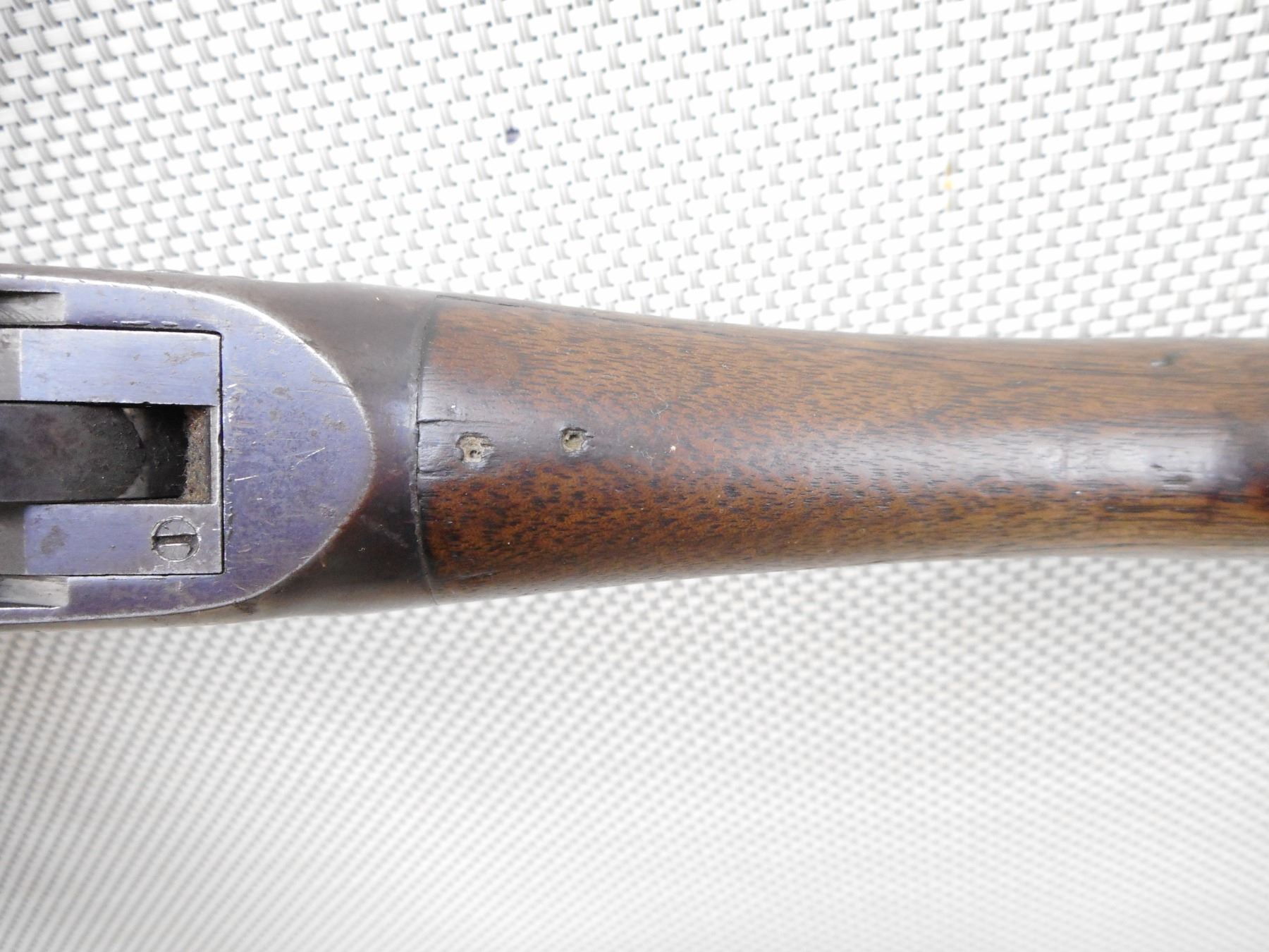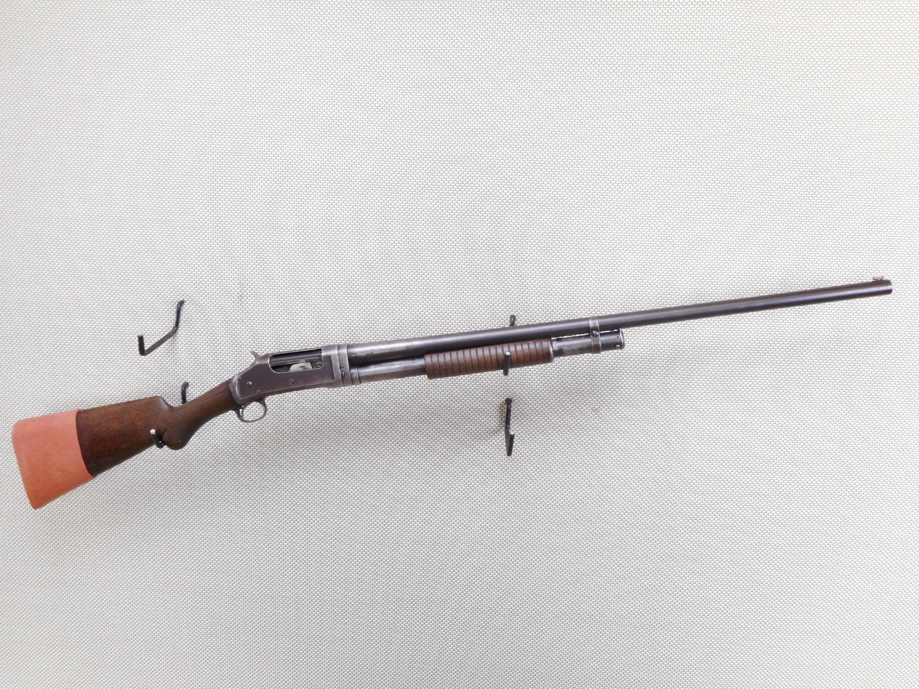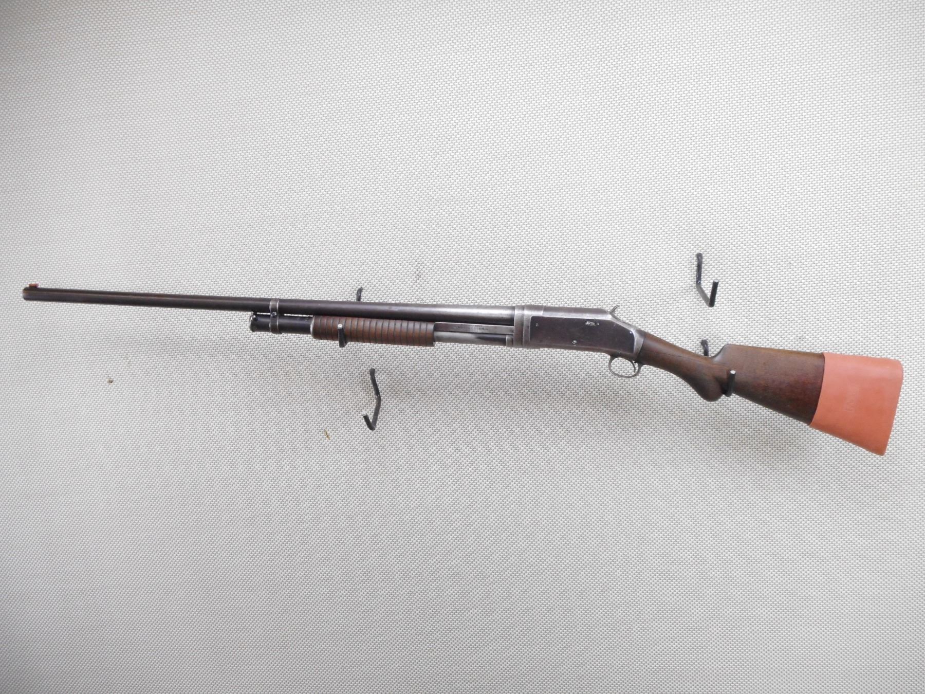 WINCHESTER , MODEL: 1897 , CALIBER: 12GA X 2 3/4" , MADE IN 1905. BORE IS GOOD. FIXED FULL CHOKE. FIBER OPTIC FRONT TWO PIECE HARDWOOD STOCK THAT IS CRACKED AT THE WRIST. RUBBER BUTT SLEAVE. SHOW SOME HANDLING MARKS. ACTION: PUMP ACTION SHOTGUN , BARREL LENGTH: 30" , SERIAL # D257462 , CONDITION: 5/10 , CLASS: CANADIAN NON RESTRICTED CLASS