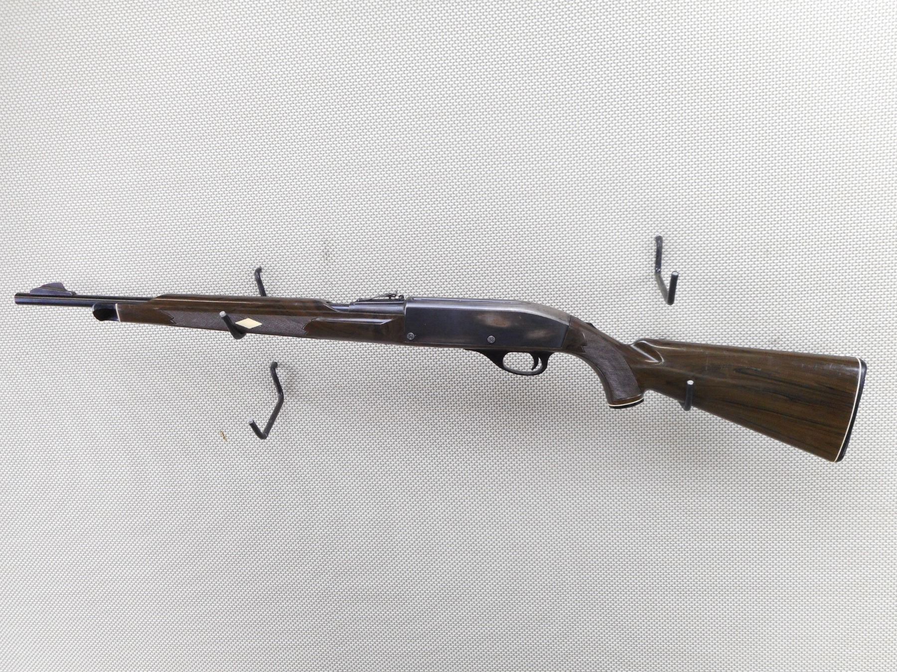 REMINGTON , MODEL: NYLON 66 , CALIBER: 22 LR , BORE IS VERY GOOD. BLADE FRONT AND ADJUSTABLE REAR SIGHTS. TWO PIECE BROWN SYNTHETIC STOCK WITH PLASTIC BUTT PLATE. RECEIVER HAS SOME LIGHT SURFACE PITTING. SHOWS SOME HANDLING MARKS. ACTION: SEMI-AUTOMATIC RIFLE , BARREL LENGTH: 19 1/2" , SERIAL # N/A , CONDITION: 6/10 , CLASS: CANADIAN NON RESTRICTED CLASS