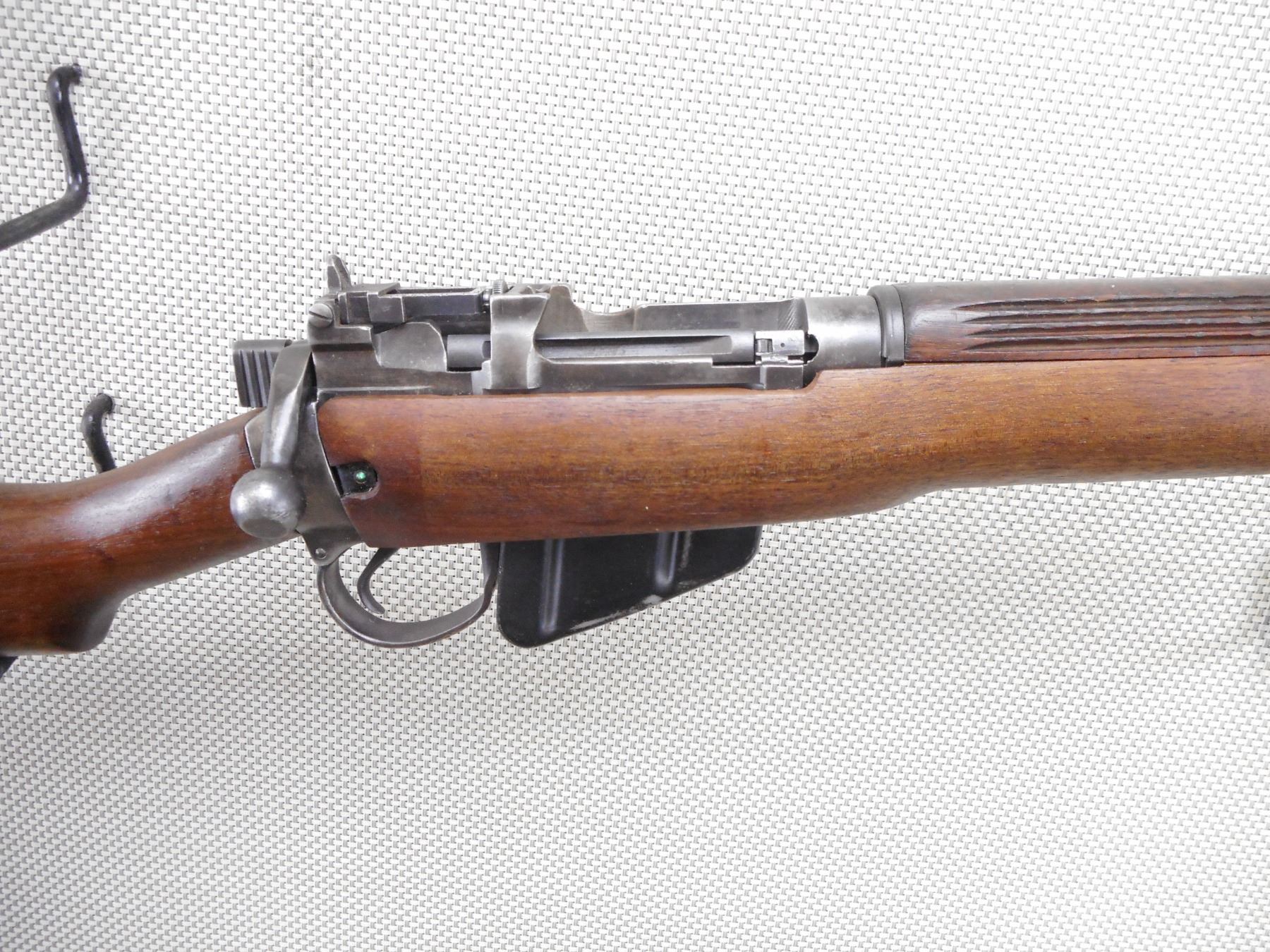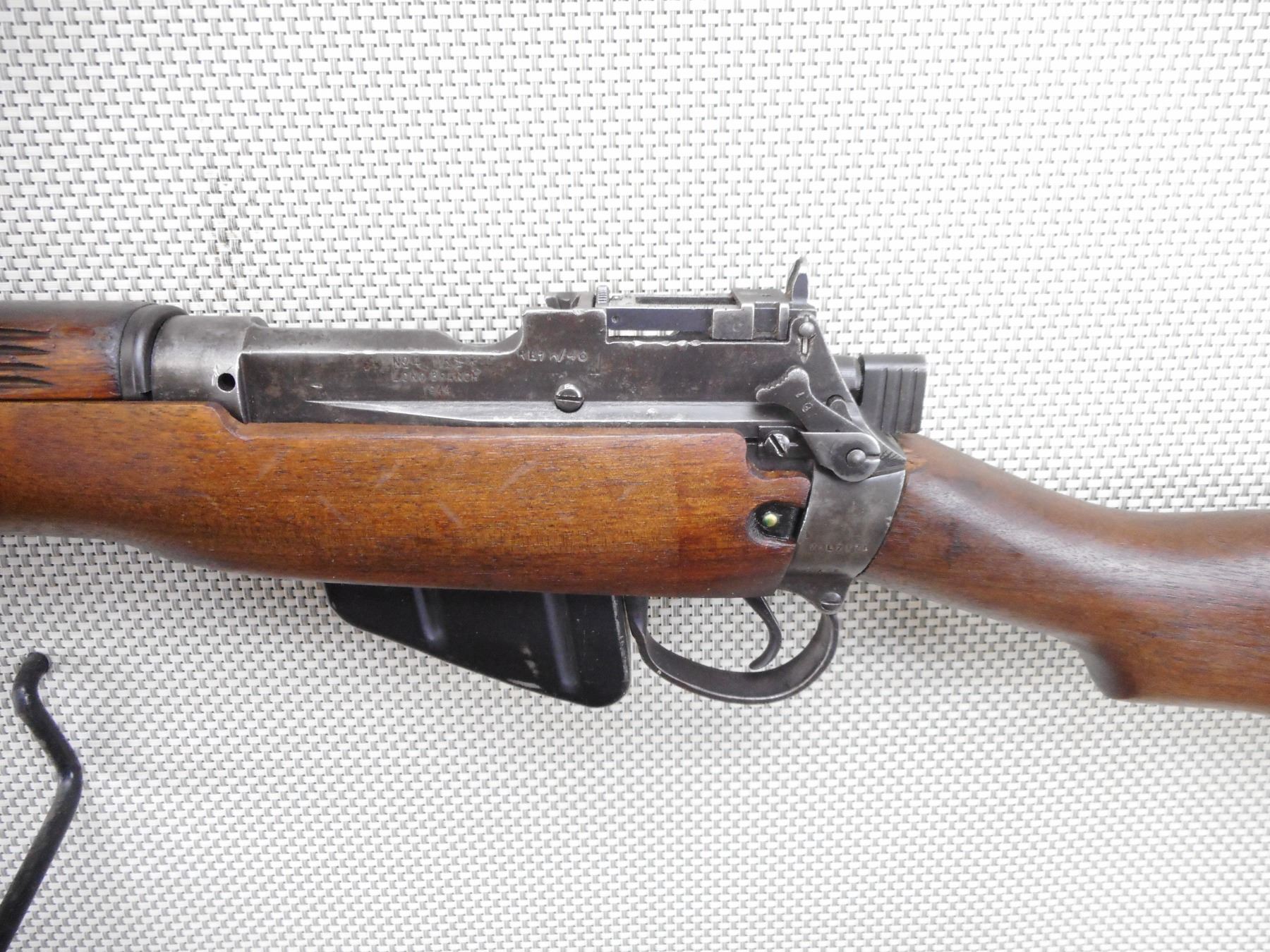 LEE ENFIELD , MODEL: NO 4 MK I* LONG BRANCH 1944 , CALIBER: 303 BR , COMES WITH MAGAZINE. BOLT AND RECEIVER ARE MATCHING BY SERIAL #. BORE IS FAIR. BARLEY CORN FRONT AND PEEP REAR SIGHT. 4 PIECE HARDWOOD STOCK WITH STEEL BUTT PLATE. SLING SWIVEL LOOPS. RETAINS FULL MILITARY CONFIGURATION. SHOWS SOME HANDLING MARKS. ACTION: BOLT ACTION RIFLE , BARREL LENGTH: 25" , SERIAL # 77L7175 , CONDITION: 6/10 , CLASS: CANADIAN NON RESTRICTED CLASS