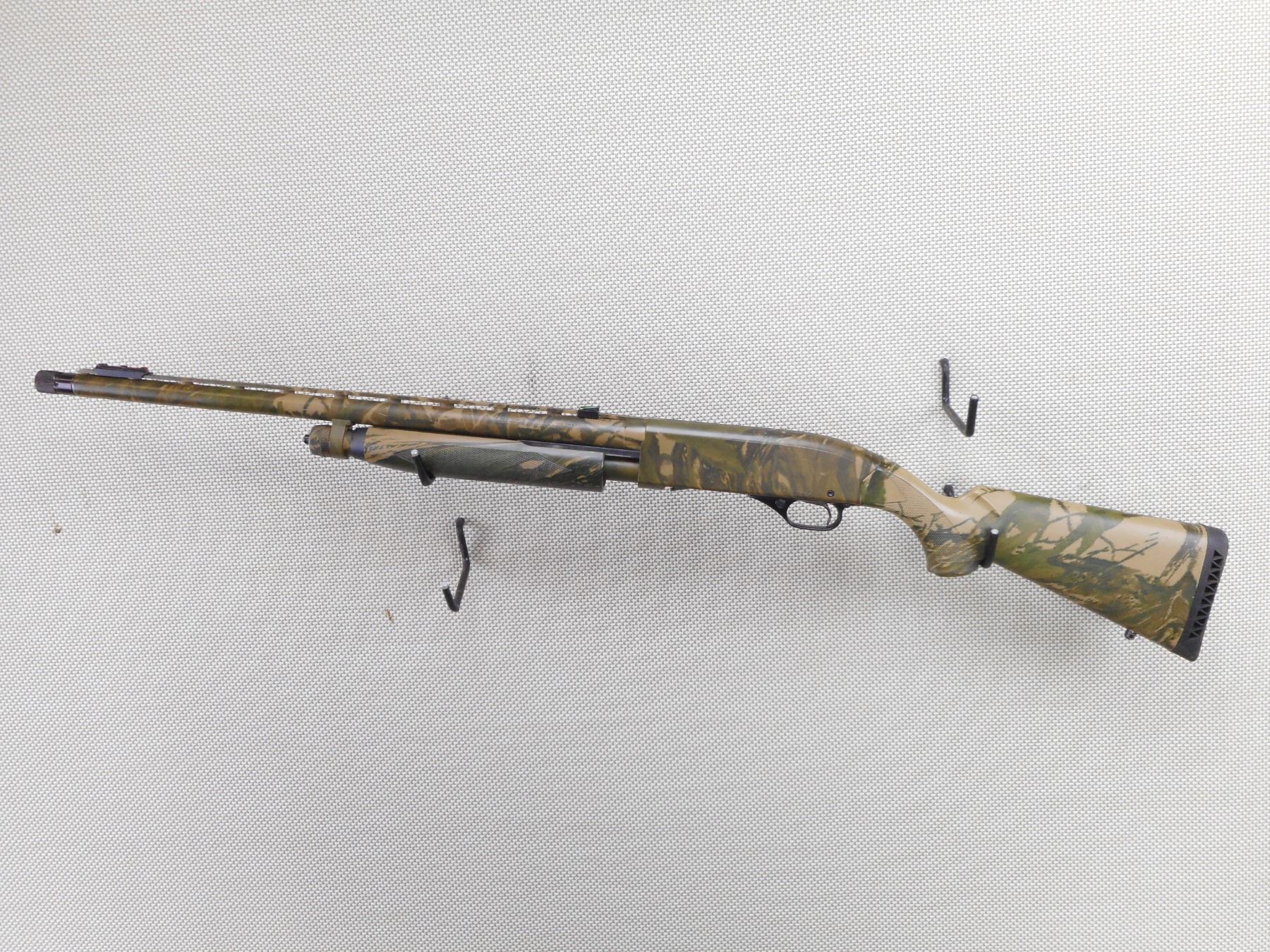 WINCHESTER , MODEL: 1300 , CALIBER: 12 GA X 3" , BORE IS GOOD. CYLINDER BORE. FIBER OPTIC FRONT AND REAR SIGHTS ON A VENTED RIB BARREL WHICH IS GREEN CAMO FINISH. TWO PIECE SYNTHETIC STOCKS WITH GREEN CAMO FINISH. SLING SWIVEL STUDS. PORTED MUZZLE. SHOWS SOME HANDLING MARKS. ACTION: PUMP ACTION SHOTGUN , BARREL LENGTH: 23" , SERIAL # L2874510 , CONDITION: 7/10 , CLASS: CANADIAN NON RESTRICTED CLASS