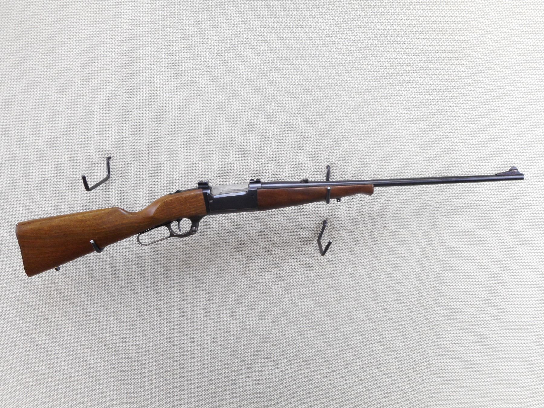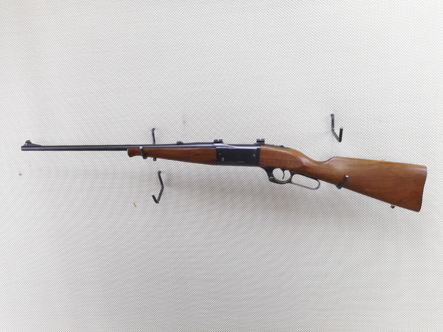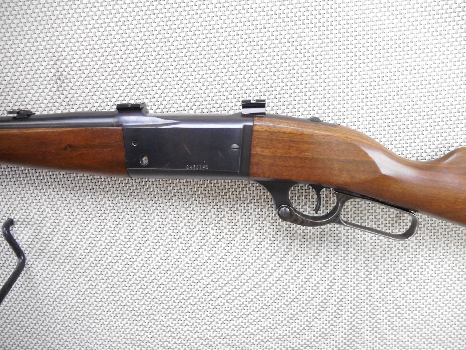 SAVAGE , MODEL: 99A SERIES A , CALIBER: 243 WIN , MANUFACTURED WESTFIELD MASS FACTORY. BORE IS VERY GOOD. RAMP FRONT AND ADJUSTABLE REAR SIGHTS. DRILLED AND TAPPED WITH WEAVER SCOPE MOUNTS. HAS A CARTRIDGE COUNTER. TWO PIECE HARDWOOD STOCK WITH STEEL BUTT PLATE. SLING SWIVEL STUDS. SHOWS VERY LITTLE HANDLING MARKS. CASE HARDENED LEVER.ACTION: LEVER ACTION RIFLE , BARREL LENGTH: 22" , SERIAL # C433141 , CONDITION: 8/10 , CLASS: CANADIAN NON RESTRICTED CLASS
