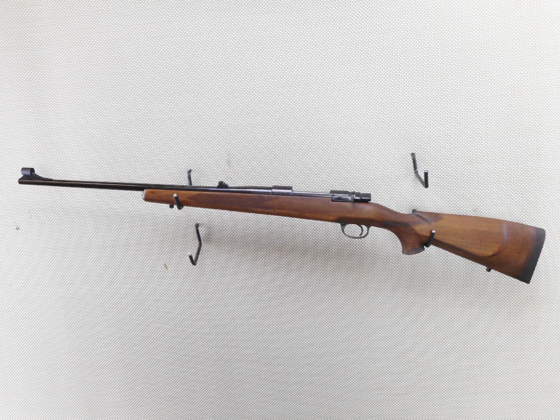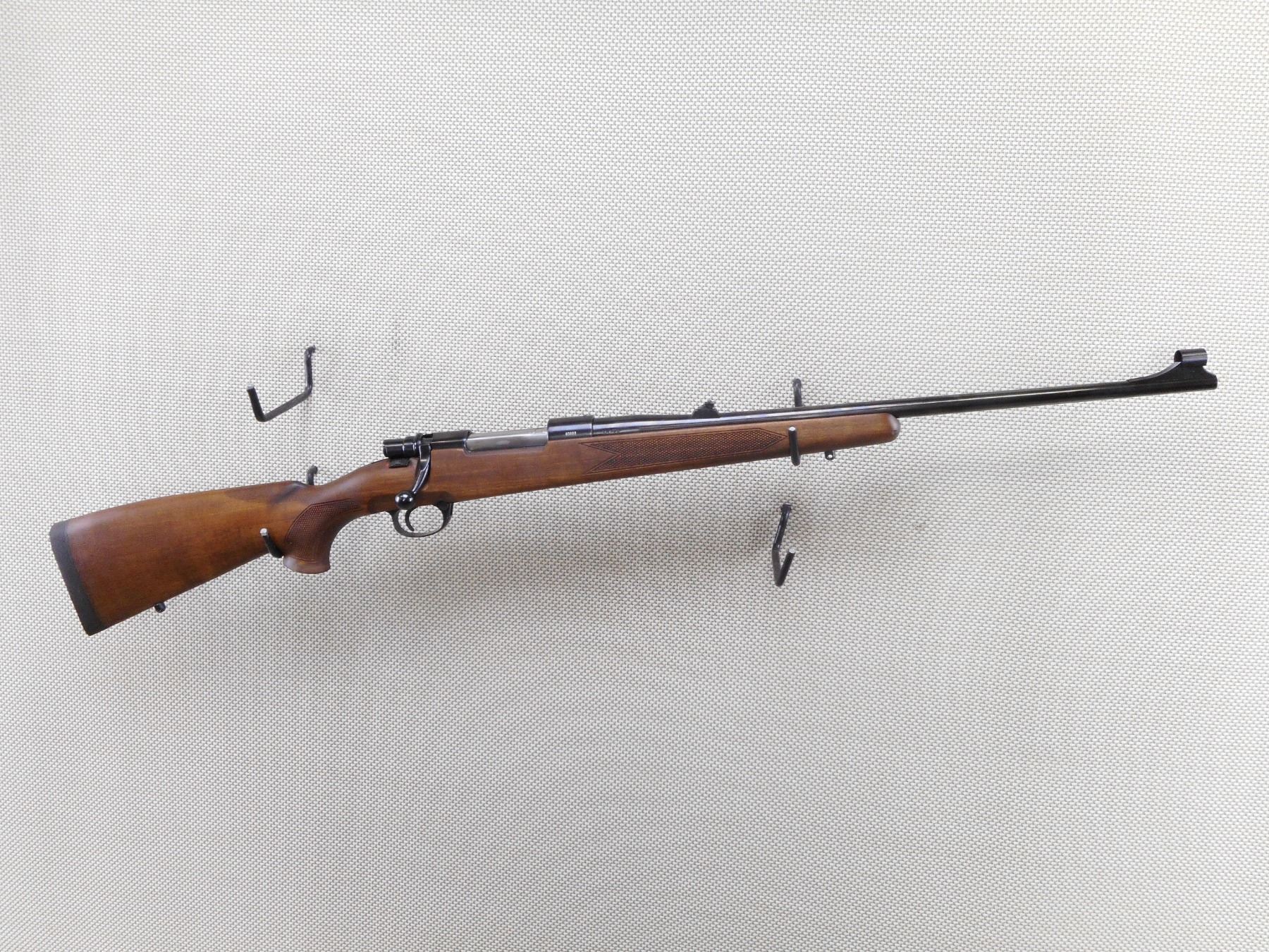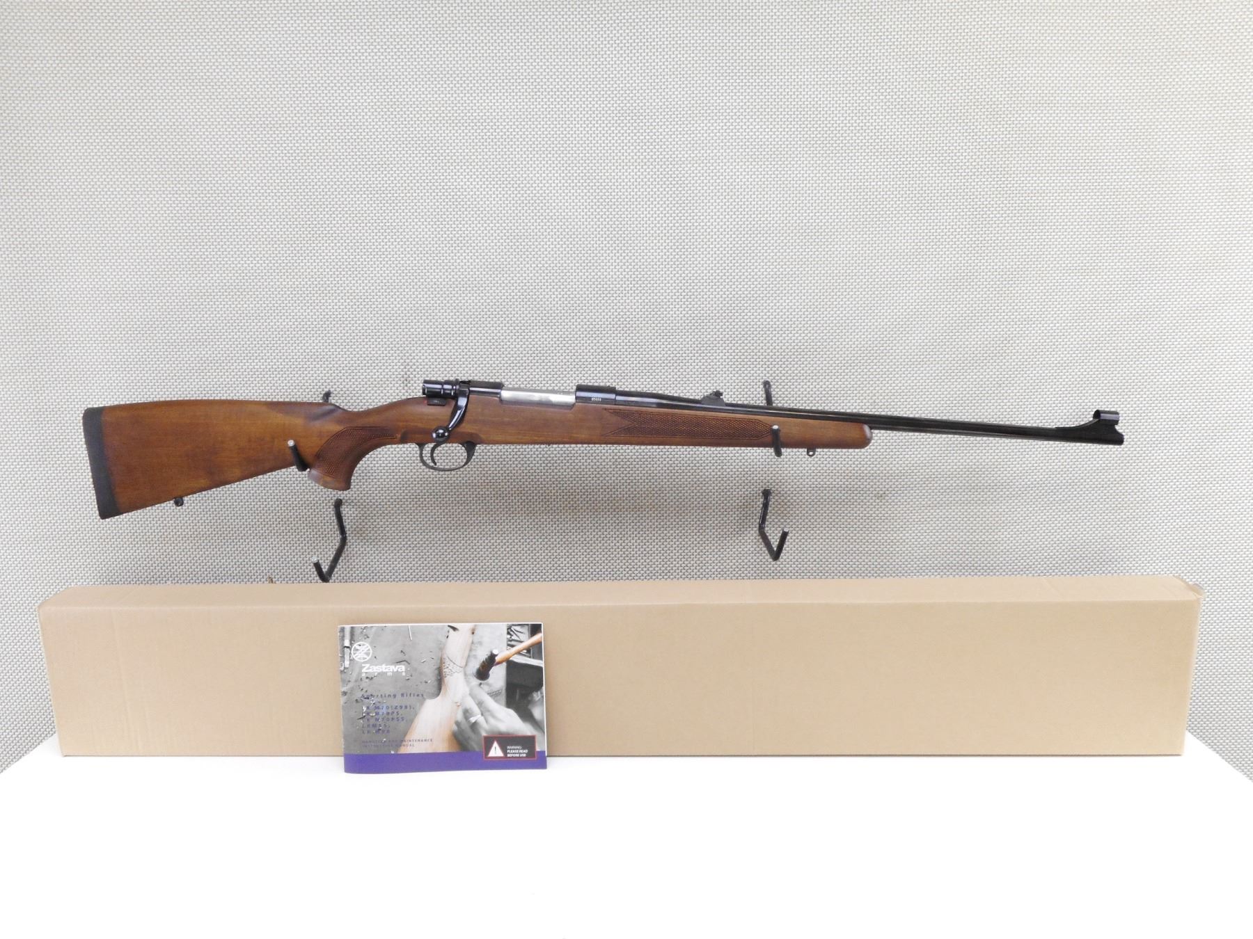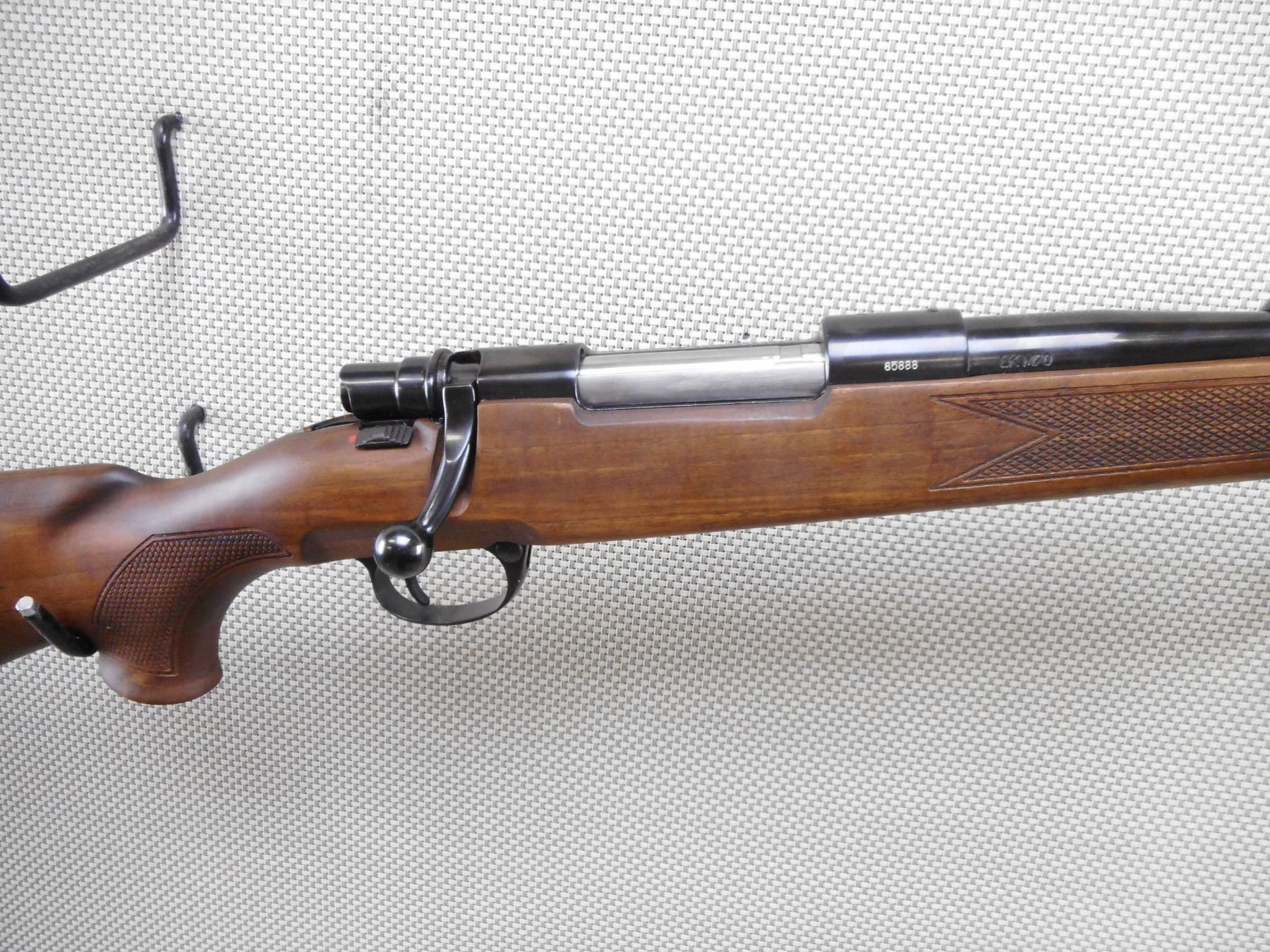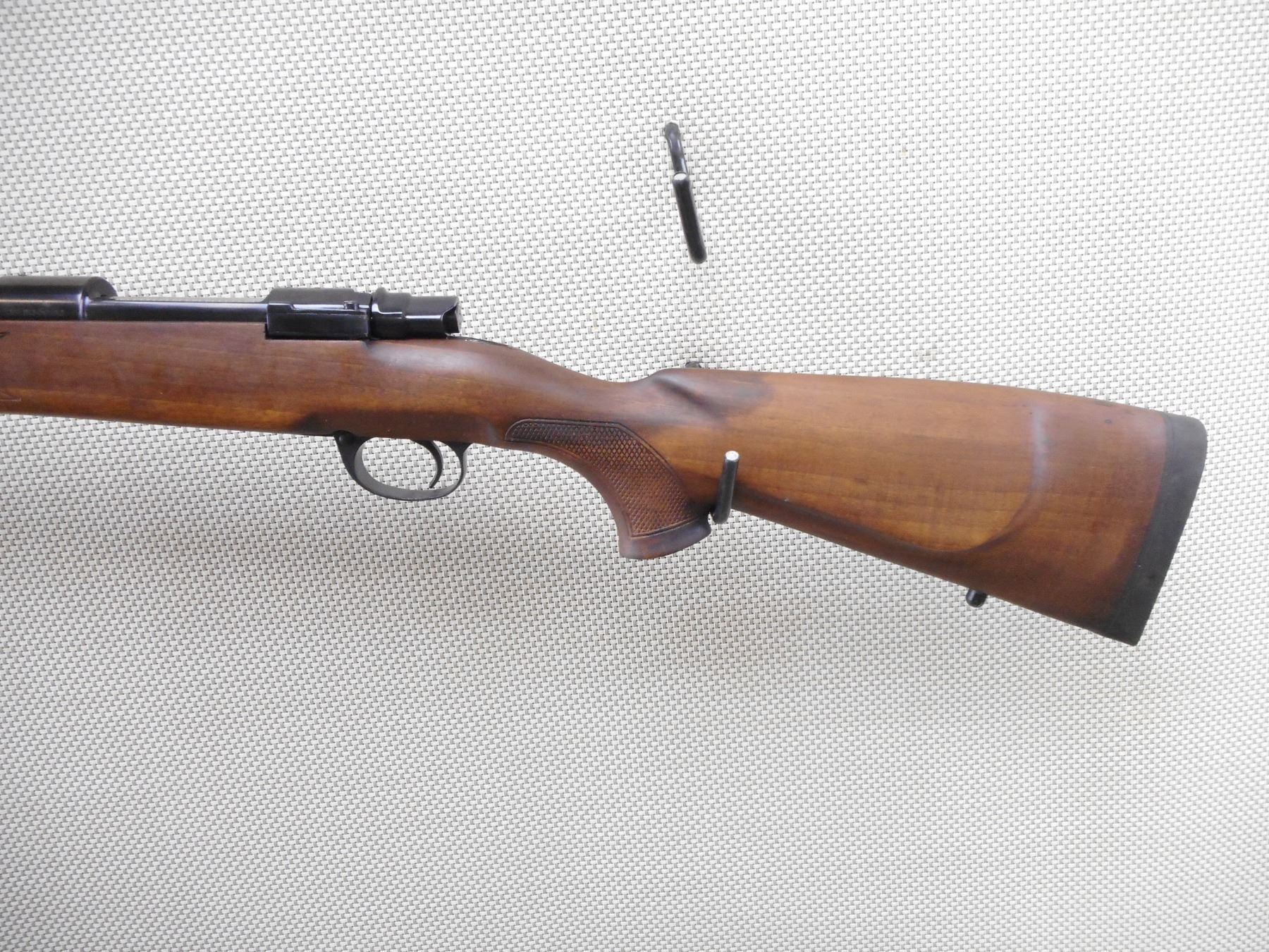 ZASTAVA , MODEL: LK M70 , CALIBER: 30-06 SPRG , COMES WITH BOX, EXCELLENT BORE, APPEARS AS NEW MAY HAVE BEEN TEST FIRED. HOODED FRONT AND ADJUSTABLE REAR SIGHT. ONE PIECE HARDWOOD STOCK WITH RUBBER RECOIL PAD. THERE IS A COUPLE MINOR MARKS IN THE BLUEING. DENT IN THE FOREND ON THE RIGHT SIDE. SLING SWIVEL STUDS. SHOWS SOME HANDLING MARKS AND WEARACTION: BOLT ACTION RIFLE , BARREL LENGTH: 23" , SERIAL # 85888 , CONDITION: 9/10 , CLASS: CANADIAN NON RESTRICTED CLASS