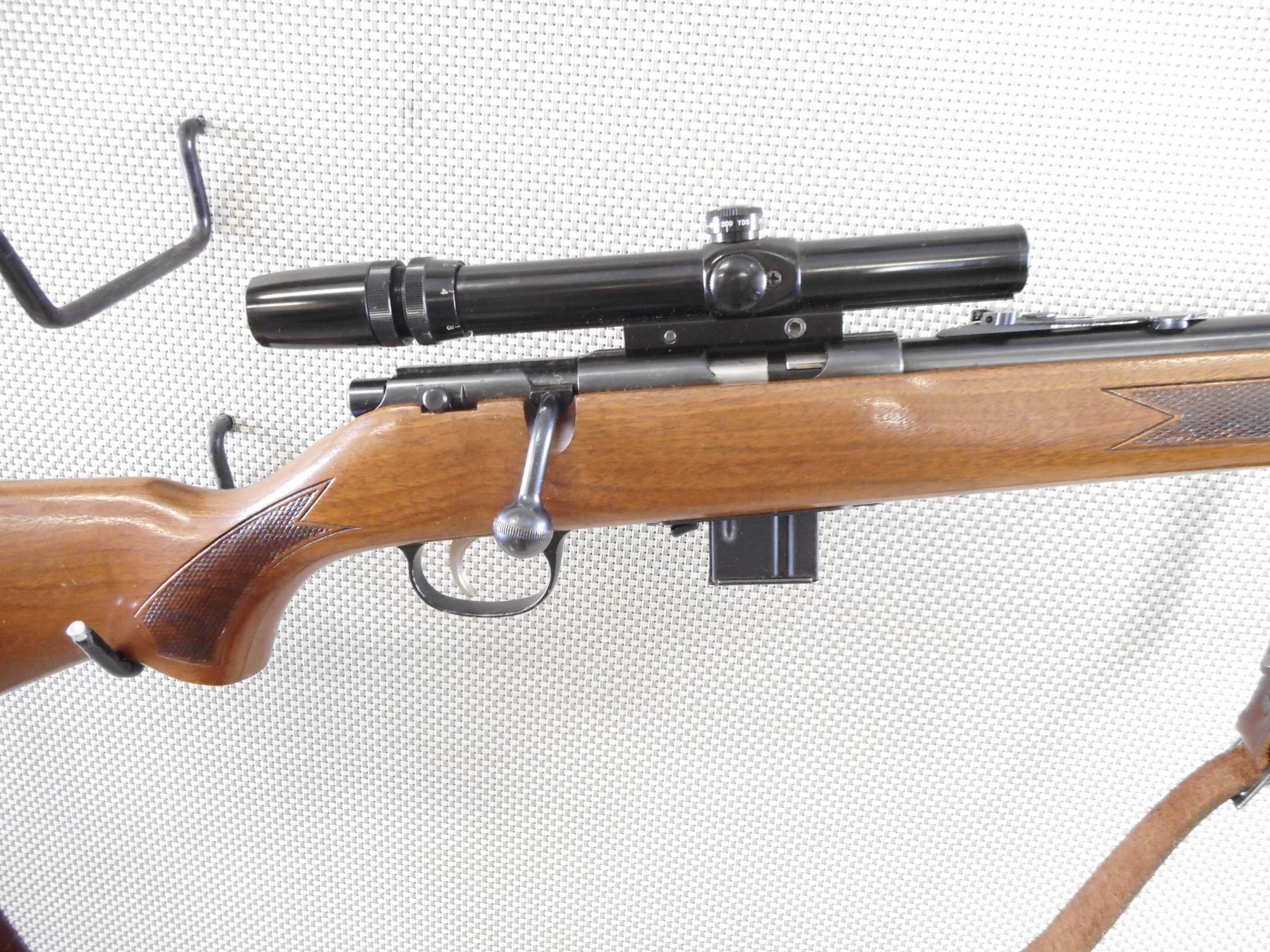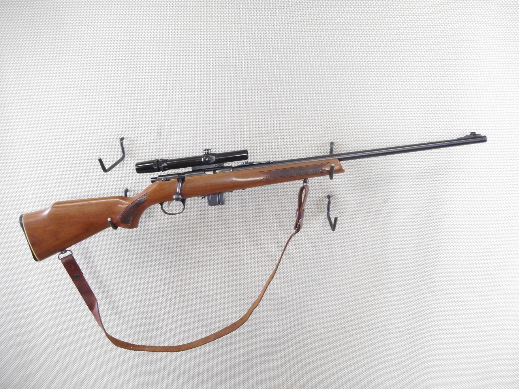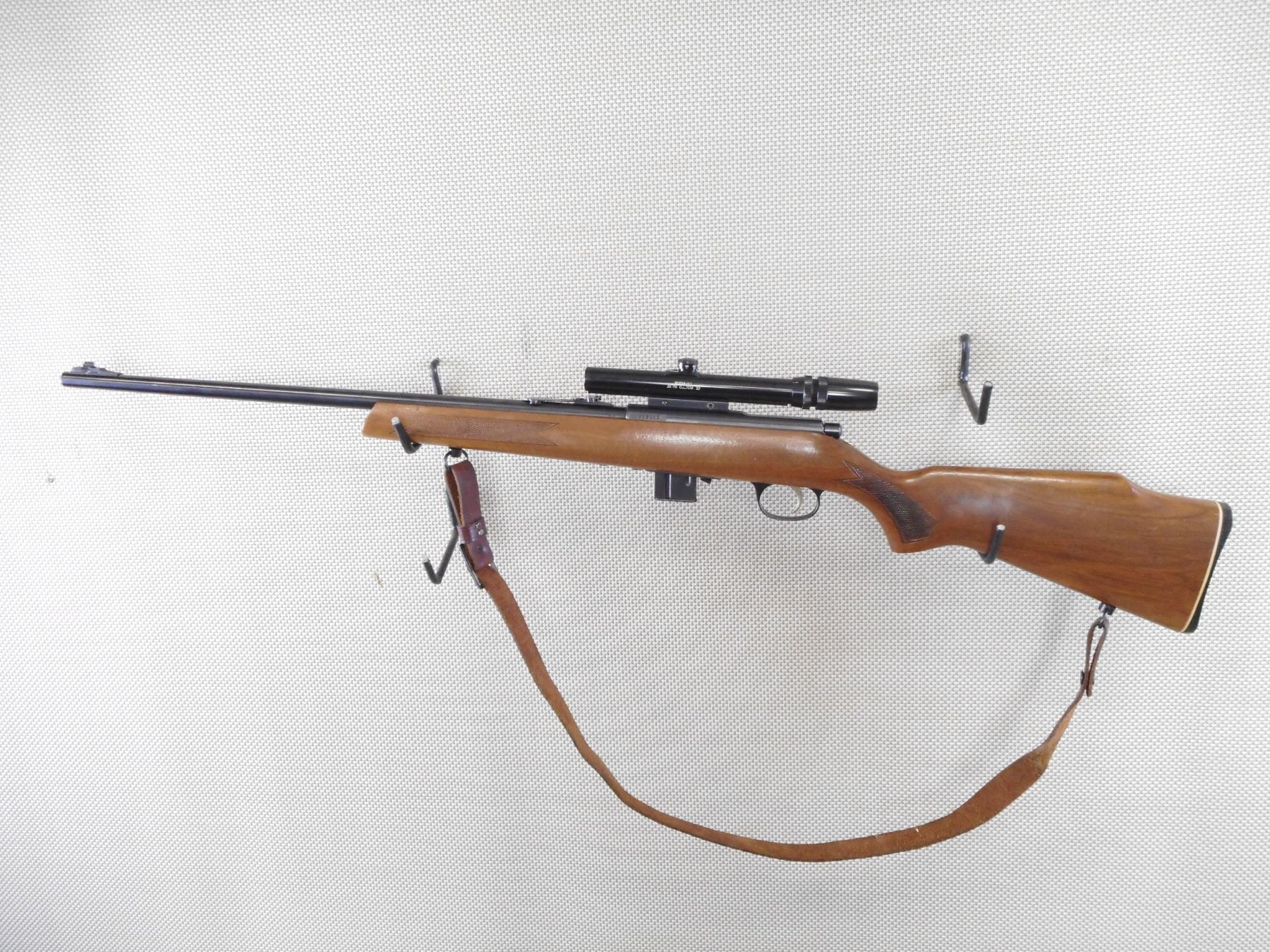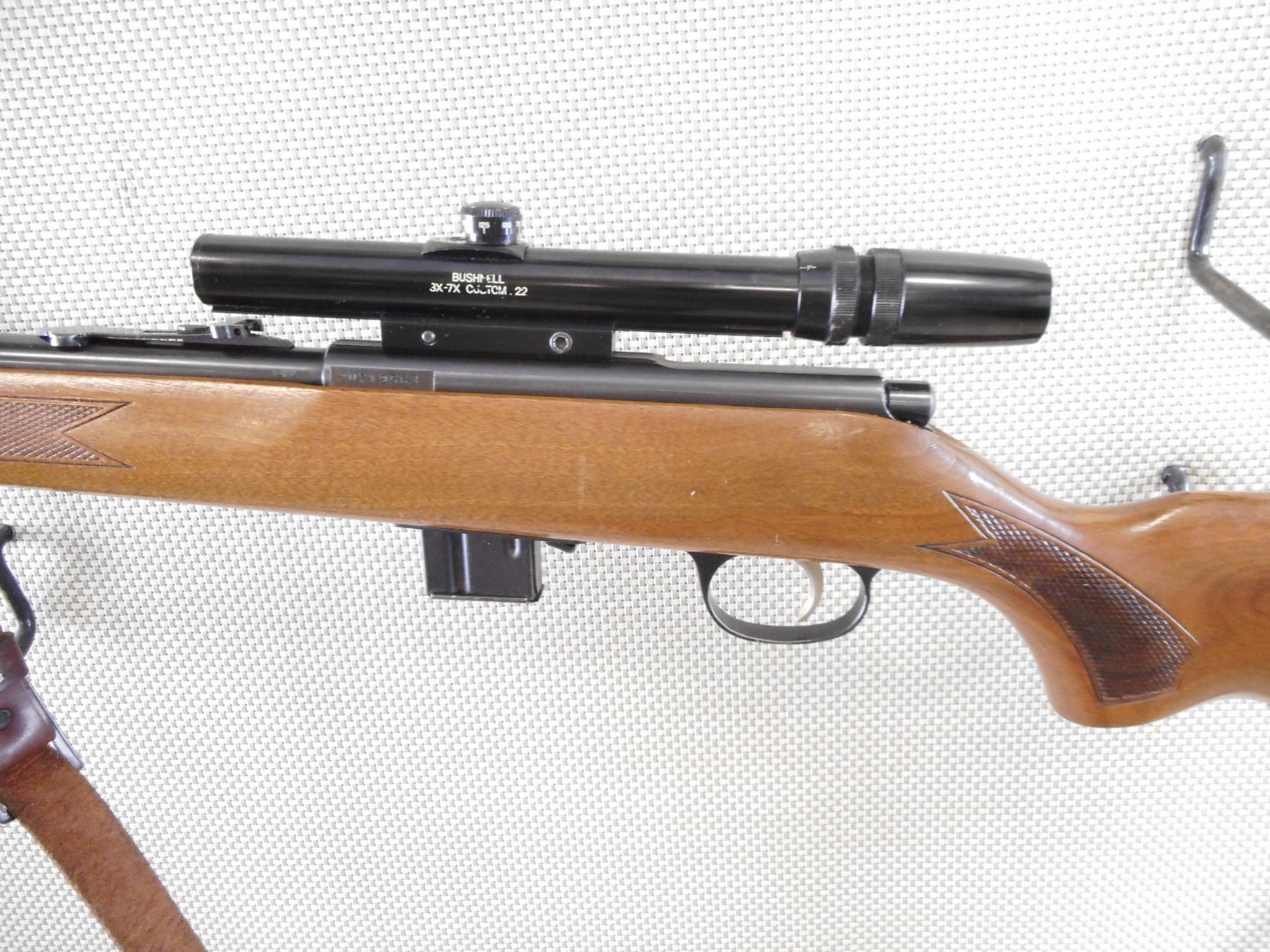 MARLIN , MODEL: 782 , CALIBER: 22 WMR , COMES WITH MAGAZINE. BORE IS VERY GOOD. RAMP FRONT AND ADJUSTABLE REAR SIGHT. FEATURES A BUSHNELL 3-7 SCOPE. CHECKERED ONE PIECE WOOD STOCK WITH PLASTIC BUTT PLATE. LEATHER SLING. SHOWS SOME HANDLING MARKS. ACTION: BOLT ACTION RIFLE , BARREL LENGTH: 22" , SERIAL # 20719563 , CONDITION: 8/10 , CLASS: CANADIAN NON RESTRICTED CLASS