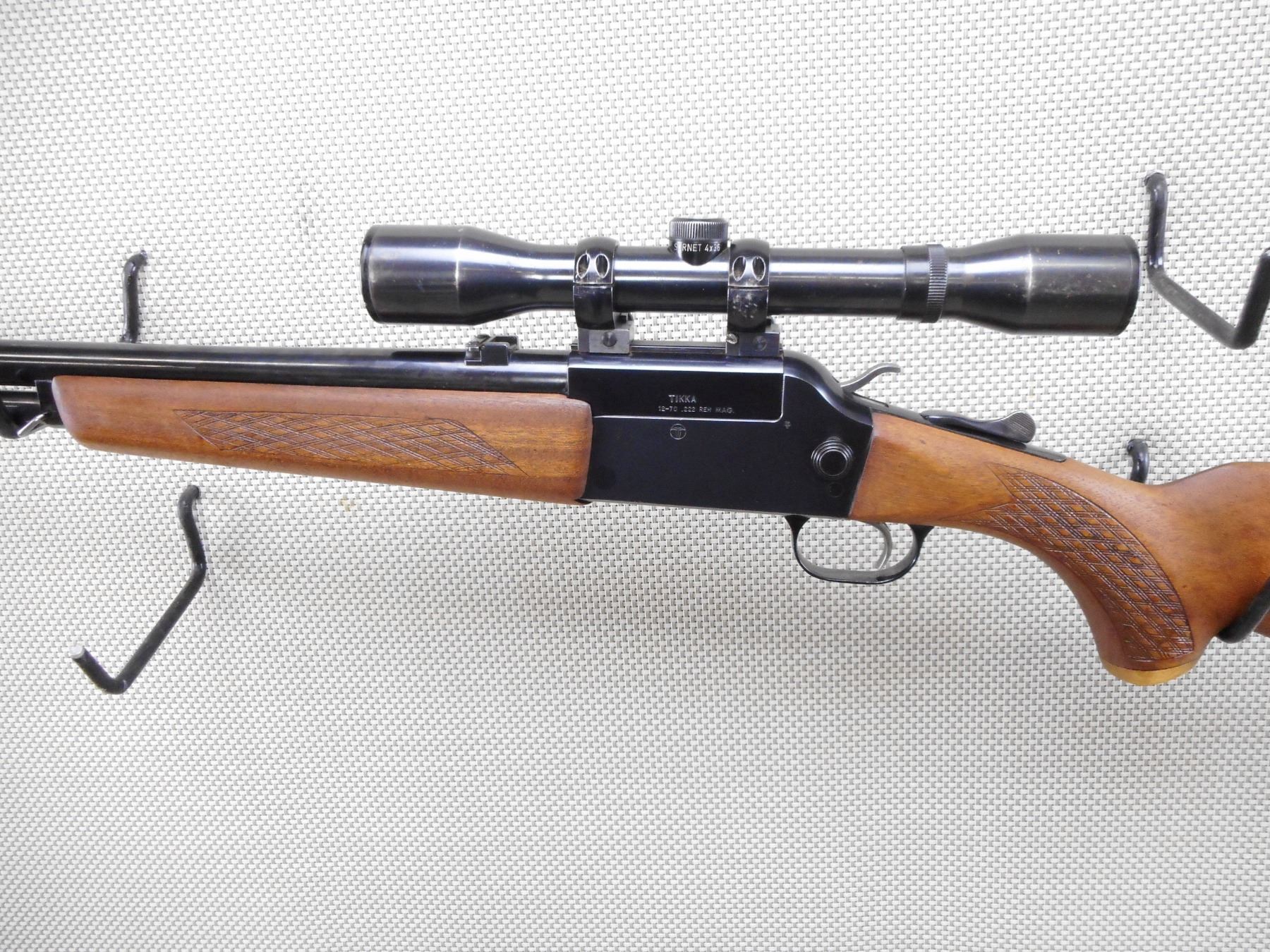 TIKKA , MODEL: COMBINATION GUN , CALIBER: 12GA X 2 3/4" / 222 REM MAG , FIXED FULL CHOKE. BORES ARE VERY GOOD. BLADE FRONT AND ADJUSTABLE REAR SIGHT. FEATURES A SORNET 4 X 36 GERMAN SCOPE. CHECKERED TWO PIECE HARDWOOD STOCK WITH REPLACED PISTOL GRIP CAP. PLASTIC BUTT PLATE. SLING SWIVEL LOOPS. SHOWS SOME HANDLING MARKS WITH SOME SCRATCHES ON THE BARREL. ACTION: COMBINATION GUN OVER UNDER , BARREL LENGTH: 26" , SERIAL # 17574 , CONDITION: 6/10 , CLASS: CANADIAN NON RESTRICTED CLASS