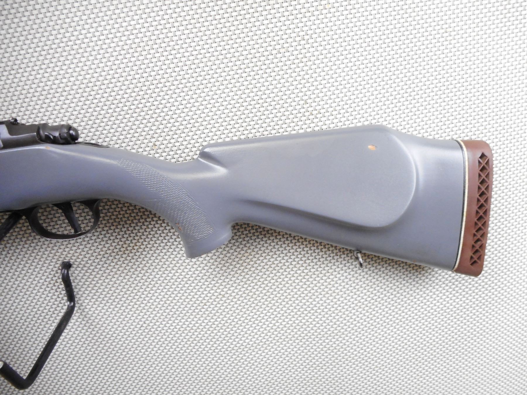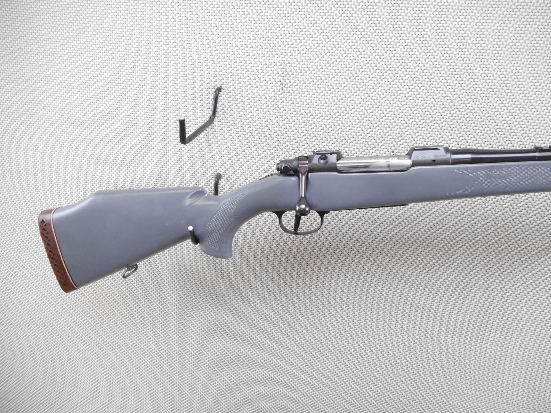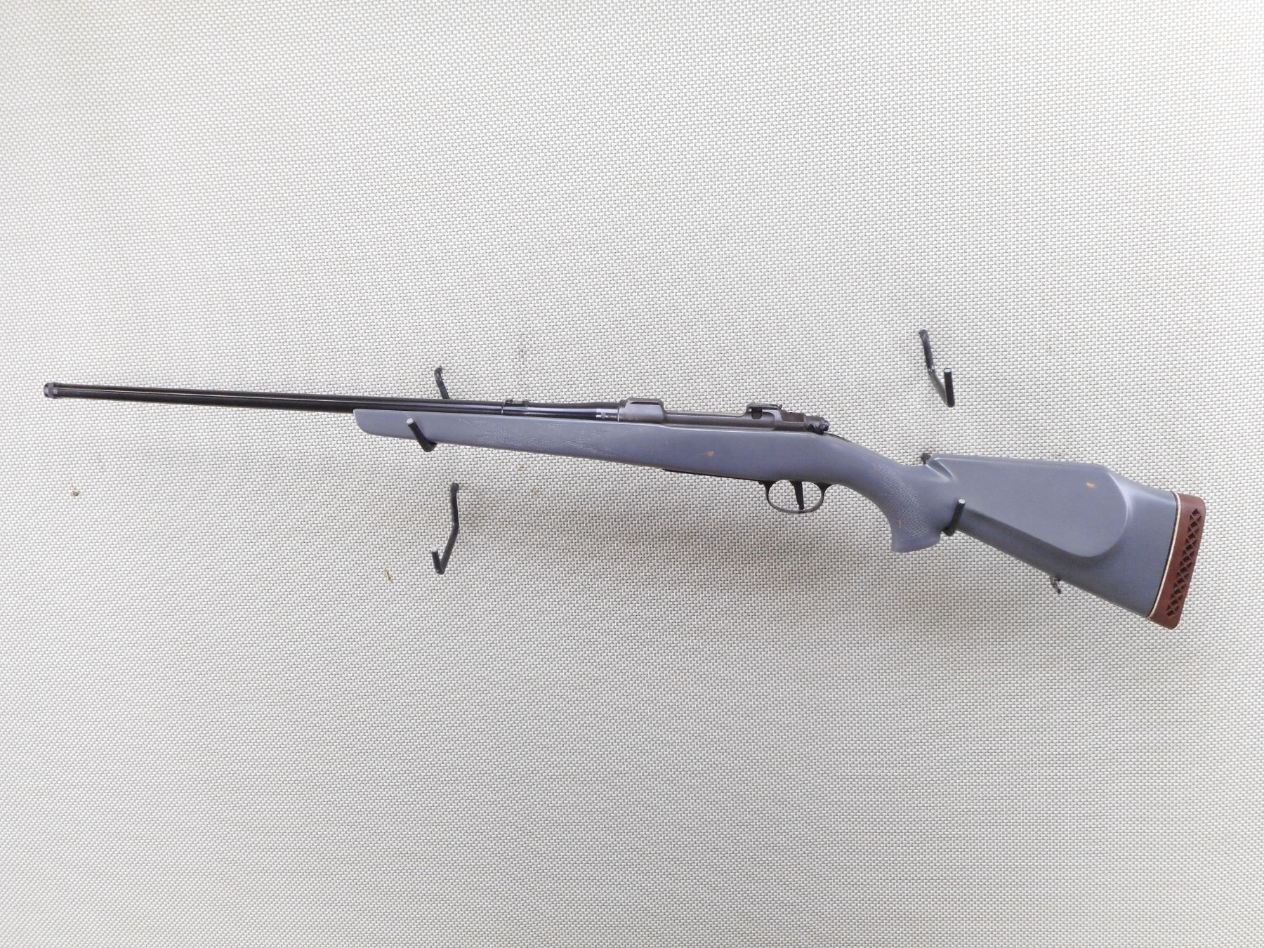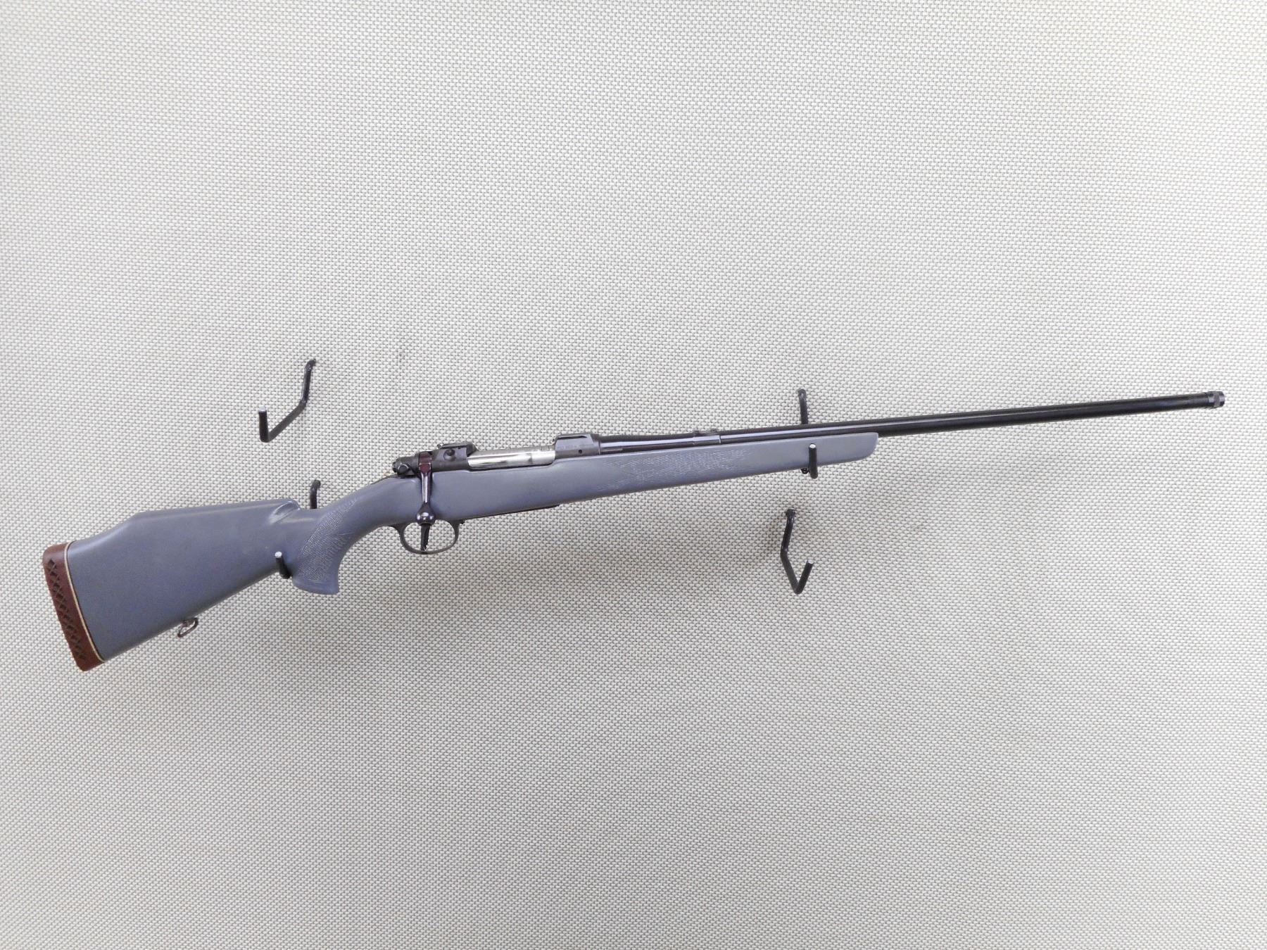 BRNO , MODEL: ZKK-600 , CALIBER: 30-06 SPRG , BORE IS EXCELLENT. MISSING THE SIGHTS. HAS A REAR SCOPE MOUNT. PAINTED GREY CHECKERED HARDWOOD STOCK WITH RAISED CHEEK PIECE. VENTED RUBBER RECOIL PAD. MISSING THE FRONT SLING SWIVEL LOOP. CAPPED AND THREADED MUZZLE. SHOWS SOME HANDLING MARKS. ACTION: BOLT ACTION RIFLE , BARREL LENGTH: 24" , SERIAL # 7052418162 , CONDITION: 6/10 , CLASS: CANADIAN NON RESTRICTED CLASS