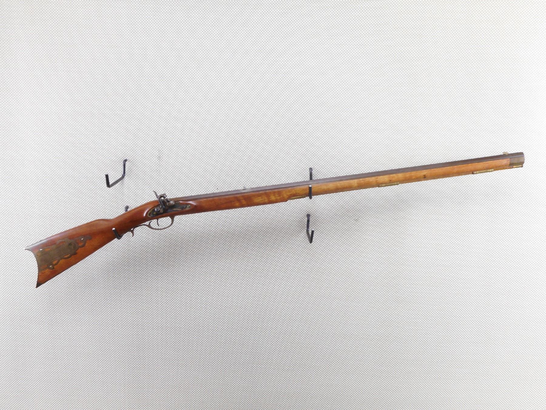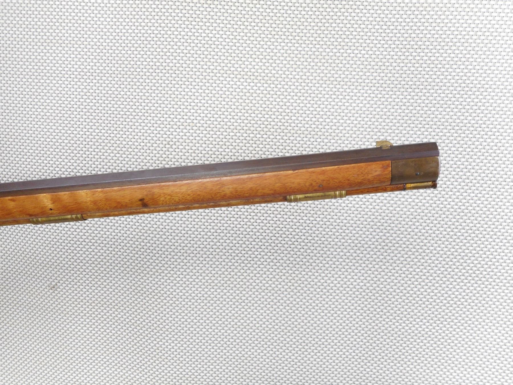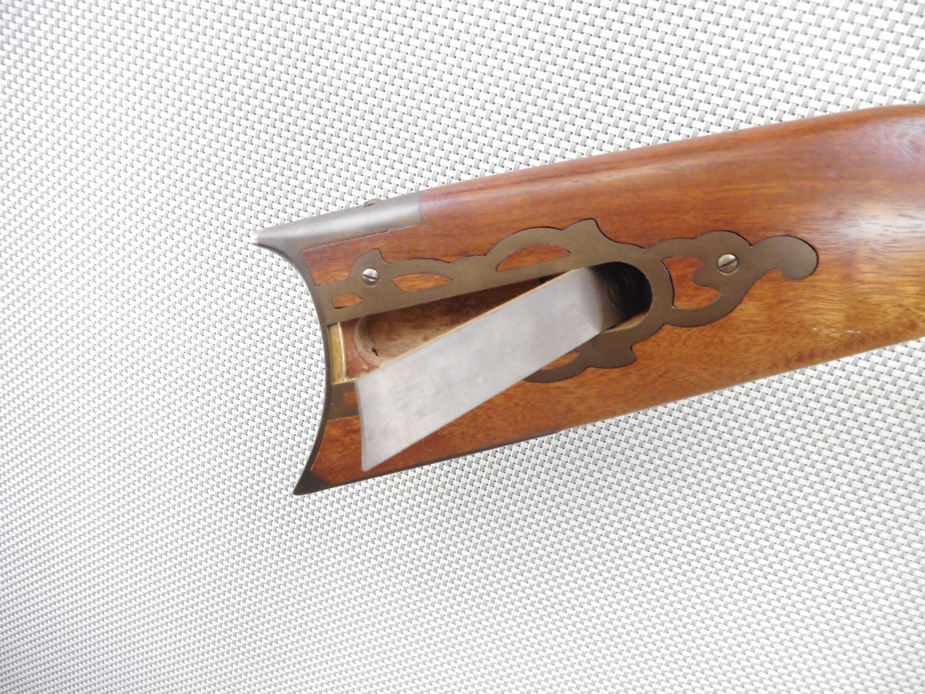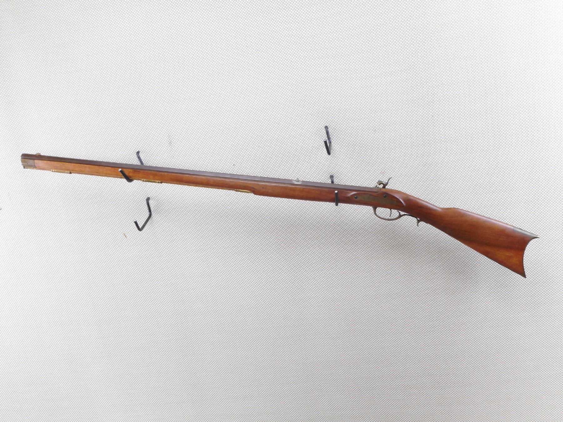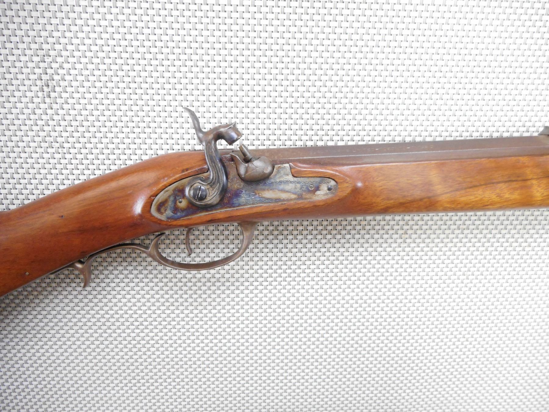 SAFARI ARMS , MODEL: KENTUCKIAN , CALIBER: 50 CAL PERC , BORE IS GOOD. MADE BY INVESTARM. HAS A WOOD RAM ROD WITH BRASS TIP. FULL LENGTH HARDWOOD STOCK WITH OCTAGONAL BARREL. BRASS PATCH BOX AND CRESCENT BUTT PLATE. SHOWS SOME HANDLING MARKS. BLADE FRONT AND FIXED REAR SIGHTS. ACTION: MUZZLE LOADER , BARREL LENGTH: 35" , SERIAL # 97864 , CONDITION: 7/10 , CLASS: CANADIAN NON RESTRICTED CLASS