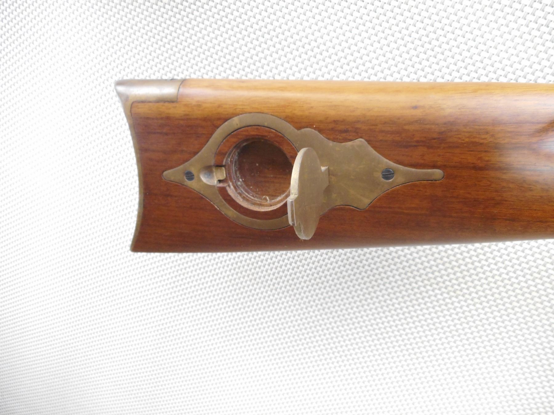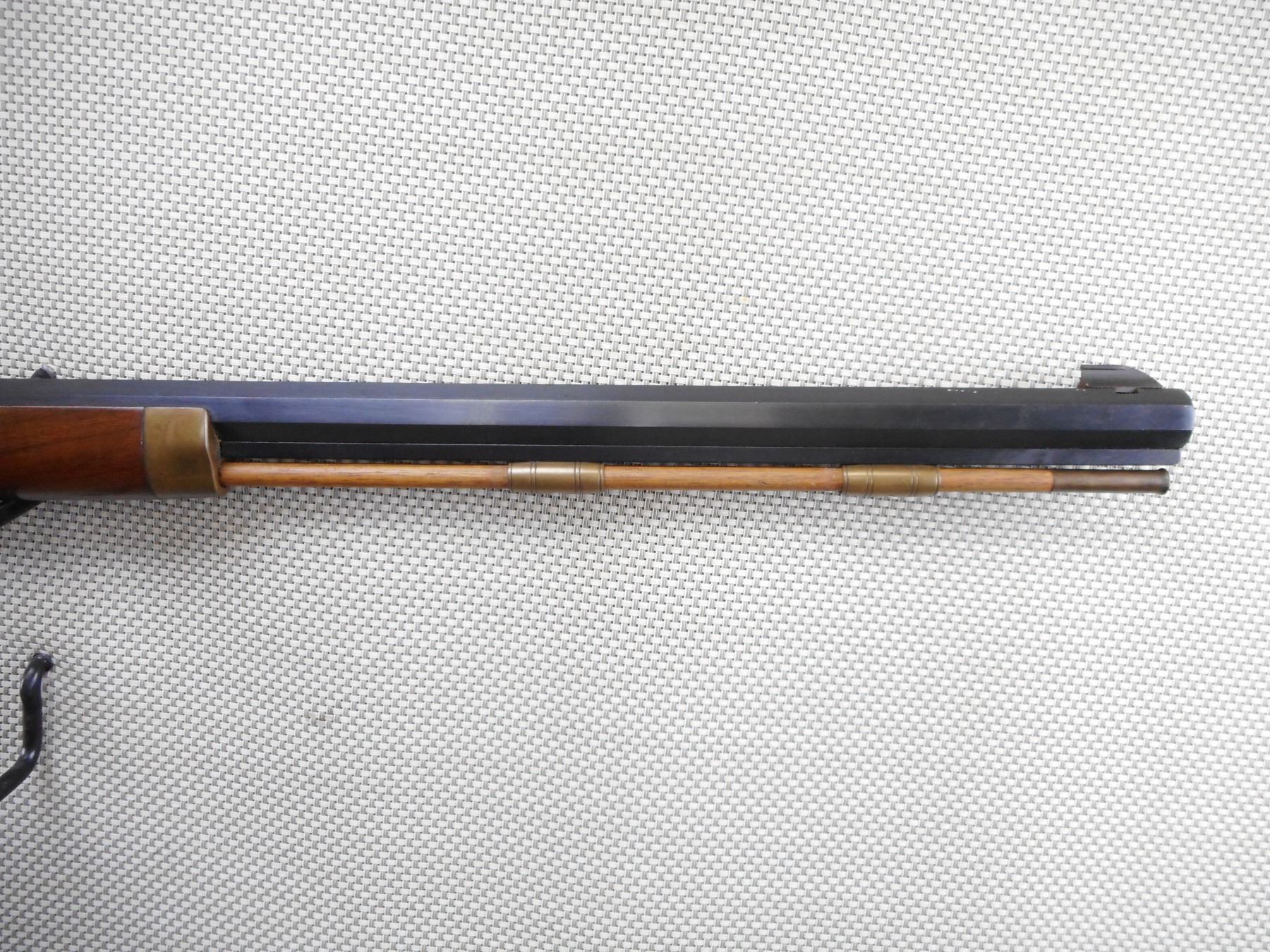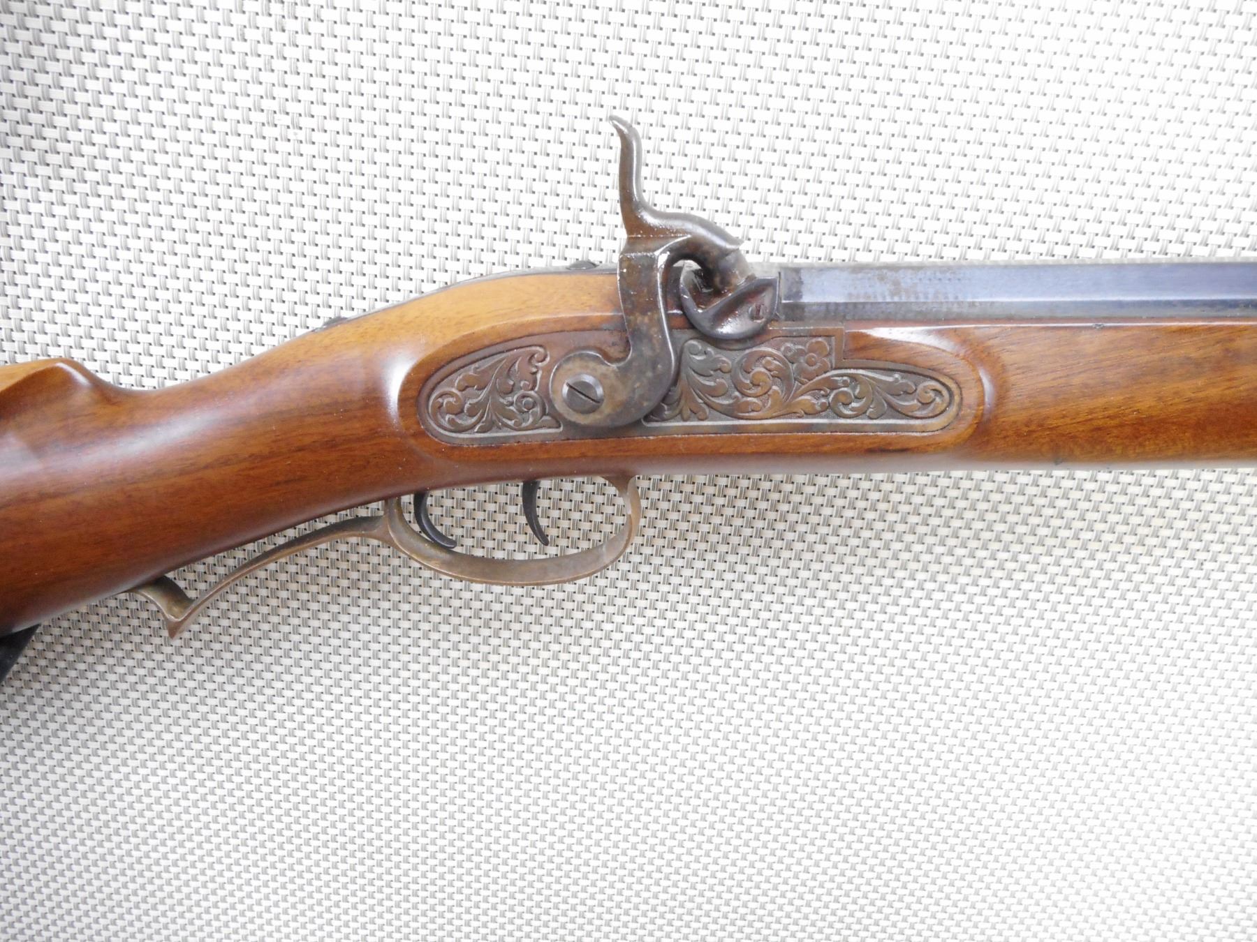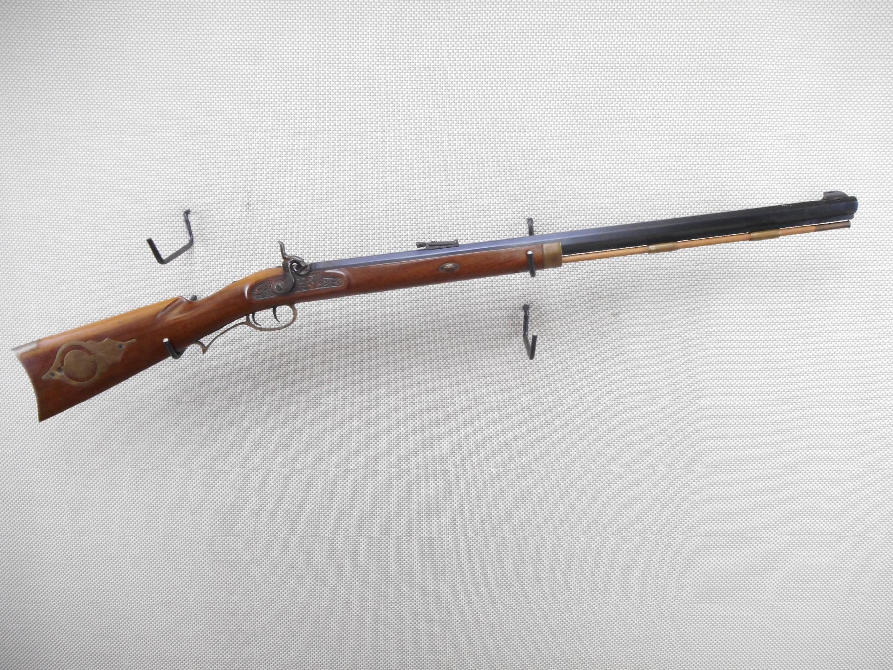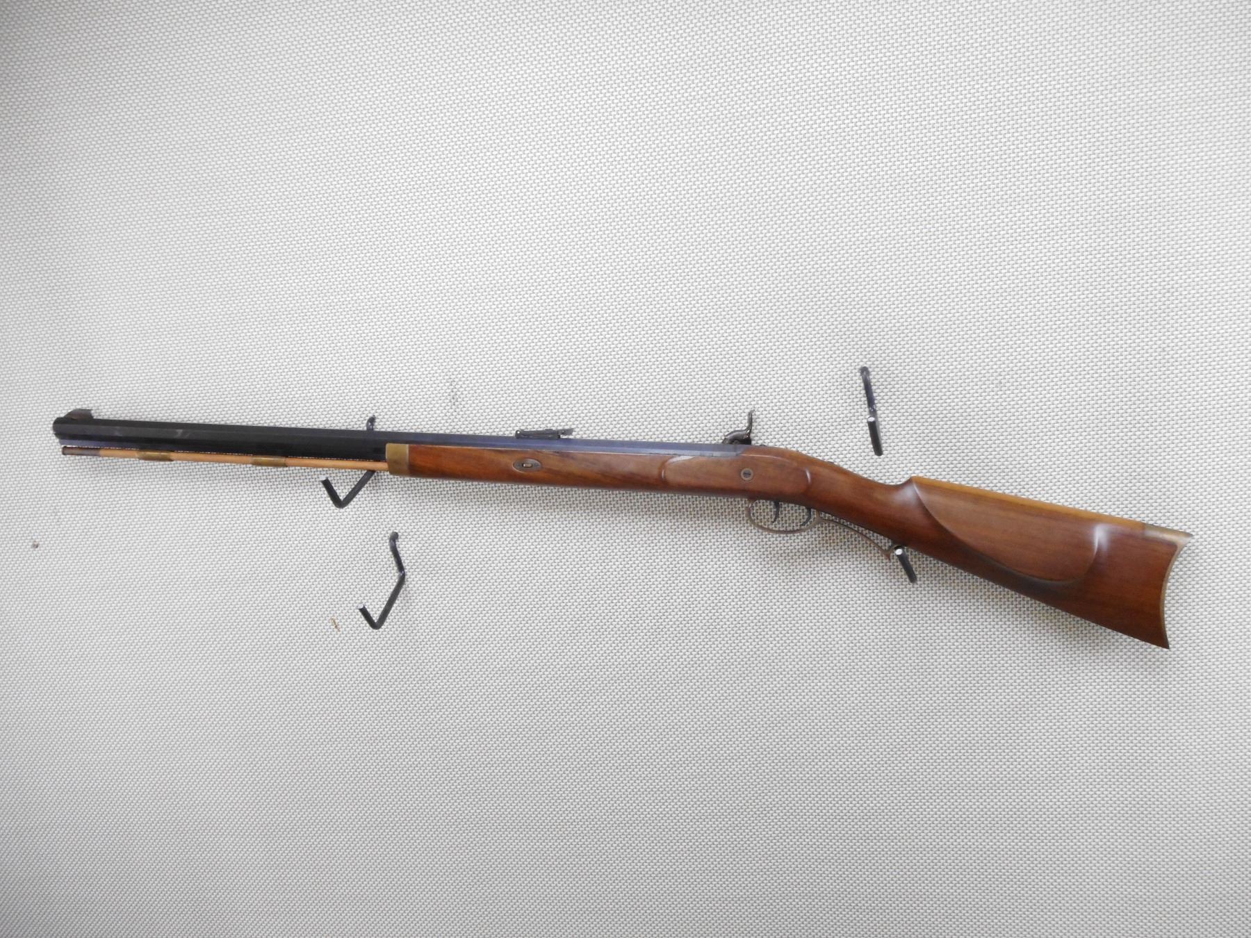 INVESTARMS , MODEL: HAWKEN STYLE , CALIBER: 50 CAL PERC , BORE IS GOOD. BLADE FRONT AND ADJUSTABLE REAR SIGHT ON AN OCTAGONAL BARREL. ONE PIECE HARDWOOD STOCK WITH RAISED CHEEK PIECE. BRASS FOREND CAP, TRIGGER GUARD, AND CRESCENT BUTT PLATE. SET TRIGGER. PATCH BOX. SHOWS VERY LITTLE HANDLING MARKS. ACTION: MUZZLE LOADER , BARREL LENGTH: 28" , SERIAL # 79162 , CONDITION: 8/10 , CLASS: CANADIAN NON RESTRICTED CLASS