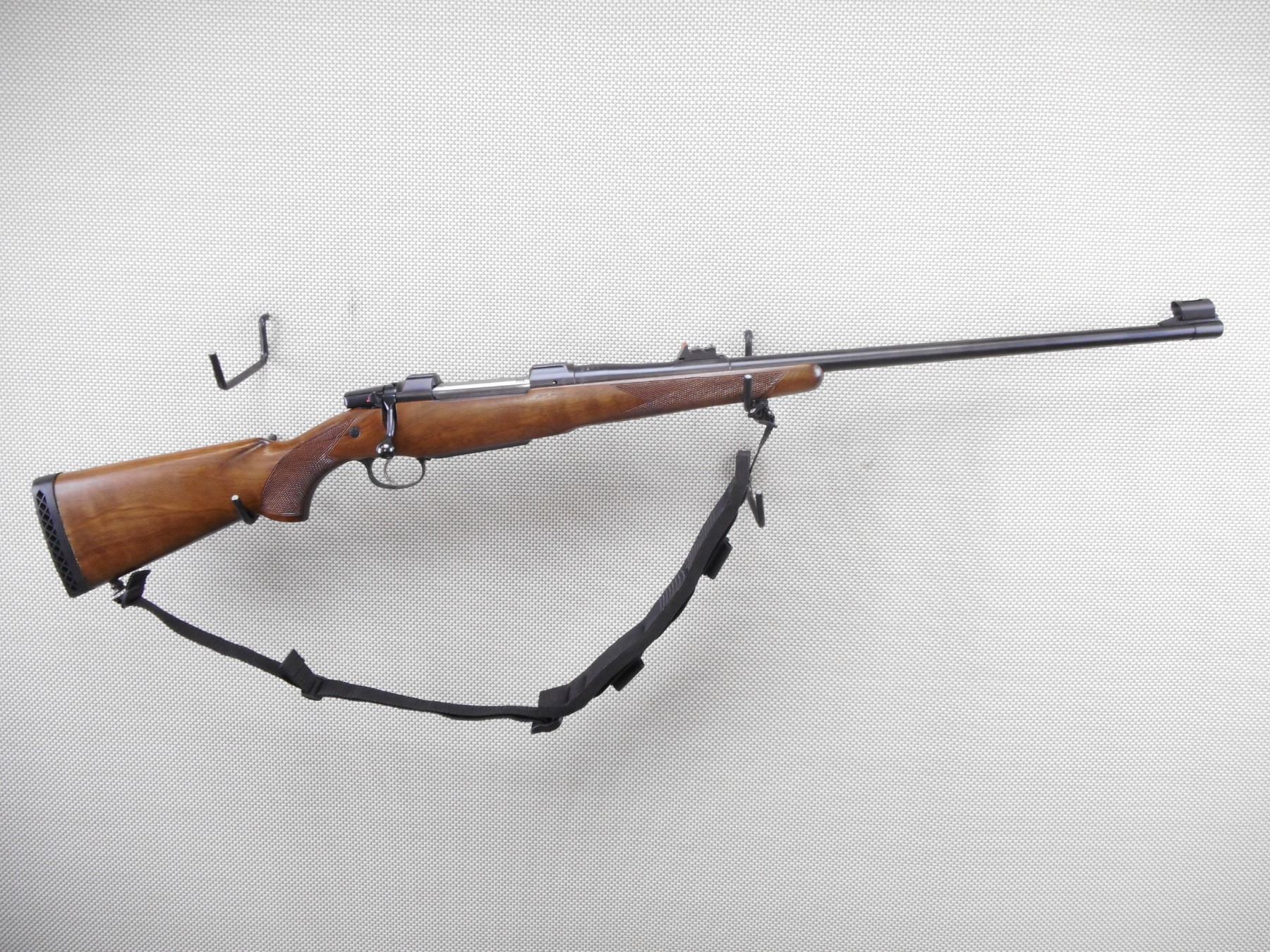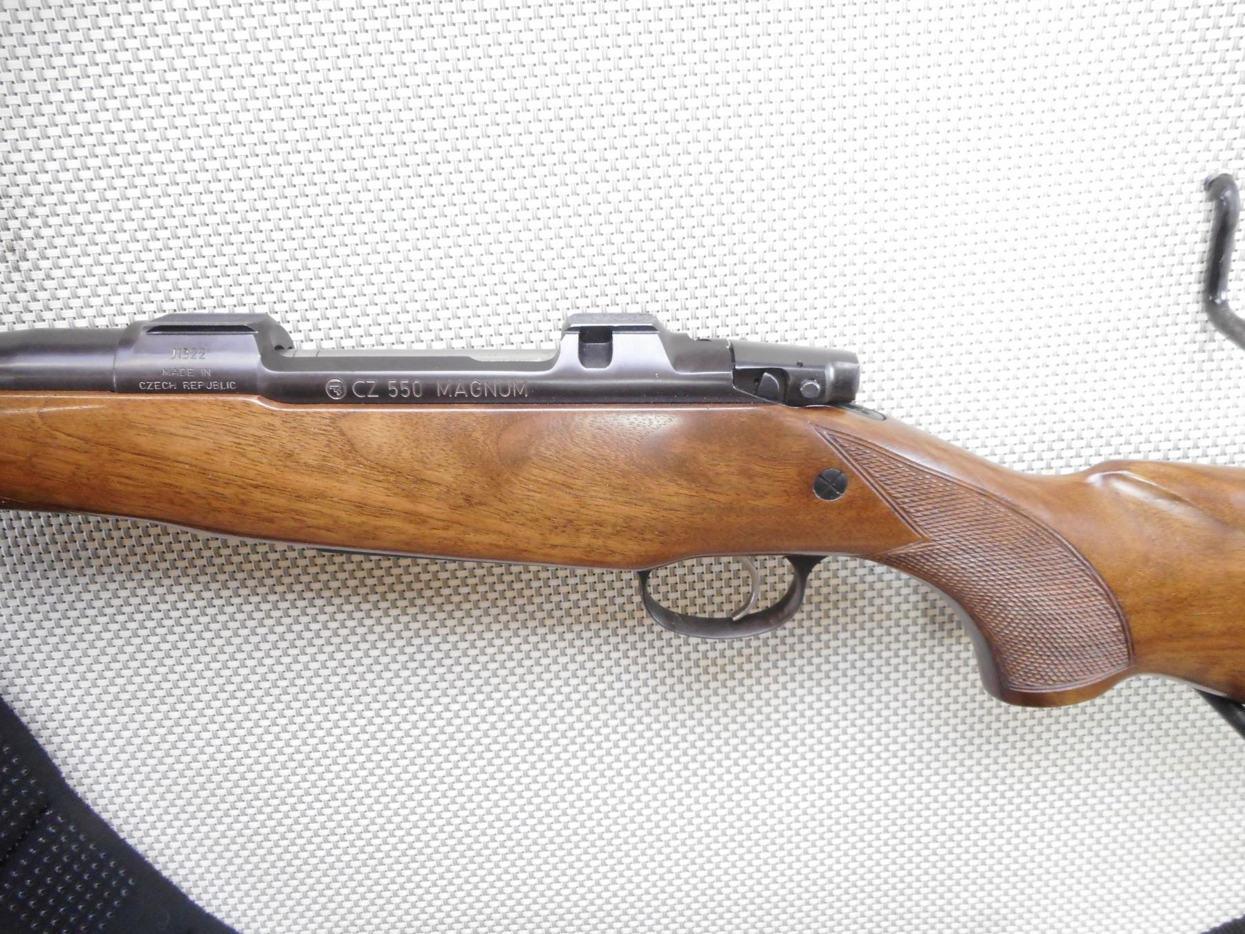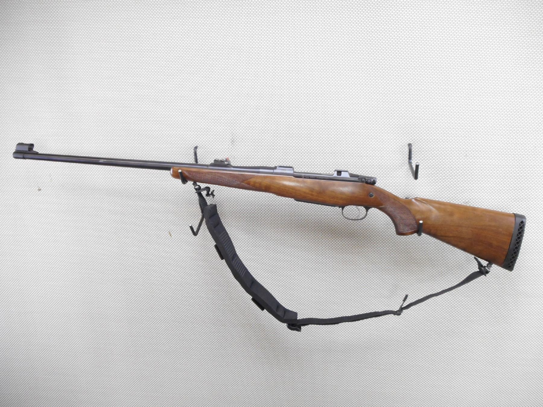 CZ , MODEL: 550 , CALIBER: 458 LOTT , VERY GOOD BORE. HOODED FRONT AND EXPRESS REAR SIGHTS. CHECKERED ONE PIECE HARDWOOD STOCK WITH REPLACED VENTED RUBBER RECOIL PAD. BUTT STOCK APPEARS TO HAVE BEEN SHORTENED. CANVAS SLING. SHOWS VERY LITTLE HANDLING MARKS. ACTION: BOLT ACTION RIFLE , BARREL LENGTH: 25" , SERIAL # J1322 , CONDITION: 7/10 , CLASS: CANADIAN NON RESTRICTED CLASS