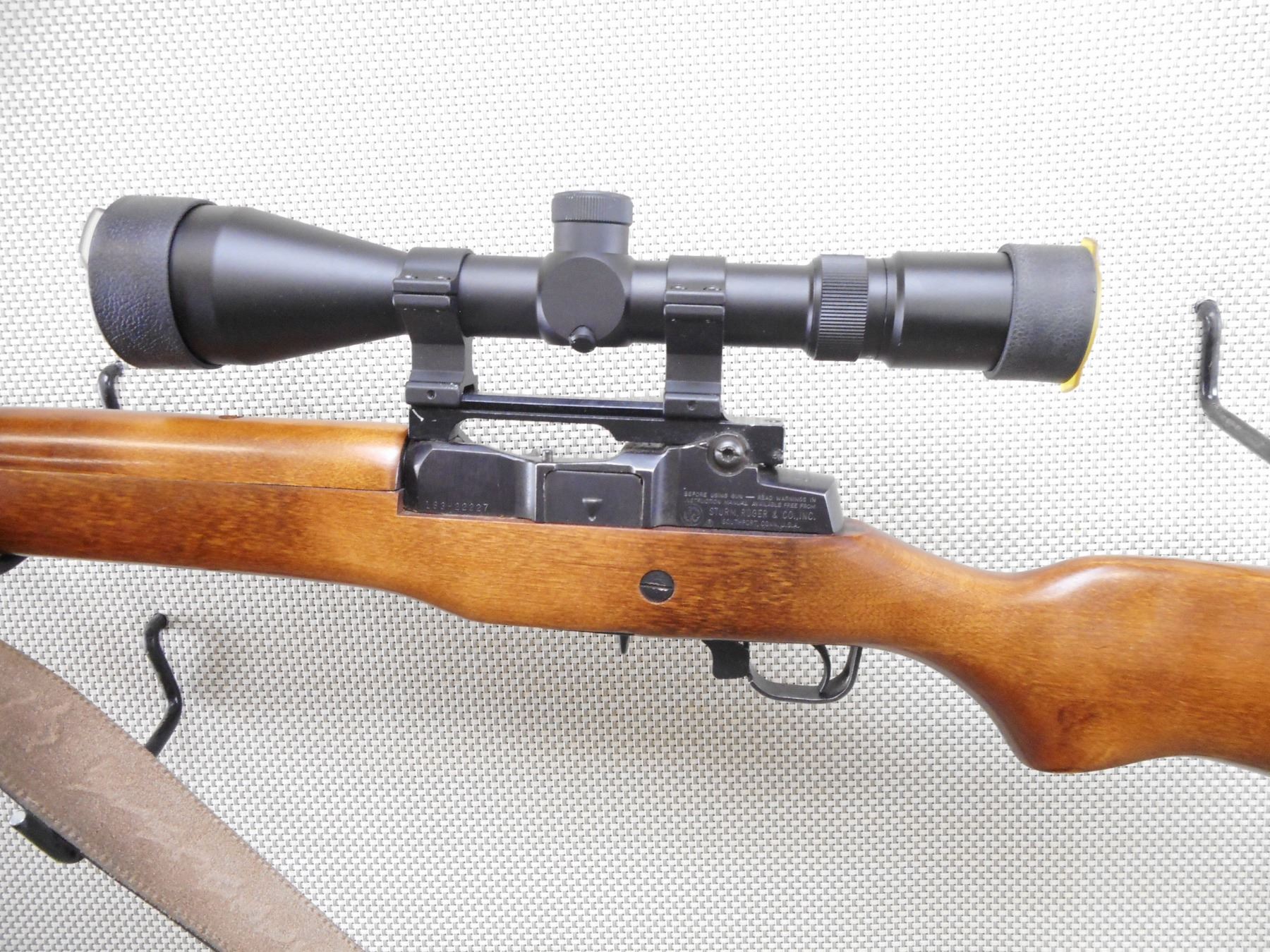 RUGER , MODEL: MINI 14 , CALIBER: 223 REM , COMES WITH MAGAZINE. BORE IS VERY GOOD. BLADE FRONT AND 3-9 POWER SCOPE. TWO PIECE HARDWOOD STOCK WITH STEEL BUTT PLATE. SMALL CHIP AT THE HEAL. LEATHER SLING. SHOWS VERY LITTLE HANDLING MARKS. ACTION: SEMI-AUTOMATIC RIFLE , BARREL LENGTH: 18 1/2" , SERIAL # 18322227 , CONDITION: 7/10 , CLASS: CANADIAN NON RESTRICTED CLASS