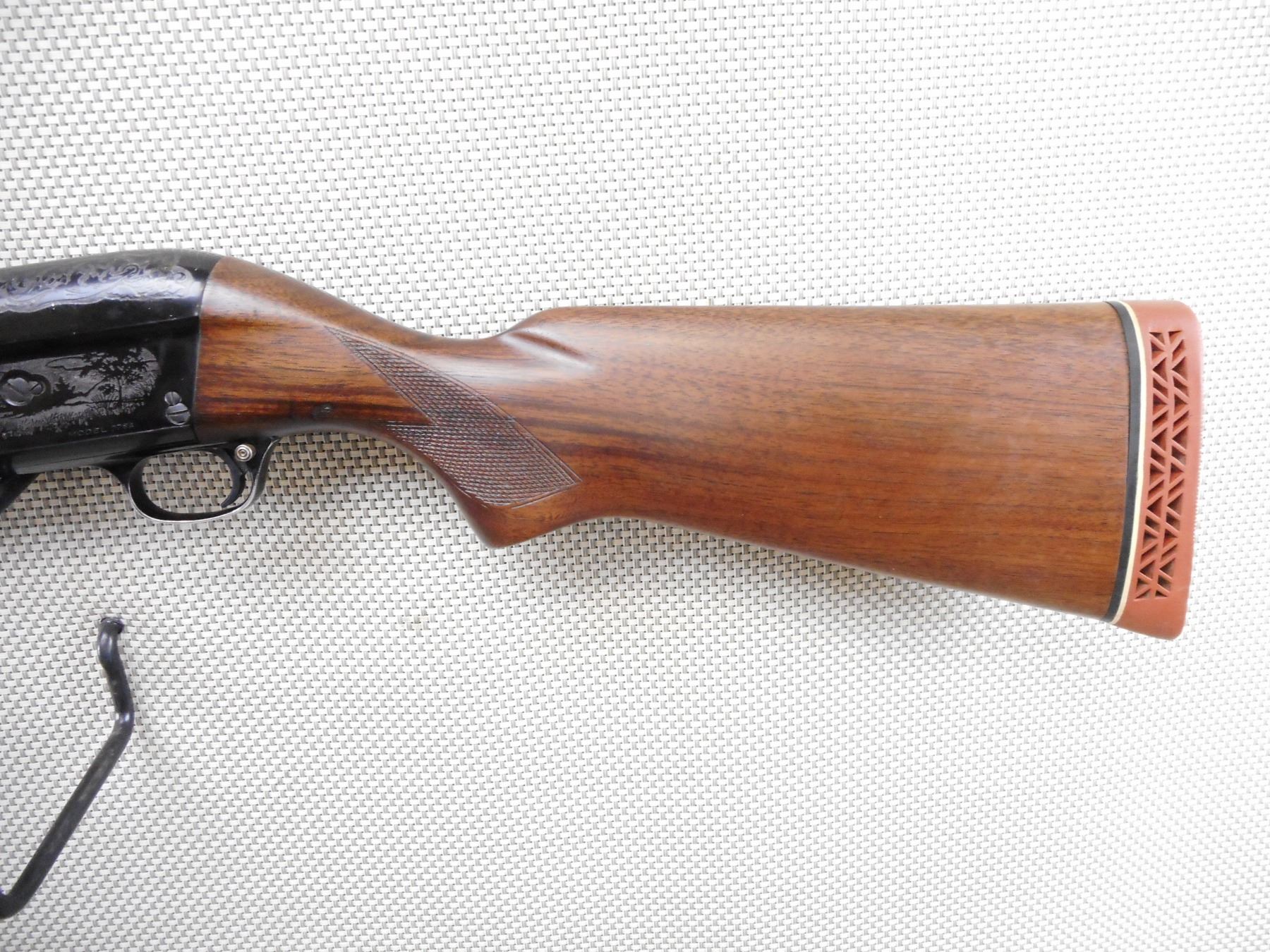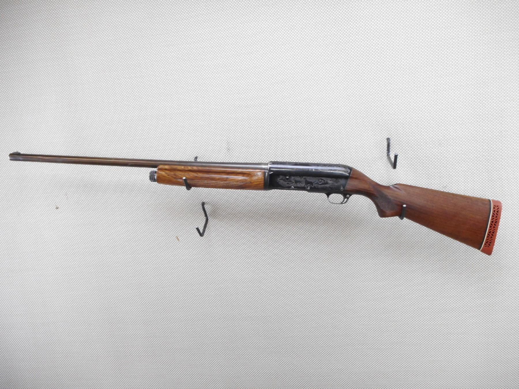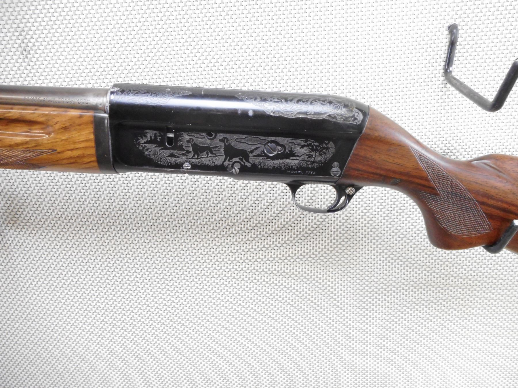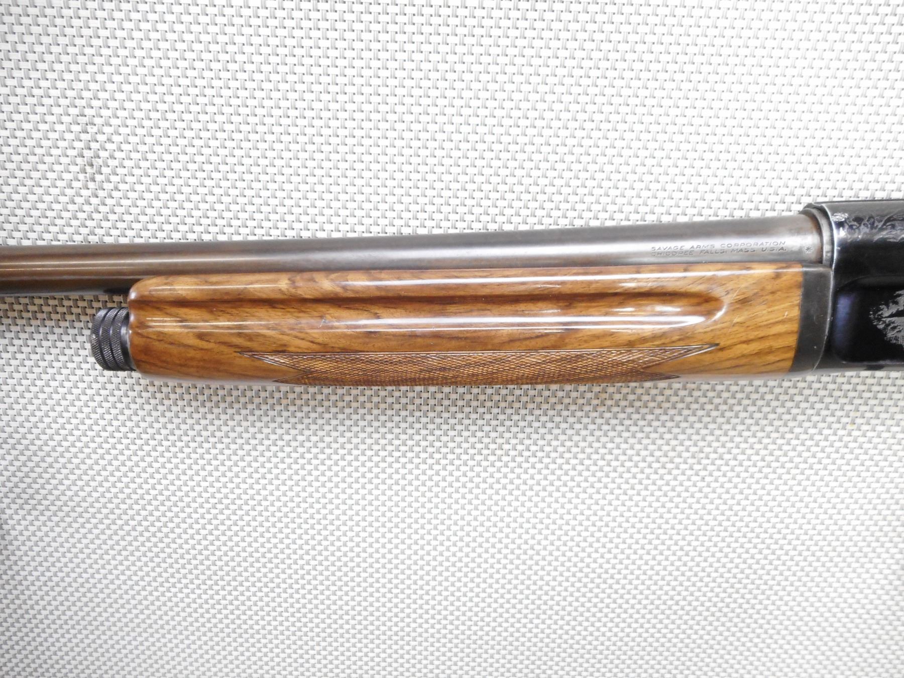 SAVAGE , MODEL: 775A , CALIBER: 12GA X 2 3/4" , BORE IS VERY GOOD. FIXED FULL CHOKE. BEAD FRONT SIGHT. CHECKERED TWO PIECE HARDWOOD STOCK WITH VENTED RUBBER RECOIL PAD. GAME SCENE ETCHED RECEIVER. SHOWS SOME HANDLING MARKS. ACTION: SEMI-AUTOMATIC SHOTGUN , BARREL LENGTH: 28" , SERIAL # 231712 , CONDITION: 6/10 , CLASS: CANADIAN NON RESTRICTED CLASS