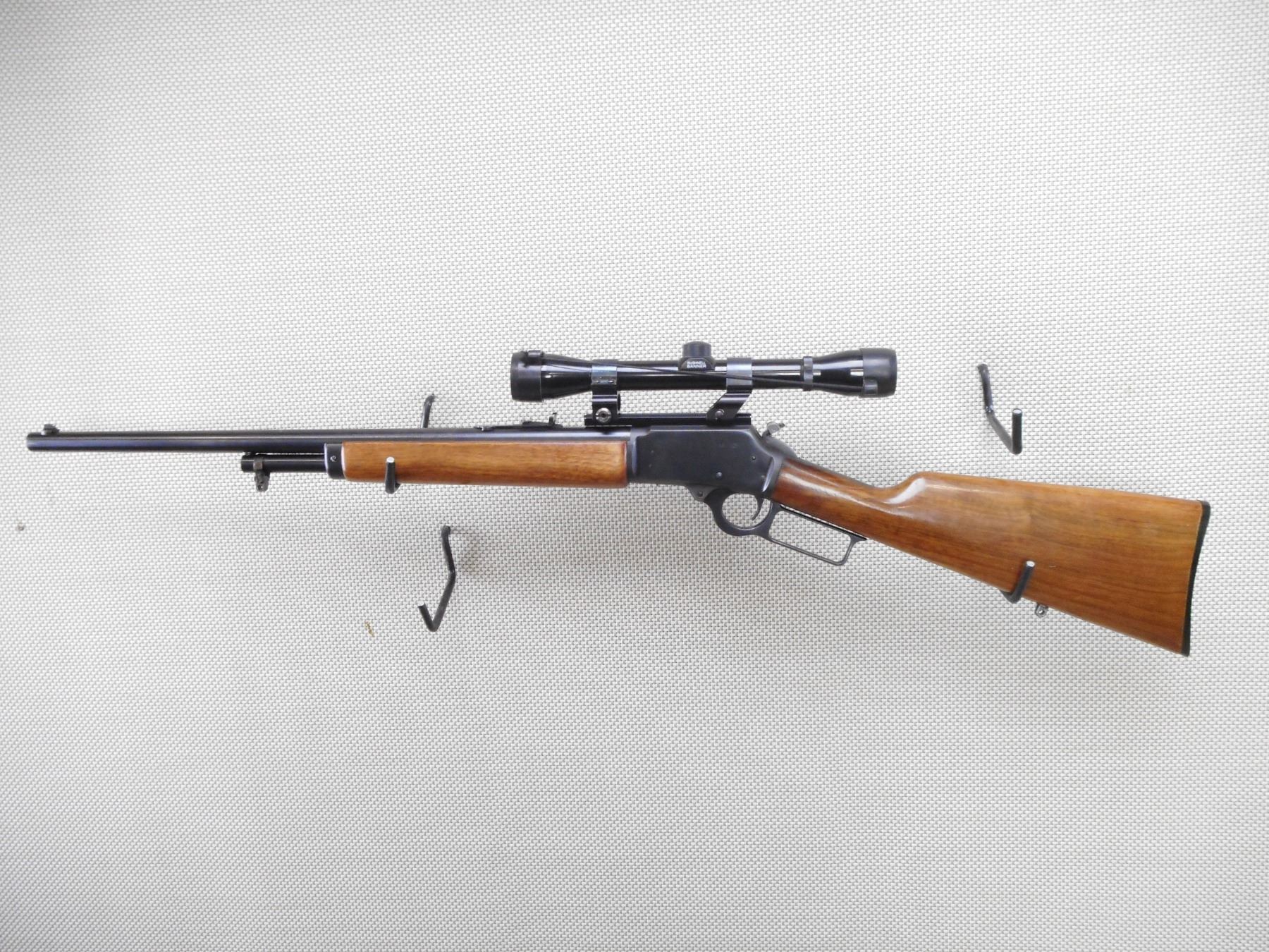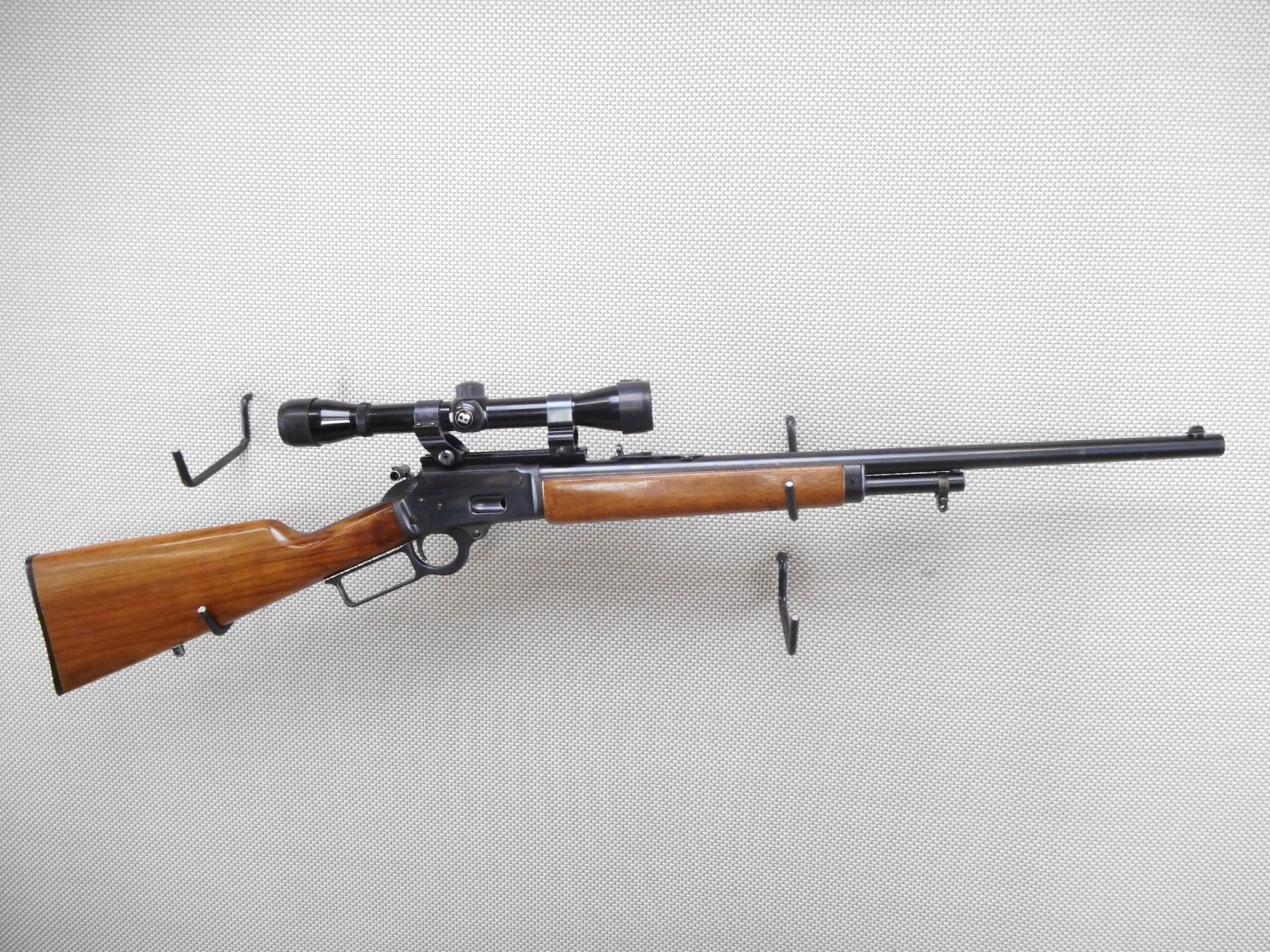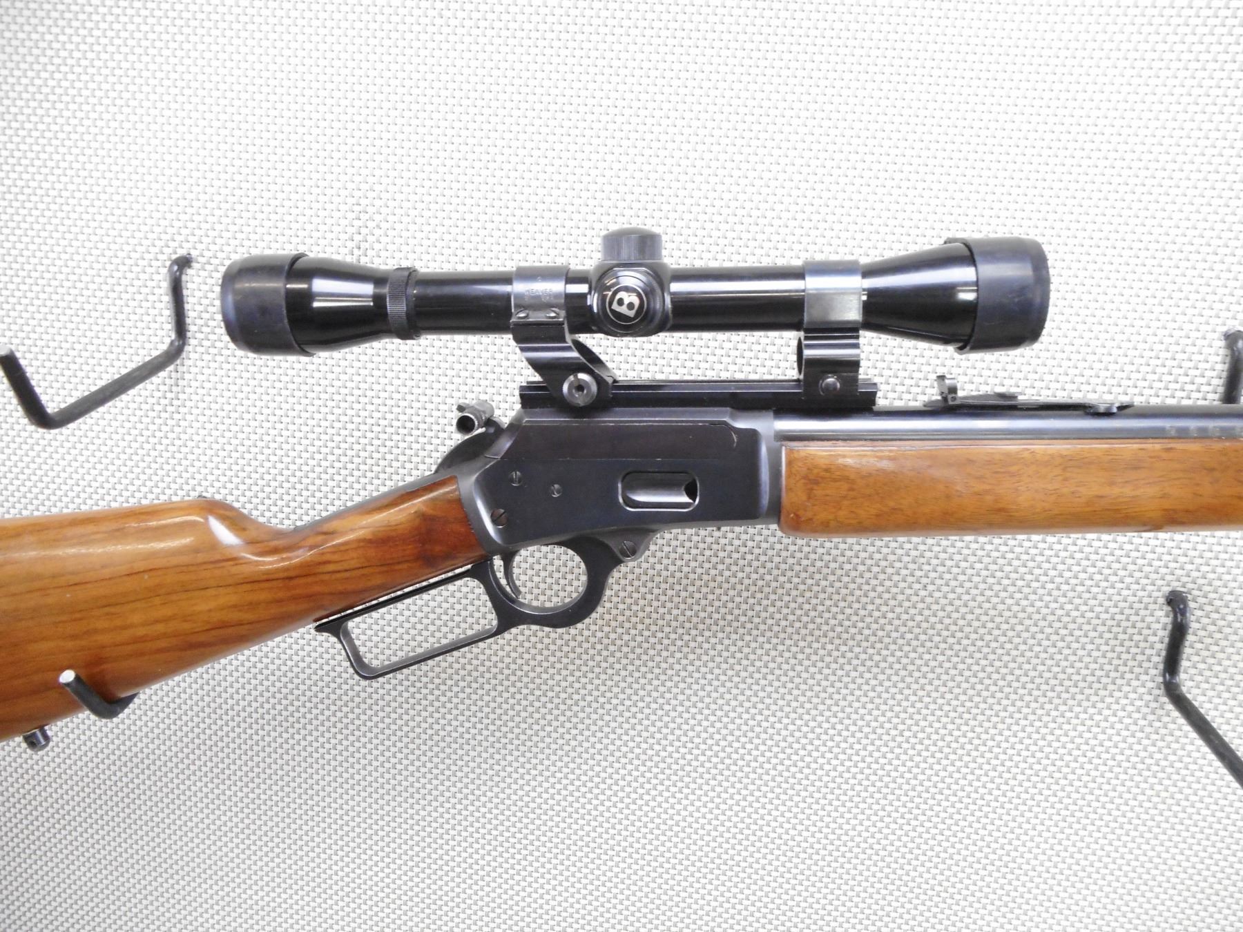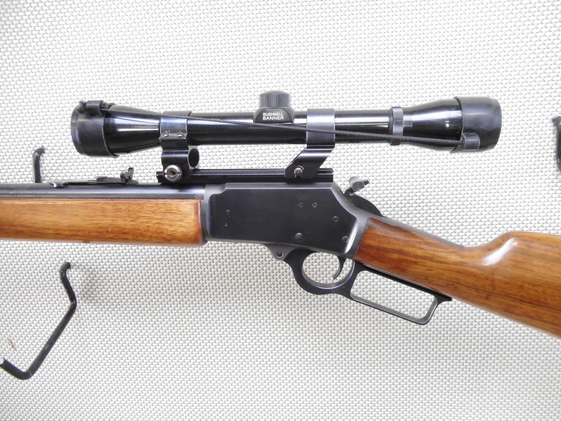 MARLIN , MODEL: 1894 , CALIBER: 44 MAG , BORE IS VERY GOOD. BLADE FRONT AND ADJUSTABLE REAR SIGHT. FEATURES A BUSHNELL BANNER SCOPE. TWO PIECE HARDWOOD STOCK WITH PLASTIC BUTT PLATE. SLING SWIVEL STUDS. SHOWS VERY LITTLE HANDLING MARKS. ACTION: LEVER ACTION RIFLE , BARREL LENGTH: 22" , SERIAL # 27075015 , CONDITION: 8/10 , CLASS: CANADIAN NON RESTRICTED CLASS