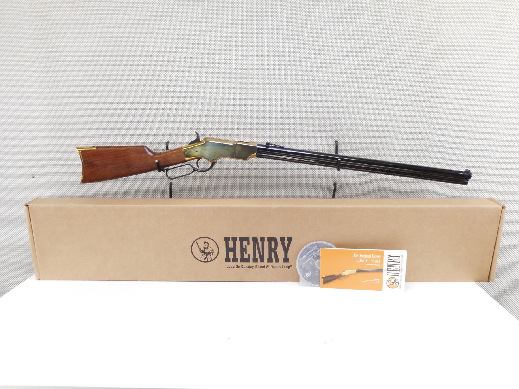 HENRY REPEATING ARMS , MODEL: 1860 , CALIBER: 44-40 WIN , COMES WITH BOX, MANUAL AND CD , BORE IS EXCELLENT, APPEARS AS NEW, MAY HAVE BEEN TEST FIRED. HIGH GRADE ONE PIECE HARDWOOD STOCK WITH BRASS BUTT PLATE AND TRAP DOOR. BLADE FRONT AND ADJUSTABLE REAR SIGHT. SHOWS VIRTUALLY NO HANDLING MARKS ACTION: LEVER ACTION RIFLE , BARREL LENGTH: 26" , SERIAL # BTH05748 , CONDITION: AS NEW IN BOX , CLASS: CANADIAN NON RESTRICTED CLASS