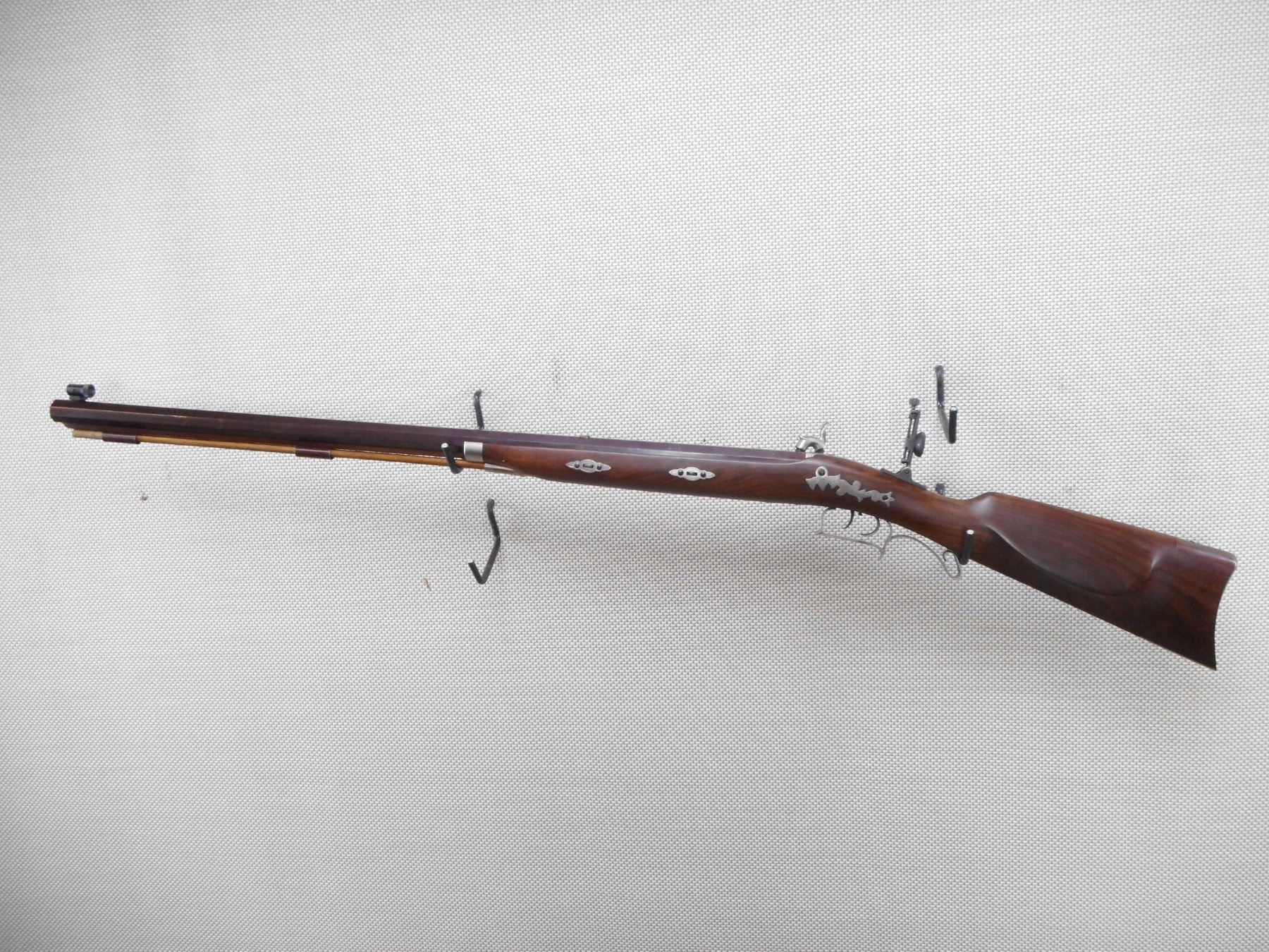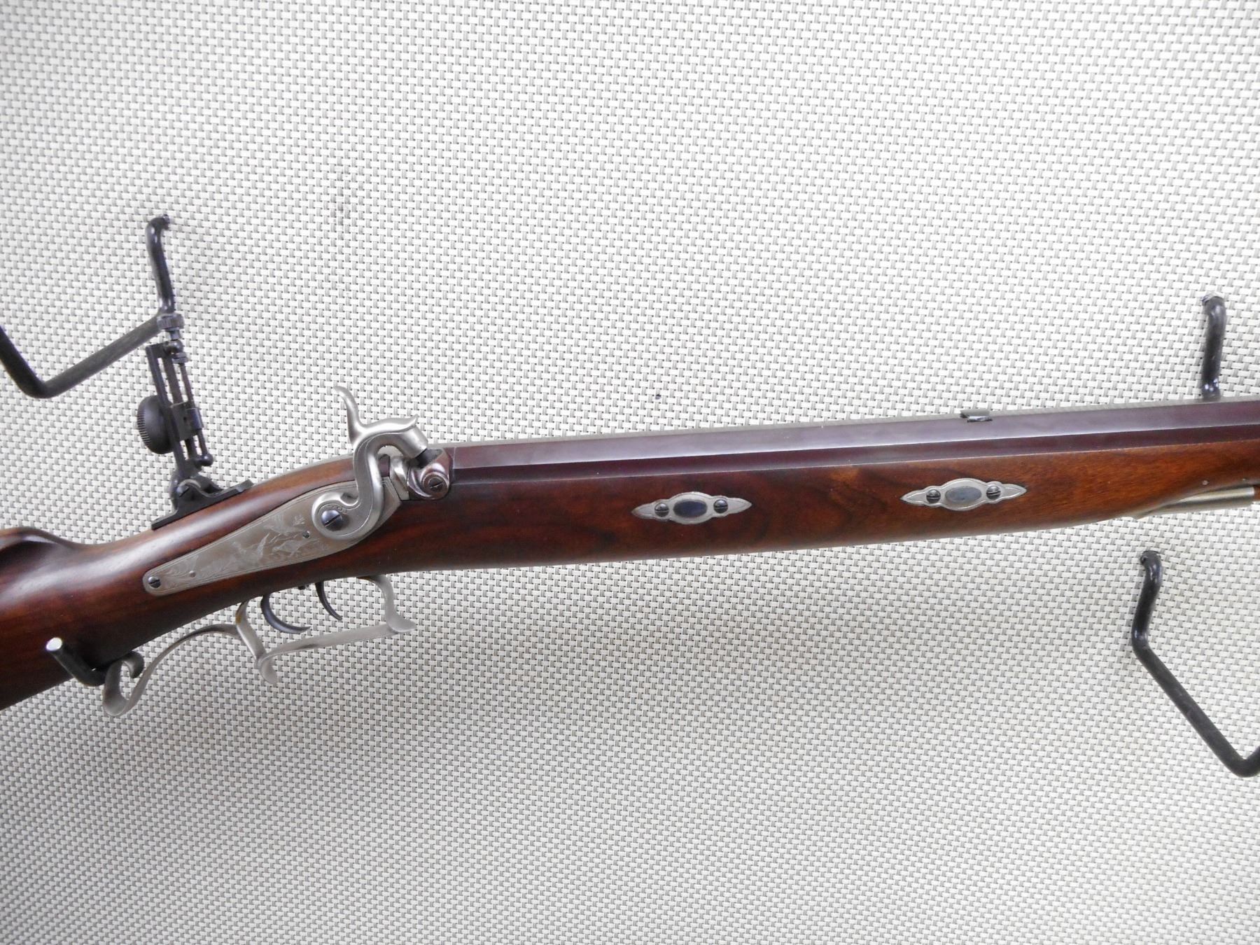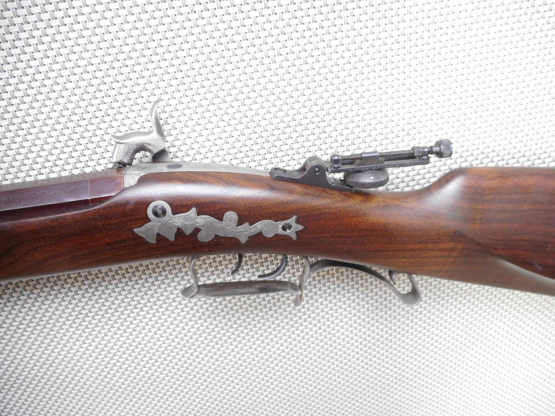 PEDASOLI , MODEL: HAWKEN RIFLE REPRODUCTION , CALIBER: 54 CAL PERC , BORE IS VERY GOOD. TUNNEL FRONT AND PEEP REAR APERTURE SIGHT. HAS A WOOD RAM ROD. ONE PIECE HARDWOOD STOCK WITH STEEL CAPPED FOREND AND CRESCENT BUTT PLATE. SET TRIGGER. SHOWS VERY LITTLE HANDLING MARKS. ACTION: MUZZLE LOADER , BARREL LENGTH: 31" , SERIAL # 51128 , CONDITION: 7/10 , CLASS: CANADIAN NON RESTRICTED CLASS