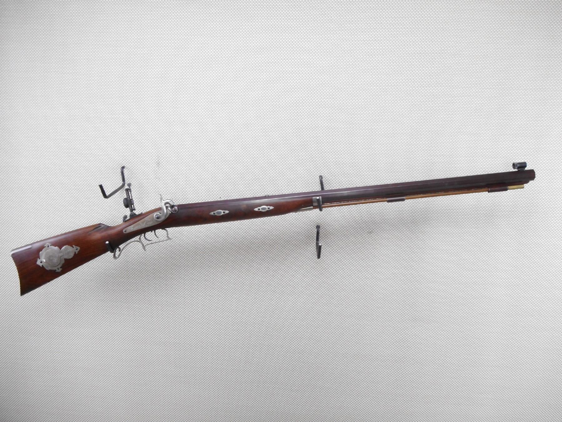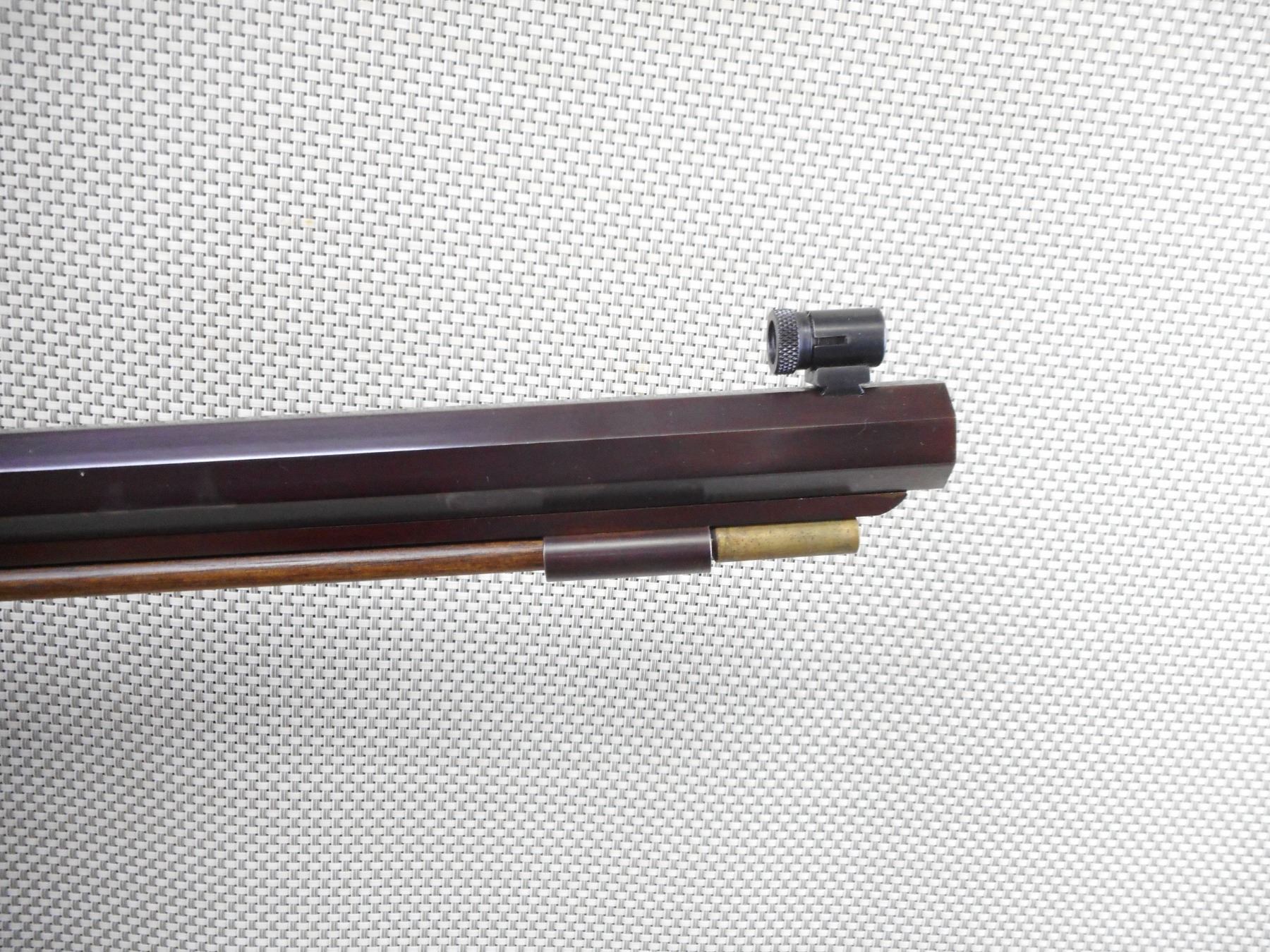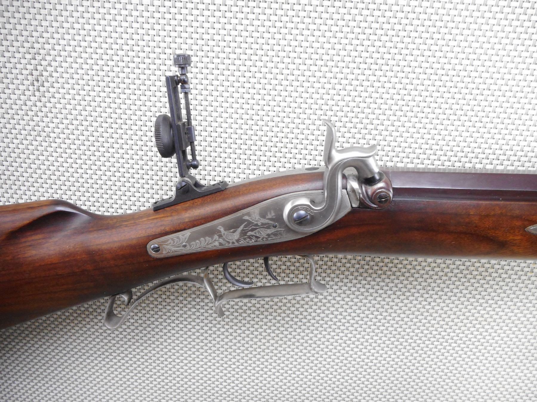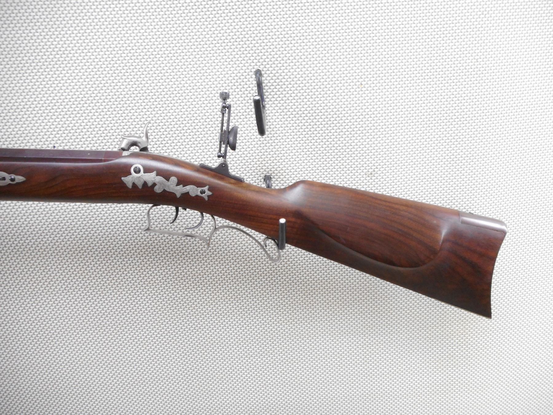 PEDASOLI , MODEL: HAWKEN RIFLE REPRODUCTION , CALIBER: 54 CAL PERC , BORE IS VERY GOOD. TUNNEL FRONT AND PEEP REAR APERTURE SIGHT. HAS A WOOD RAM ROD. ONE PIECE HARDWOOD STOCK WITH STEEL CAPPED FOREND AND CRESCENT BUTT PLATE. SET TRIGGER. SHOWS VERY LITTLE HANDLING MARKS. ACTION: MUZZLE LOADER , BARREL LENGTH: 31" , SERIAL # 51128 , CONDITION: 7/10 , CLASS: CANADIAN NON RESTRICTED CLASS