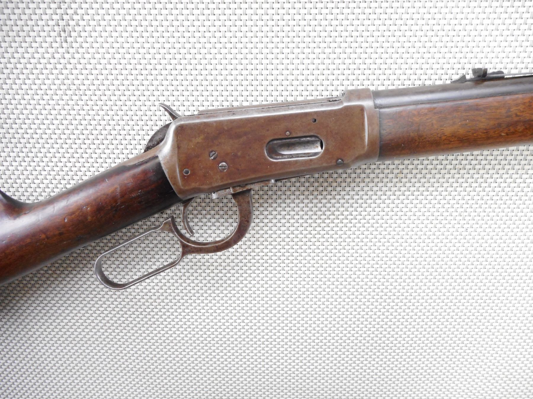 WINCHESTER , MODEL: 1894 , CALIBER: 25-35 WIN , MANUFACTURED IN 1905. PITTED BORE. BLADE FRONT SIGHT AND ADJUSTABLE REAR SIGHT. TWO PIECE HARDWOOD STOCK NUMEROUS DINGS. CRESCENT BUTT PLATE. SHOWS SOME HANDLING MARKS. ACTION: LEVER ACTION RIFLE , BARREL LENGTH: 26" , SERIAL # 323827 , CONDITION: 6/10 , CLASS: CANADIAN NON RESTRICTED CLASS