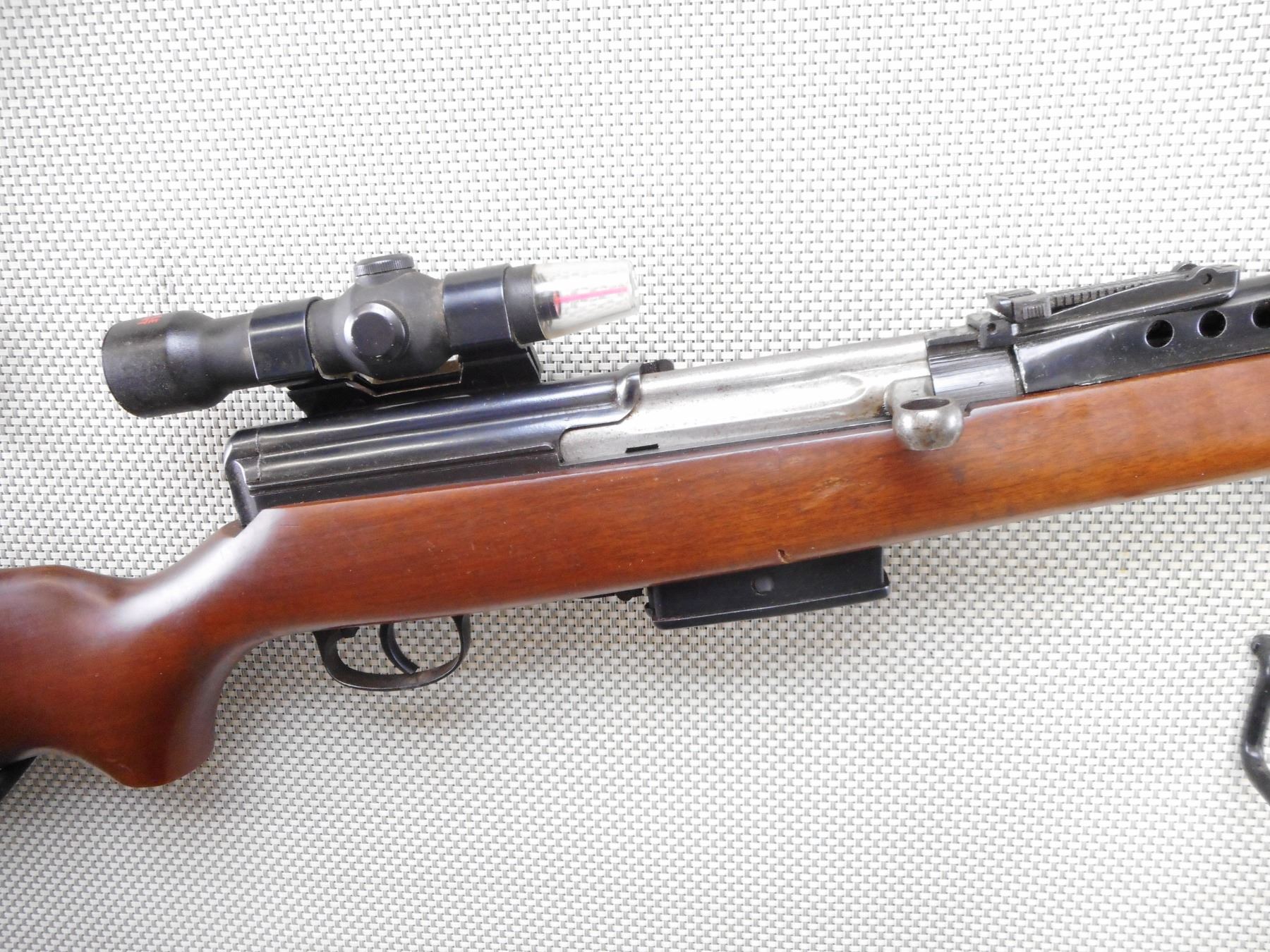 GLOBECO , MODEL: MOHAWK 555 , CALIBER: 7.62 X 54R , COMES WITH MAGAZINE. FACTORY CONVERTED TOKAREV SVT 40 FIREARMS BY GLOBECO FIREARMS OF OTTAWA. BORE IS GOOD RAMP FRONT AND ADJUSTABLE REAR SIGHT. FEATURES A SINGLE POINT FIBER OPTIC REAR SIGHT. ONE PIECE HARDWOOD STOCK WITH SLING SWIVEL LOOPS. SHOWS SOME HANDLING MARKS. ACTION: SEMI AUTOMATIC RIFLE , BARREL LENGTH: 30" , SERIAL # N/A , CONDITION: 7/10 , CLASS: CANADIAN NON RESTRICTED CLASS