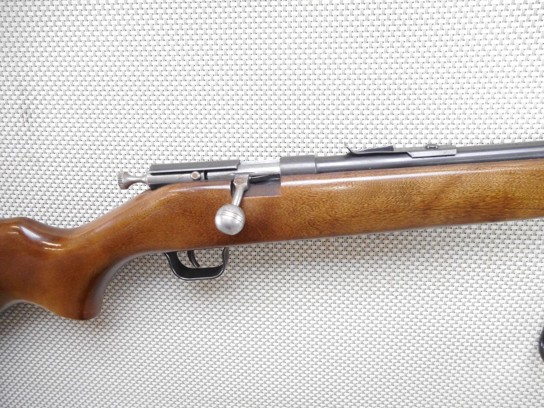 COOEY/ WINCHESTER , MODEL: 39 , CALIBER: 22 LR , BORE IS VERY GOOD. BLADE FRONT AND ADJUSTABLE REAR SIGHT. ONE PIECE HARDWOOD STOCK WITH PLASTIC BUTT PLATE. SHOWS VERY LITTLE HANDLING MARKS. ACTION: BOLT ACTION RIFLE , BARREL LENGTH: 22" , SERIAL # CD074380 , CONDITION: 8/10 , CLASS: CANADIAN NON RESTRICTED CLASS