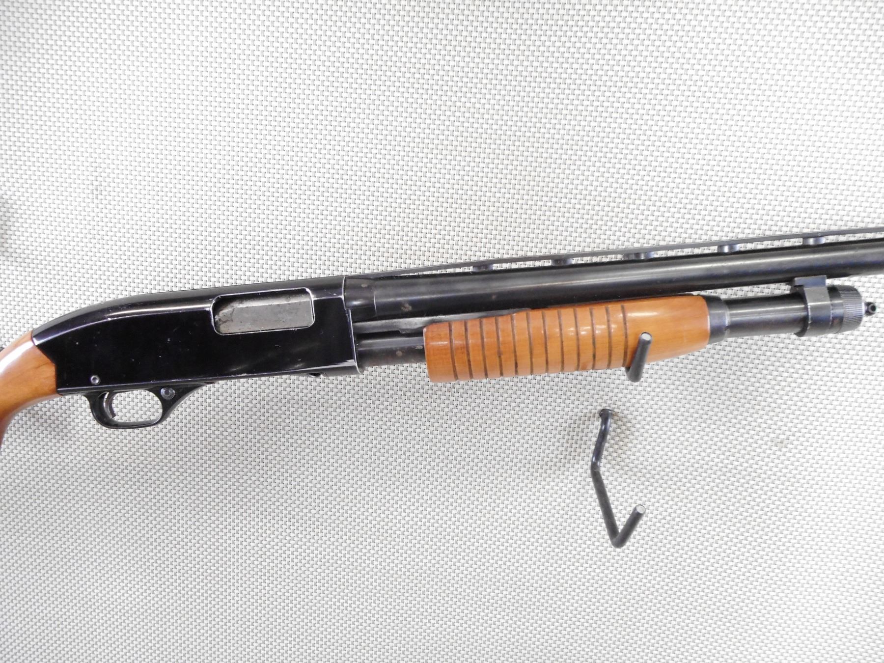 WINCHESTER , MODEL: 1300 RANGER , CALIBER: 12GA X 3" , BORE IS GOOD. SCREW IN MODIFIED CHOKE. BEAD FRONT SIGHT ON A VENTED RIB BARREL. TWO PIECE HARDWOOD STOCK WITH VENTED RUBBER RECOIL PAD. SHOWS SOME HANDLING AMRKS. FRONT SLING SWIVEL LOOP MISSING THE REAR SLING SWIVEL LOOP. SOME LIGHT SURFACE PITTING. ACTION: PUMP ACTION SHOTGUN , BARREL LENGTH: 28" , SERIAL # L2271625 , CONDITION: 6/10 , CLASS: CANADIAN NON RESTRICTED CLASS