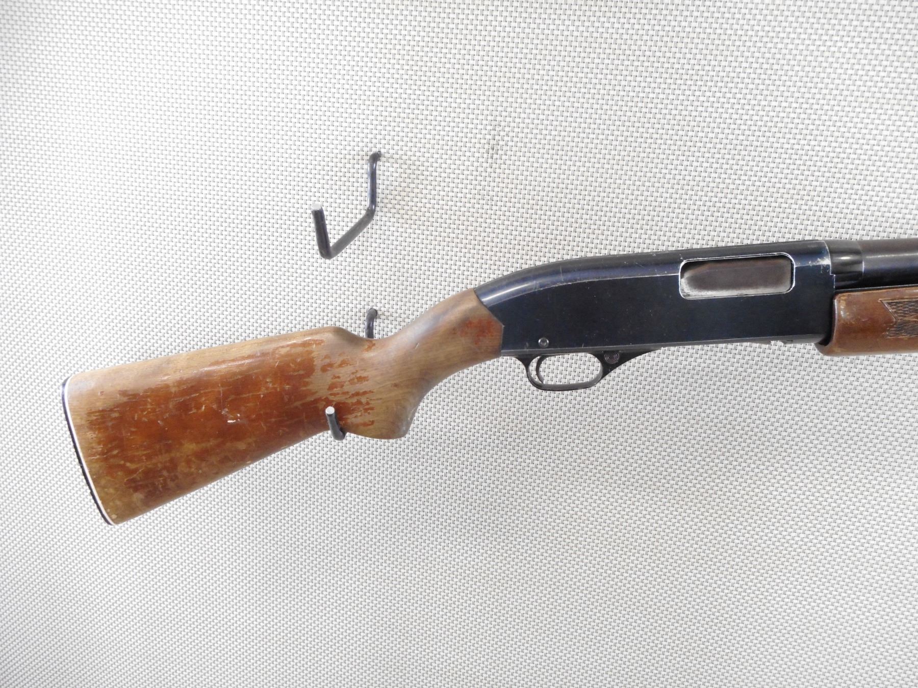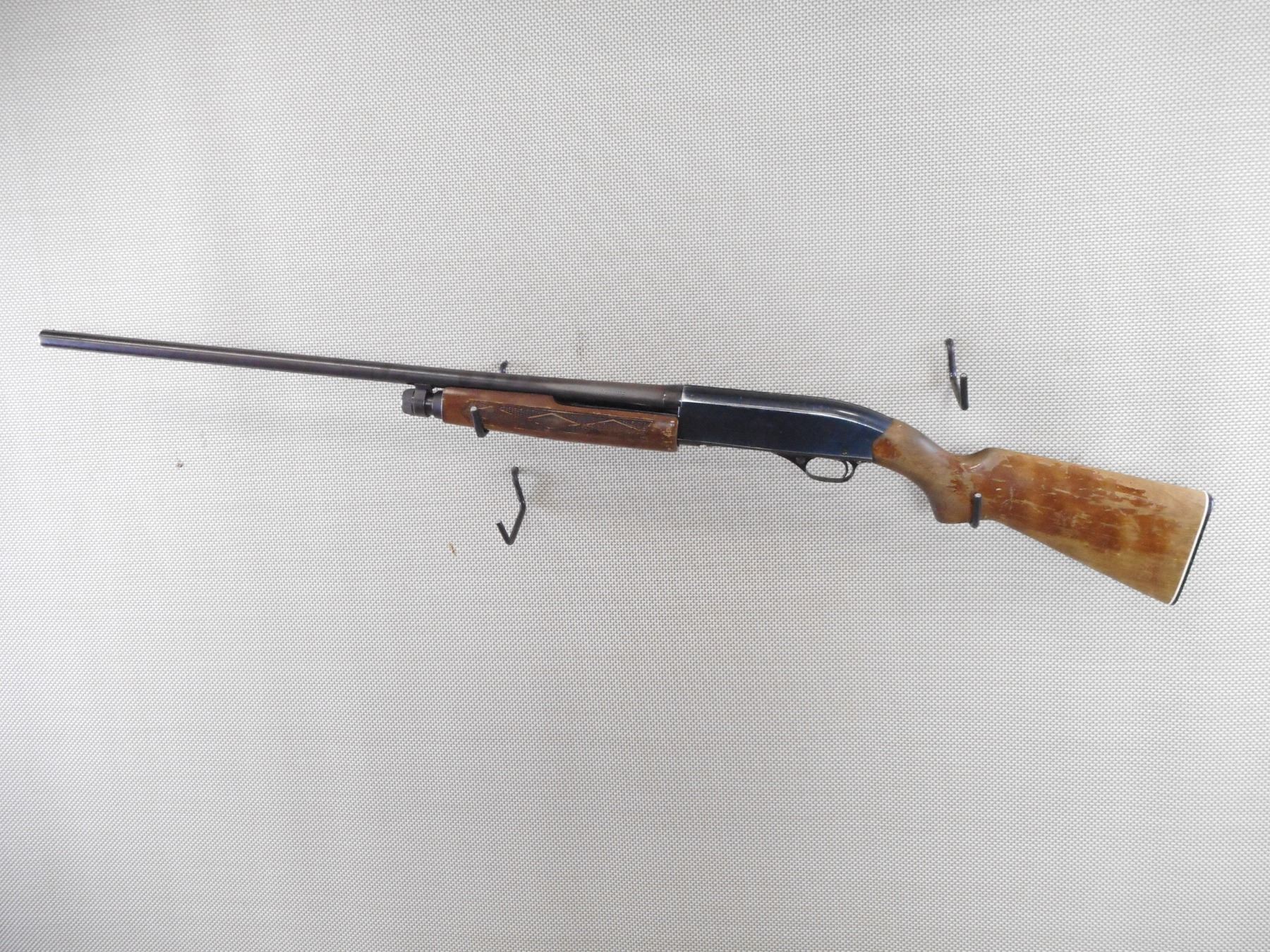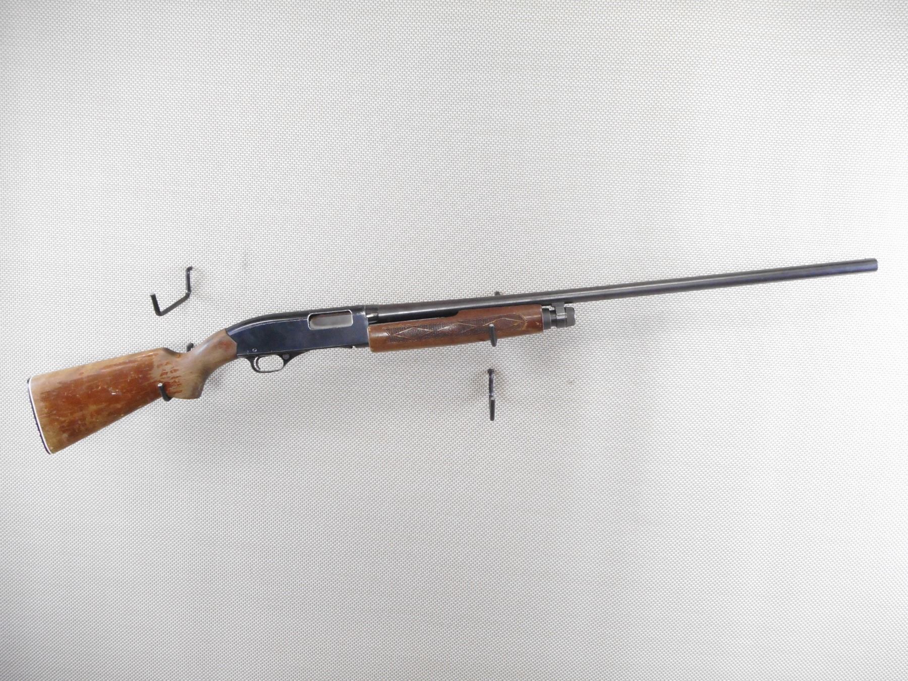 WINCHESTER , MODEL: 2200 , CALIBER: 12GA X 2 3/4" , BORE IS VERY GOOD. FIXED FULL CHOKE. BEAD FRONT SIGHT. CHECKERED TWO PIECE HARDWOOD STOCK WITH PLASTIC BUTT PLATE. MUCH OF THE STOCK FINISH IS WORN OFF. SHOWS SOME HANDLING MARKS. ACTION: PUMP ACTION SHOTGUN , BARREL LENGTH: 30" , SERIAL # L1028684 , CONDITION: 6/10 , CLASS: CANADIAN NON RESTRICTED CLASS