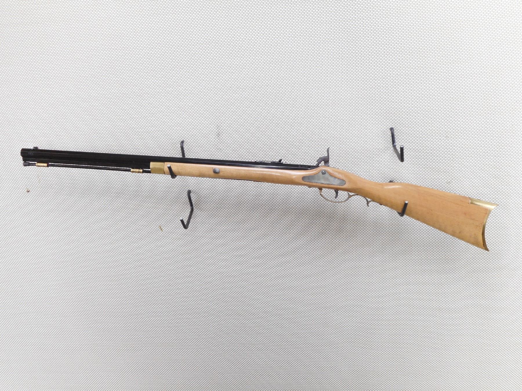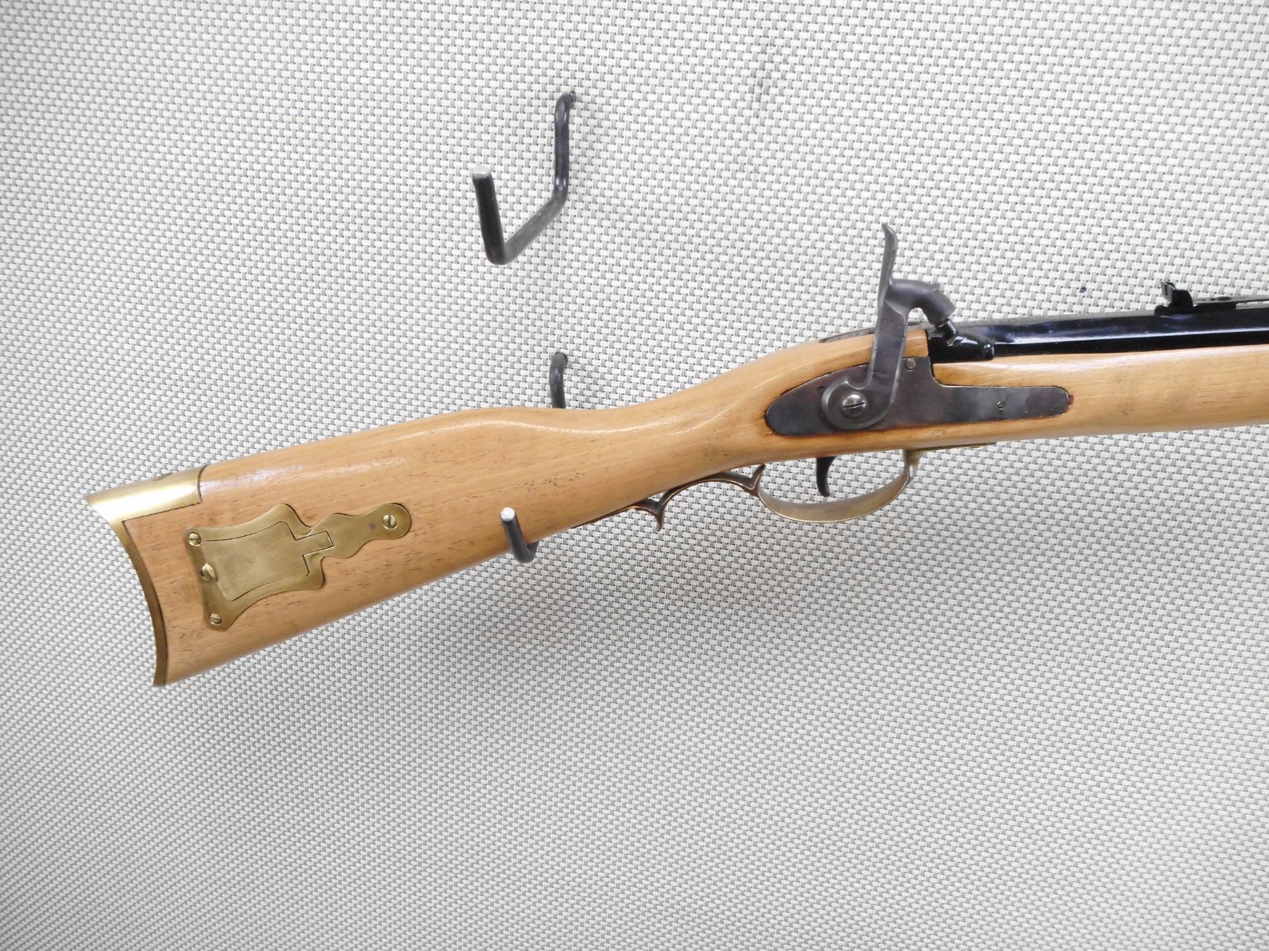 MENDI , MODEL: HAWKEN STYLE , CALIBER: 45 CAL PERC , BORE IS VERY GOOD. BLADE FRONT SIGHT, ADJUSTABLE REAR SIGHT. BARREL APPEARS TO HAVE BEEN PAINTED. ONE PIECE HARDWOOD STOCK WITH BRASS FOREND CAP, TRIGGER GUARD, PATCH BOX, AND CRESCENT BUTT PLATE. SHOWS SOME HANDLING MARKS. ACTION: SINGLE SHOT PERCUSSION , BARREL LENGTH: 26 1/2" , SERIAL # B3806 , CONDITION: 6/10 , CLASS: CANADIAN NON RESTRICTED CLASS