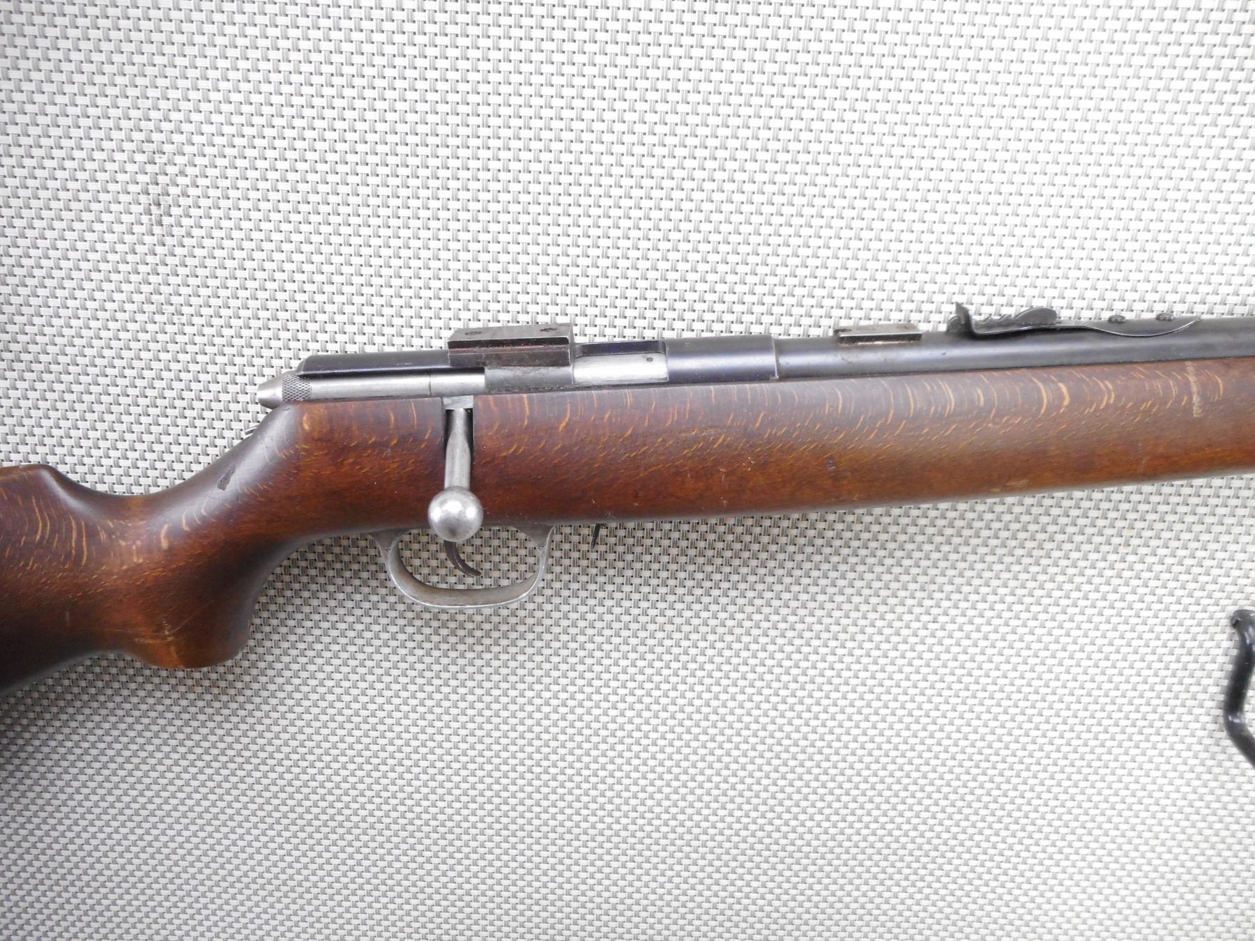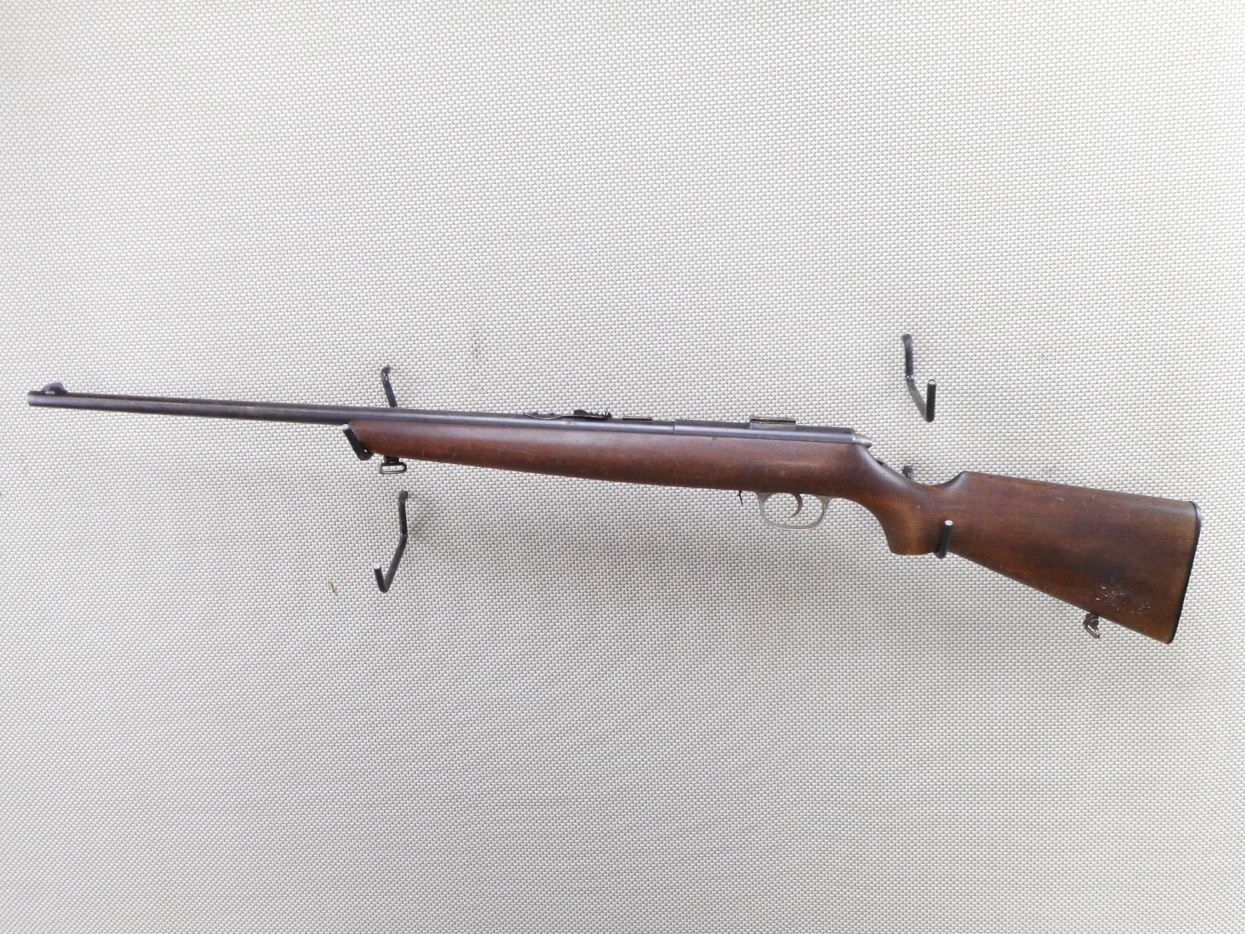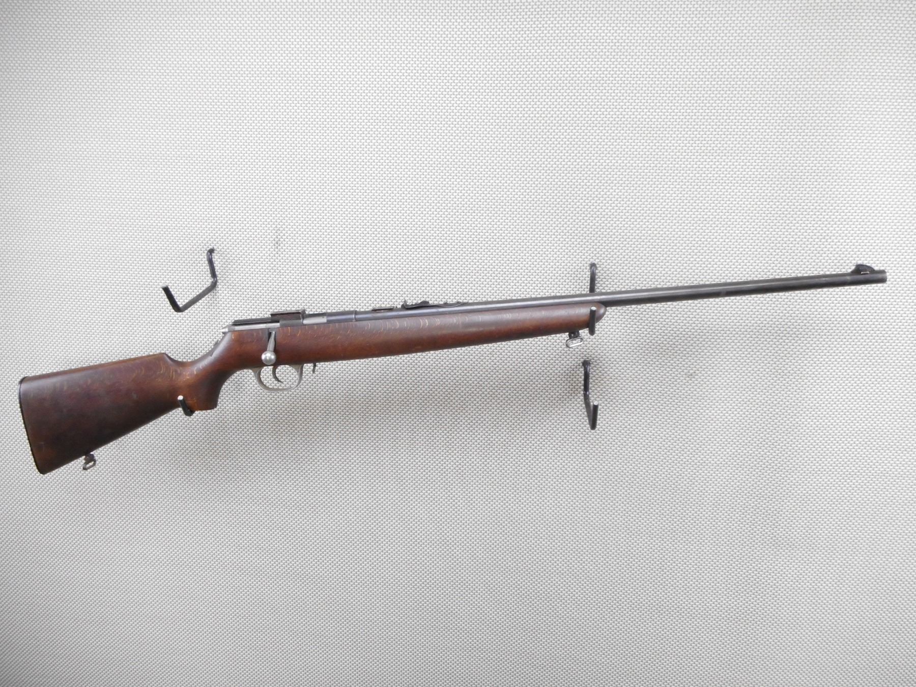 HUSQVARNA , MODEL: BOLT ACTION REPEATER , CALIBER: 22 LR , DOES NOT COME WITH THE MAGAZINE. BORE IS GOOD. BLADE FRONT AND ADJUSTABLE REAR SIGHTS. DRILLED AND TAPPED WITH SCOPE MOUNT. ONE PIECE HARDWOOD STOCK WITH PLASTIC BUTT PLATE. SLING SWIVEL LOOPS. SHOWS SOME HANDLING MARKS. ACTION: BOLT ACTION RIFLE , BARREL LENGTH: 24" , SERIAL # 1010 , CONDITION: 5/10 , CLASS: CANADIAN NON RESTRICTED CLASS