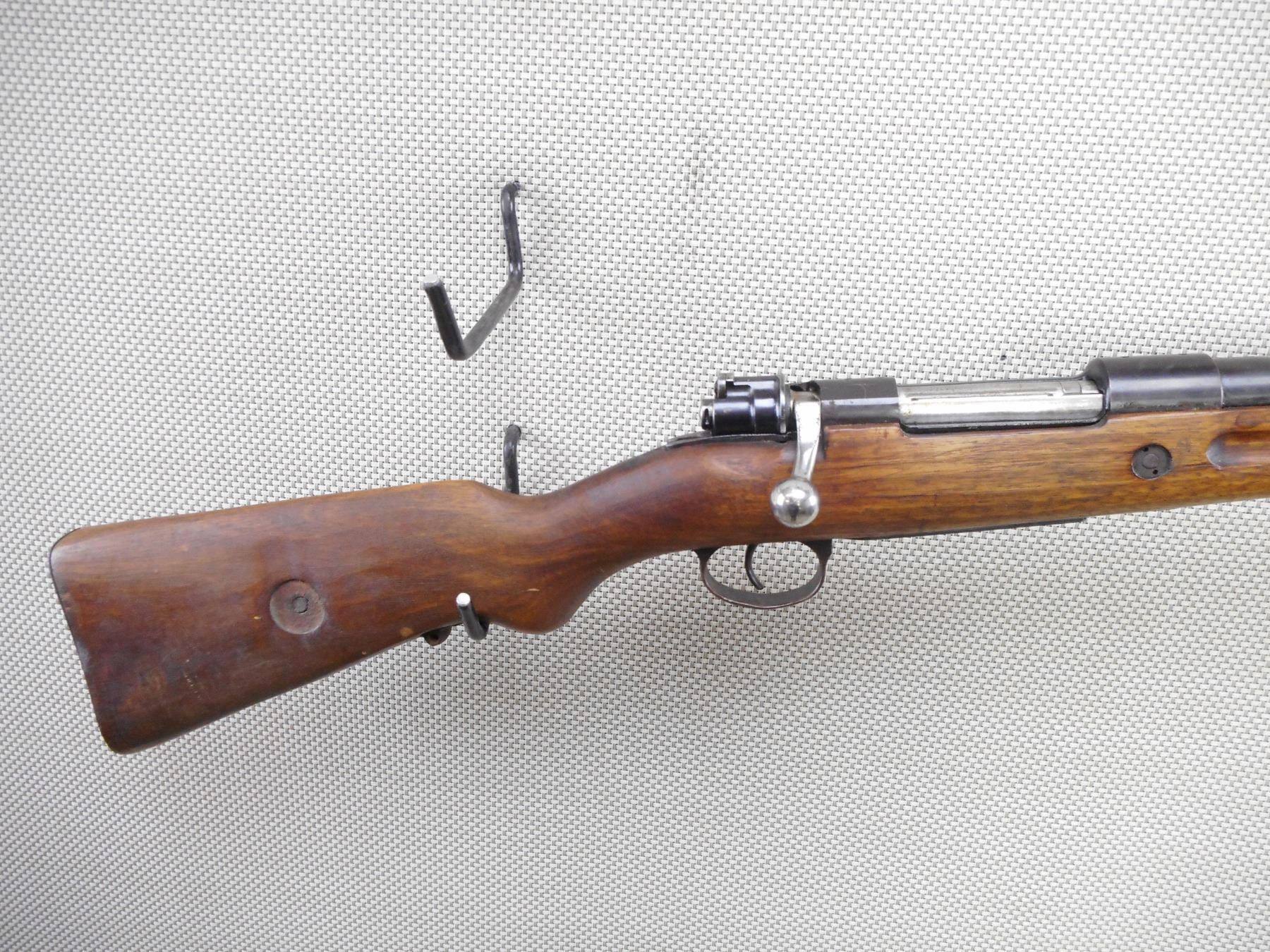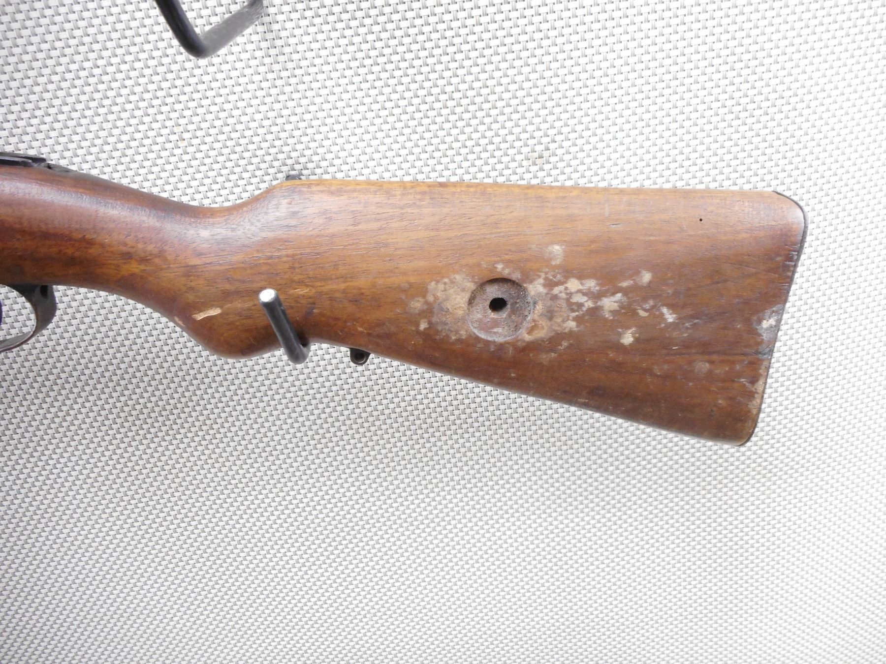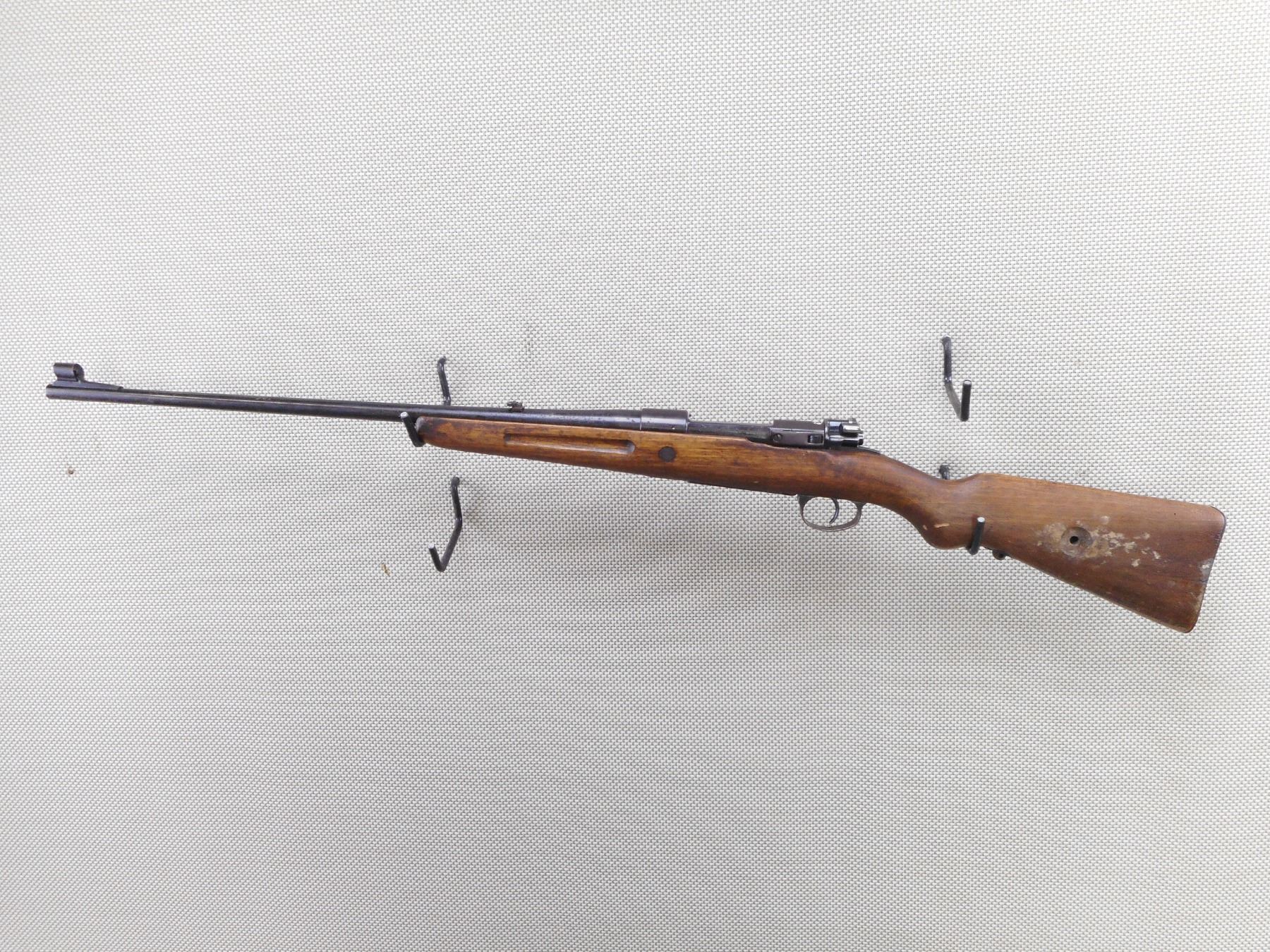 PARKER HALE , MODEL: COMMERCIAL M98 , CALIBER: 30-06 SPRG , DOES NOT HAVE EJECTOR. BORE IS VERY GOOD. ALL #'S HAVE BEEN REMOVED. DEFECTIVE BOLT RELEASE. ONE PIECE HARDWOOD STOCK WITH STEEL BUTT PLATE. MISSING THE BOLT DISASSEMBLY DISK. DRILLED AND TAPPED FOR SCOPE MOUNTS. HOODED FRONT AND ADJUSTABLE REAR SIGHTS. SHOWS EXTENSIVE HANDLING MARKS.ACTION: BOLT ACTION RIFLE , BARREL LENGTH: 24" , SERIAL # 01804 , CONDITION: 5/10 , CLASS: CANADIAN NON RESTRICTED CLASS