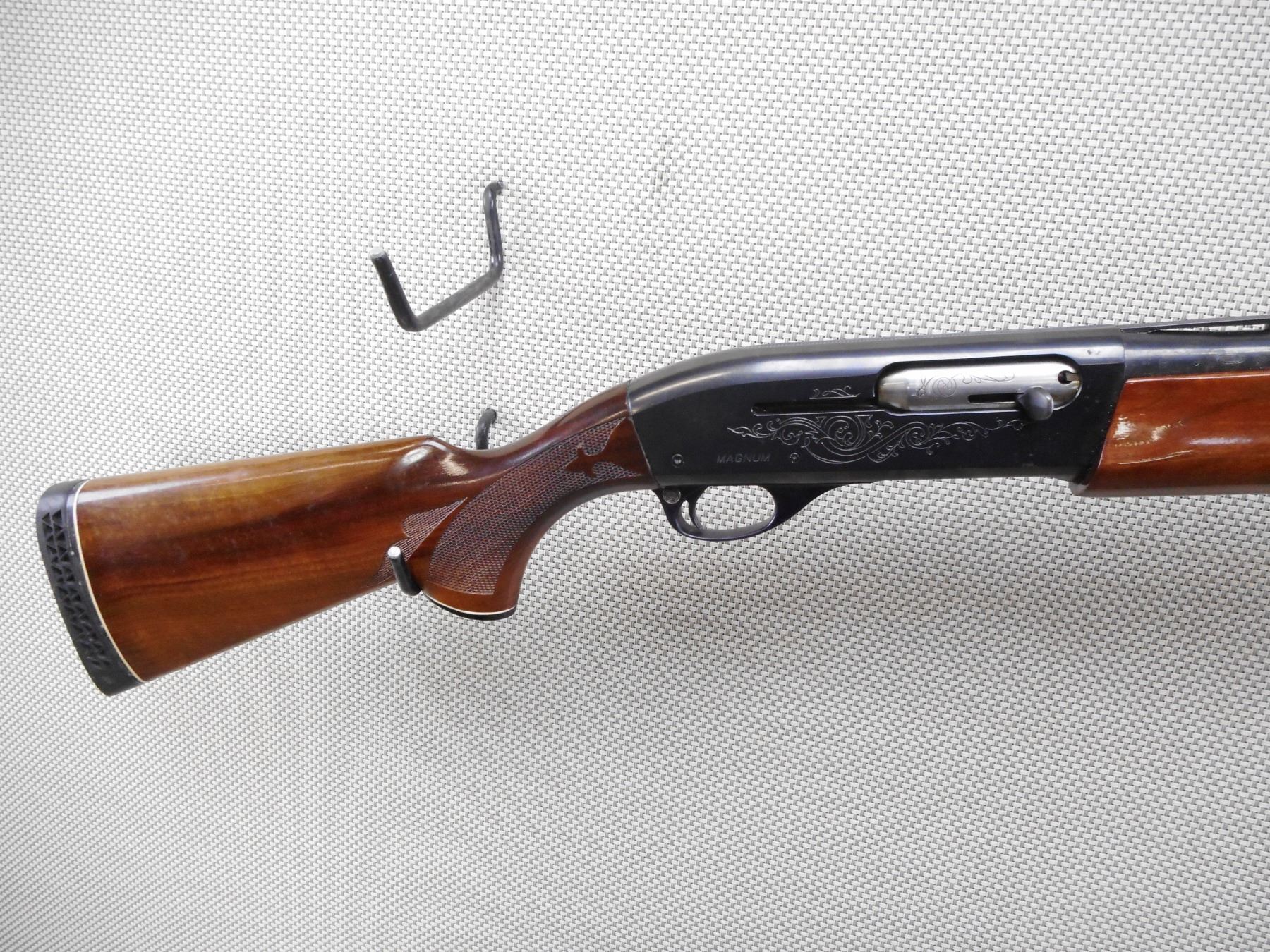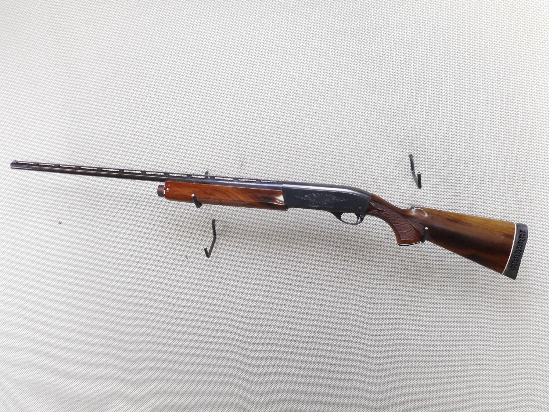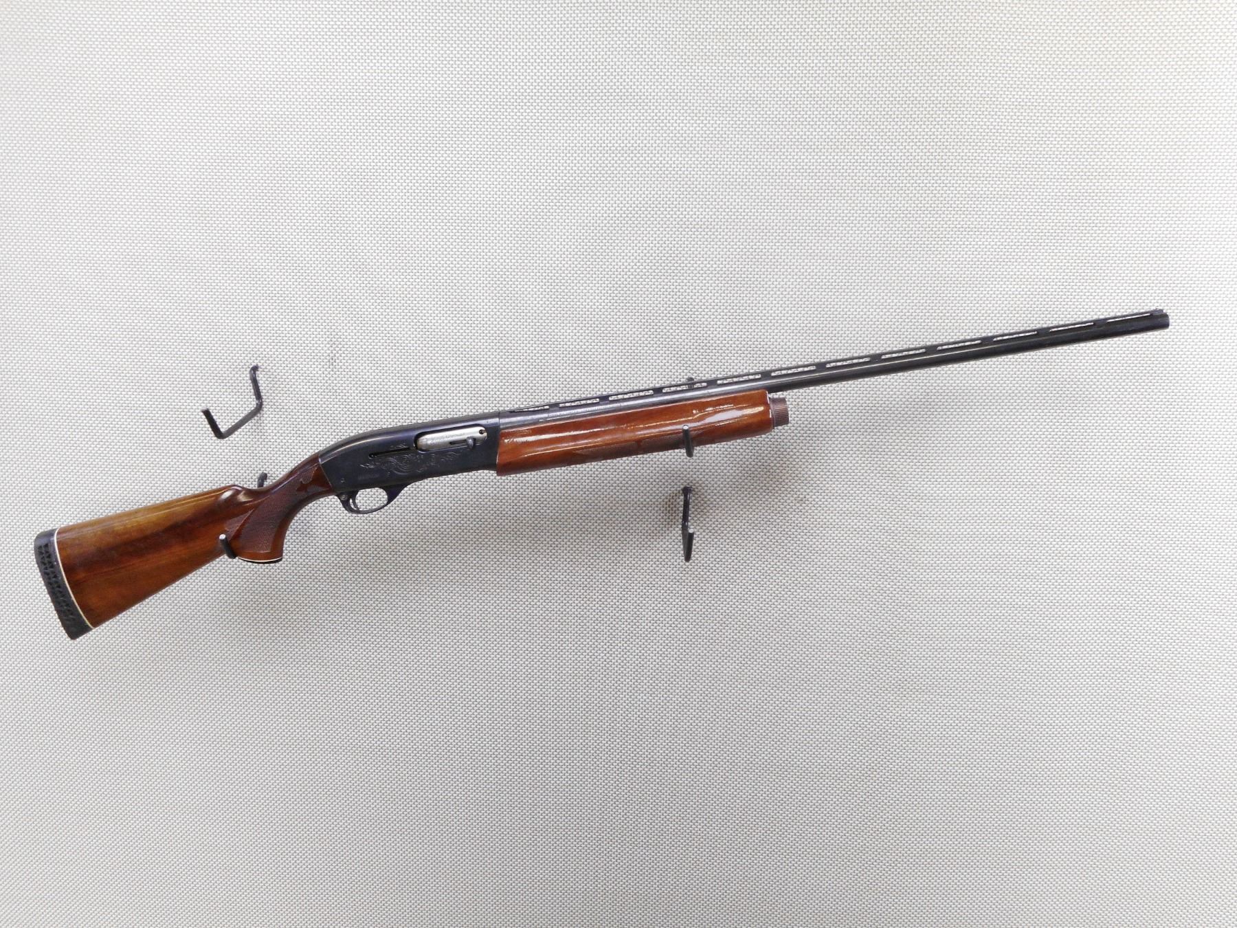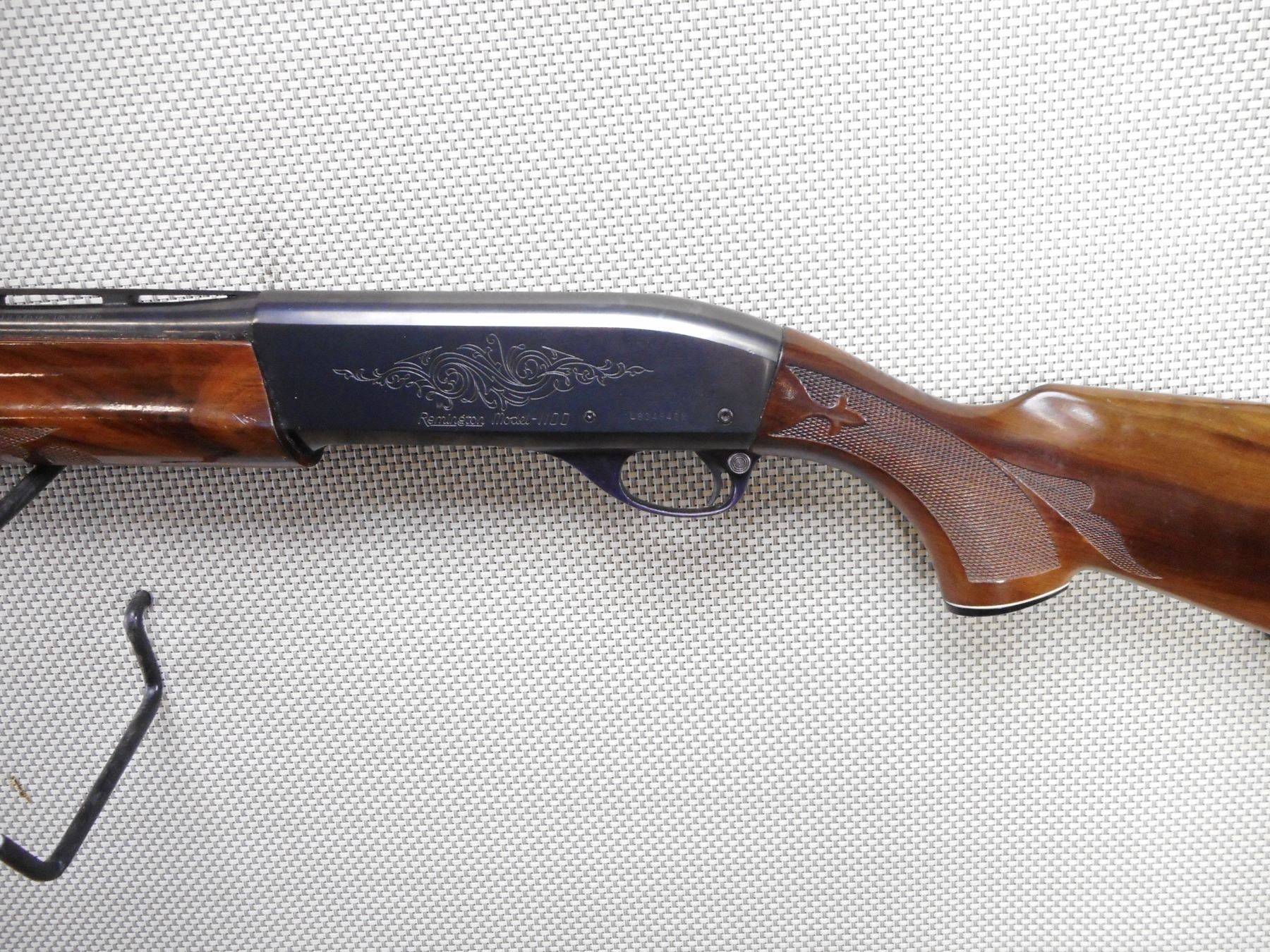 REMINGTON , MODEL: 1100 , CALIBER: 20GA X 3" , FIXED FULL CHOKE. BORE IS GOOD. BEAD FRONT SIGHT ON A VENTED RIB BARREL. CHECKERED TWO PIECE HARDWOOD STOCK WITH CAPPED PISTOL GRIP. VENTED RUBBER RECOIL PAD. SHOWS SOME HANLDING MARKS. ACTION: SEMI AUTOMATIC SHOTGUN , BARREL LENGTH: 28" , SERIAL # L834846N , CONDITION: 8/10 , CLASS: CANADIAN NON RESTRICTED CLASS