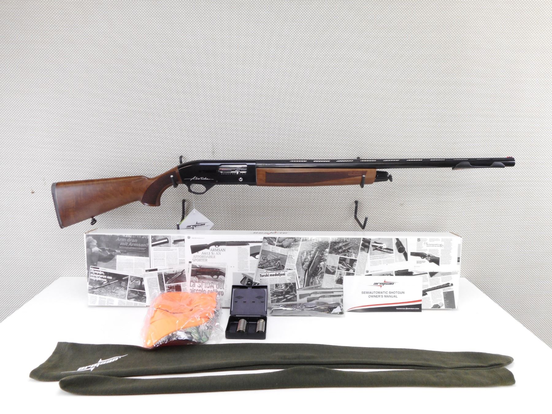 ARMSAN , MODEL: A612 , CALIBER: 12GA X 3" , COMES WITH BOX, TOTAL OF 3 CHOKES, SOCK, SLING, HAT,AND MANUAL. BORE IS EXCELLENT, APPEARS AS NEW MAY HAVE BEEN TEST FIRED AT THE FACTORY. FIBER OPTIC FRONT AND NO REAR SIGHT ON A VNETED RIB BARREL. CHECKERED TWO PIECE HARDWOOD STOCK WITH RUBBER RECOIL PAD. STILL HAS SOME ORIGINAL TAGS. SHOWS VIRTUALLY NO HANDLING MARKS. ACTION: SEMI AUTOMATIC SHOTGUN , BARREL LENGTH: 28" , SERIAL # 16A63942 , CONDITION: AS NEW IN BOX , CLASS: CANADIAN NON RESTRICTED CLASS