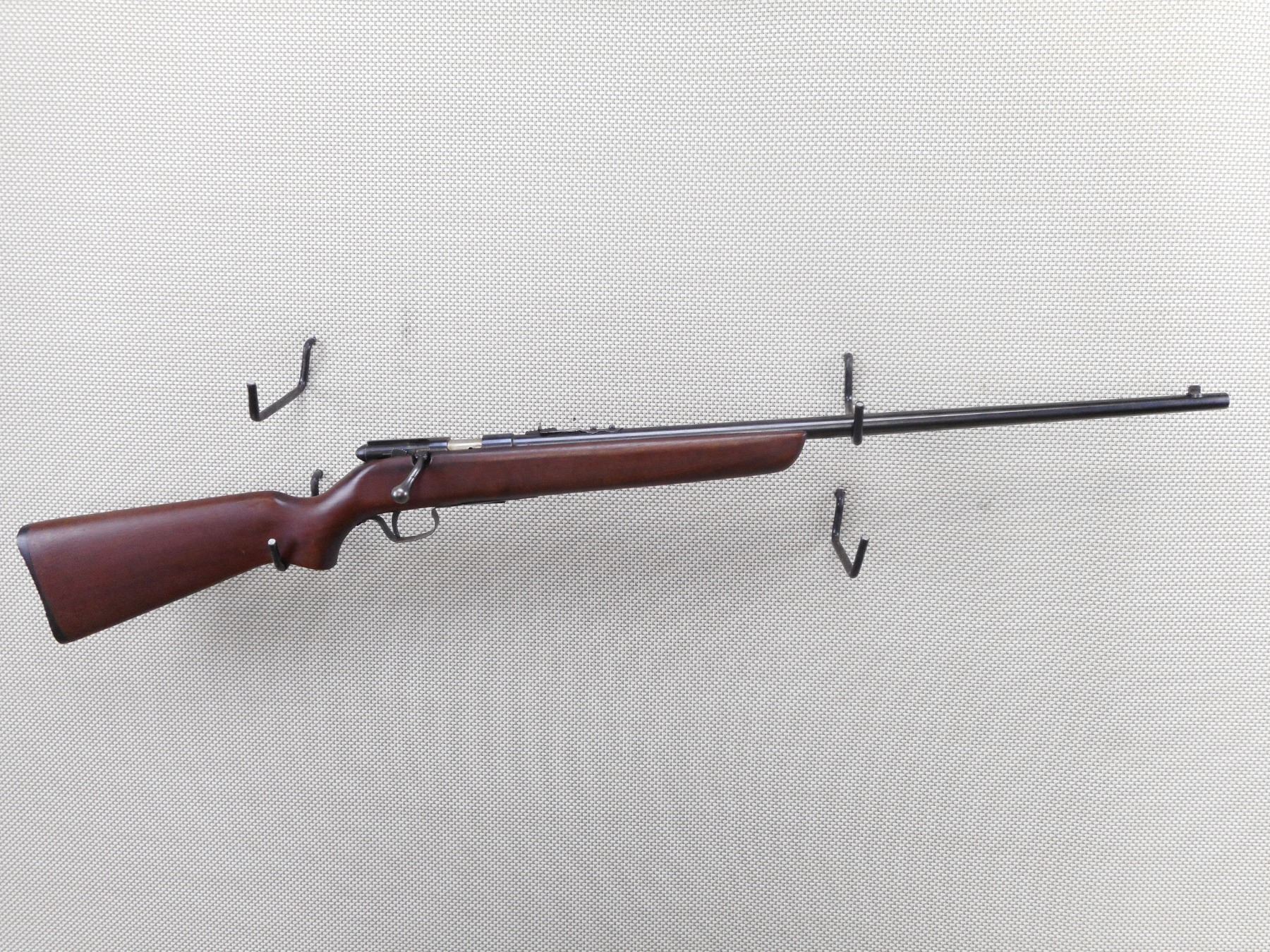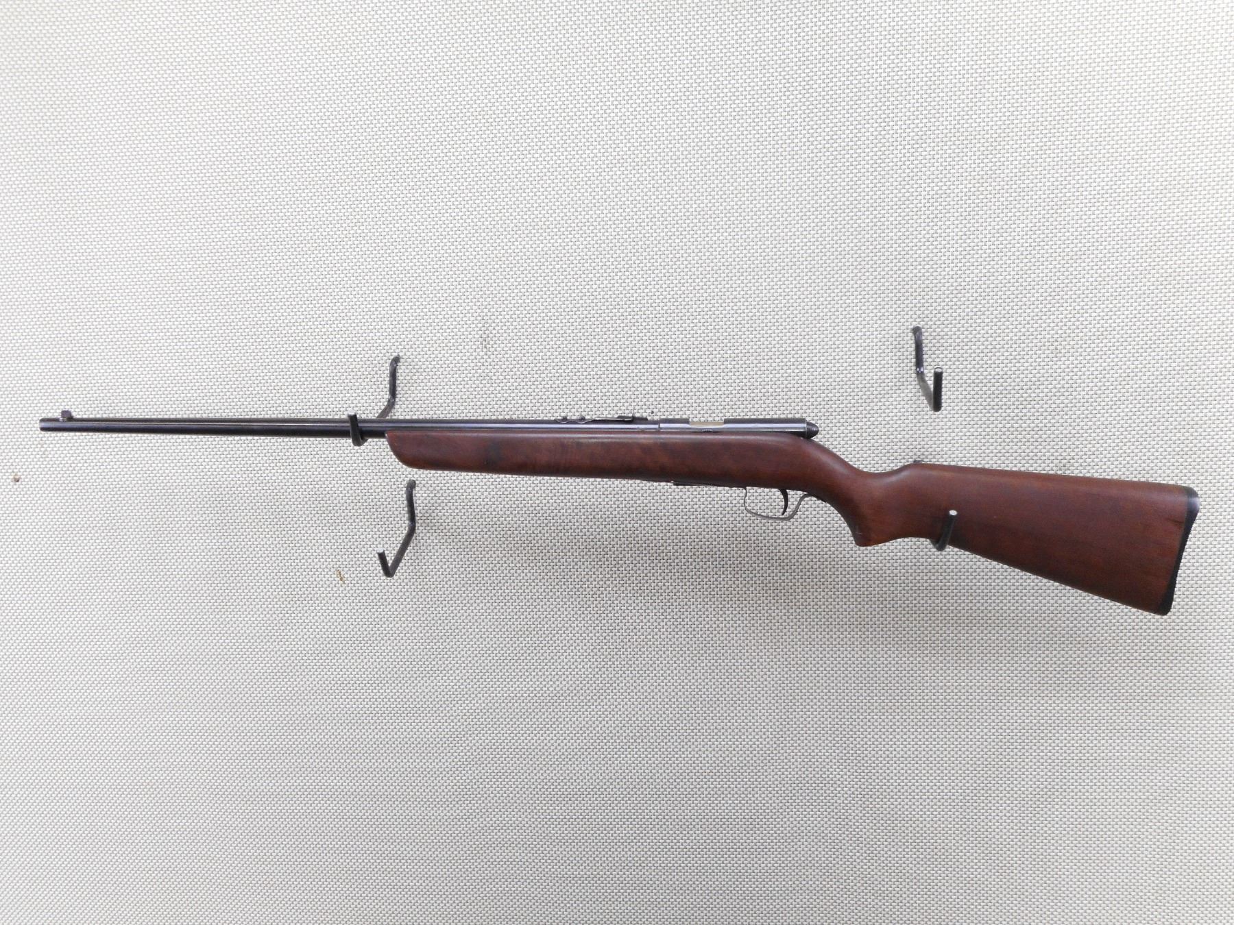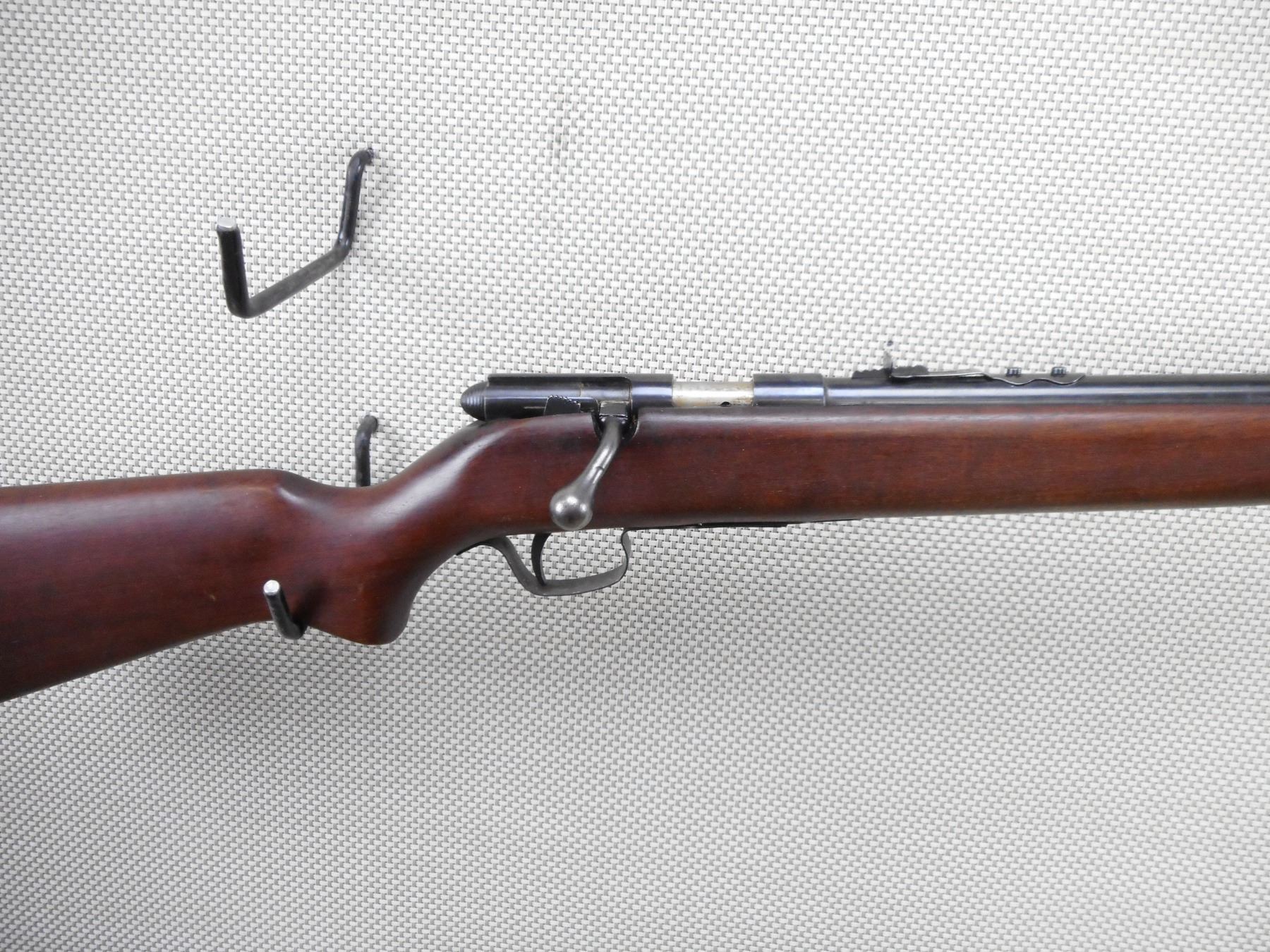 HARRINGTON & RICHARDSON , MODEL: 865 PLAINSMAN , CALIBER: 22 LR , COMES WITH MAGAZINE. BORE IS VERY GOOD. BLADE FRONT AND ADJUSTABLE REAR SIGHT. ONE PIECE HARDWOOD STOCK WITH PLASTIC BUTT PLATE. SHOWS SOME HANLDING MARKS. ACTION: BOLT ACTION RIFLE , BARREL LENGTH: 24" , SERIAL # N/A , CONDITION: 7/10 , CLASS: CANADIAN NON RESTRICTED CLASS