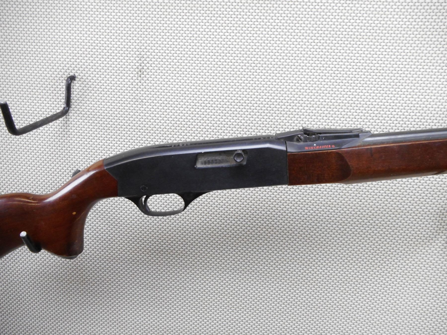 WINCHESTER , MODEL: 290 , CALIBER: 22 LR , BORE IS GOOD. BLADE FRONT AND ADJUSTABLE REAR SIGHT. TWO PIECE HARDWOOD STOCK WITH CAPPED PISTOL GRIP AND PLASTIC BUTT PLATE. SHOWS SOME HANDLING MARKS. ACTION: SEMI AUTOMATIC RIFLE , BARREL LENGTH: 21" , SERIAL # 67527 , CONDITION: 6/10 , CLASS: CANADIAN NON RESTRICTED CLASS