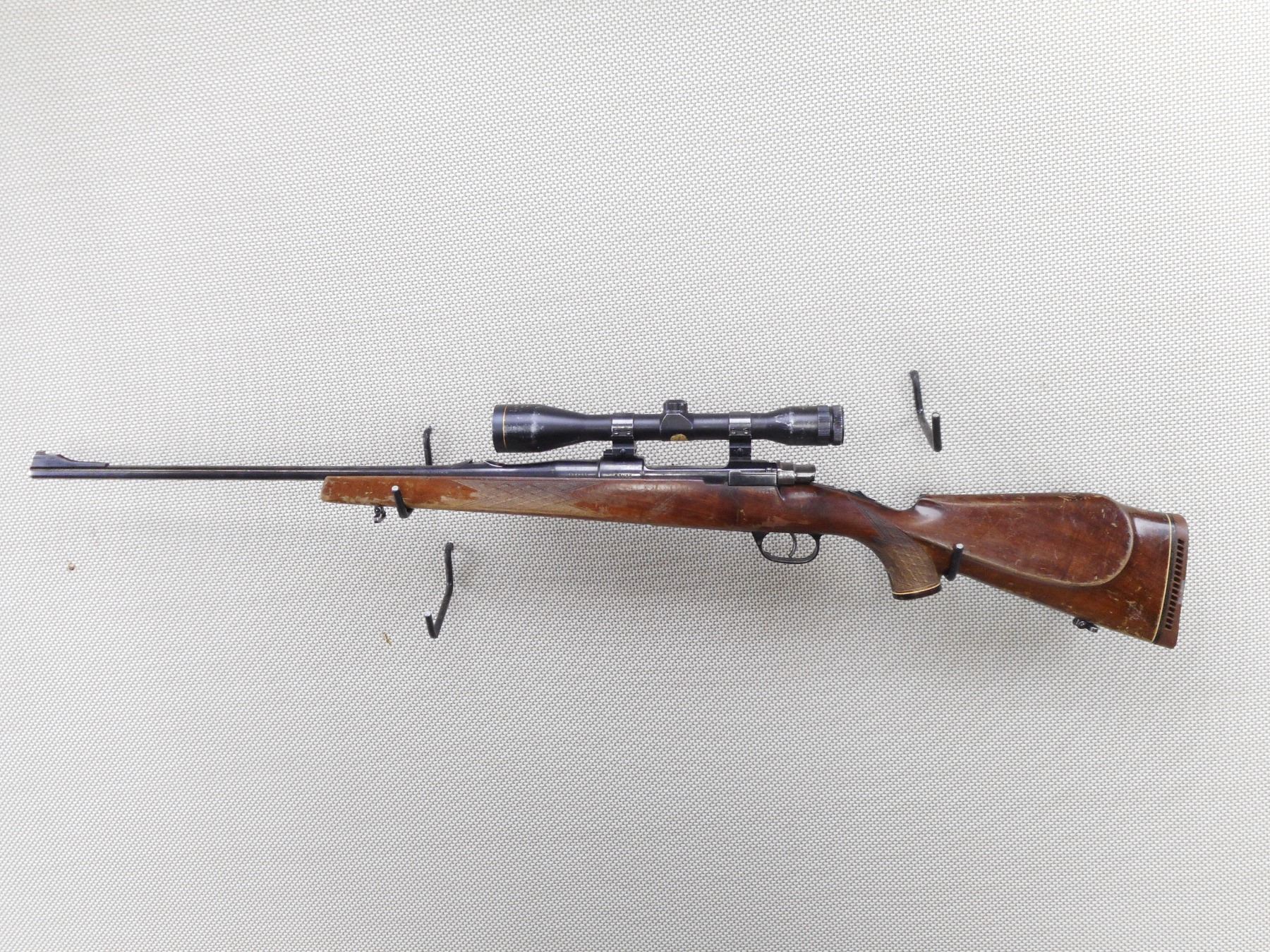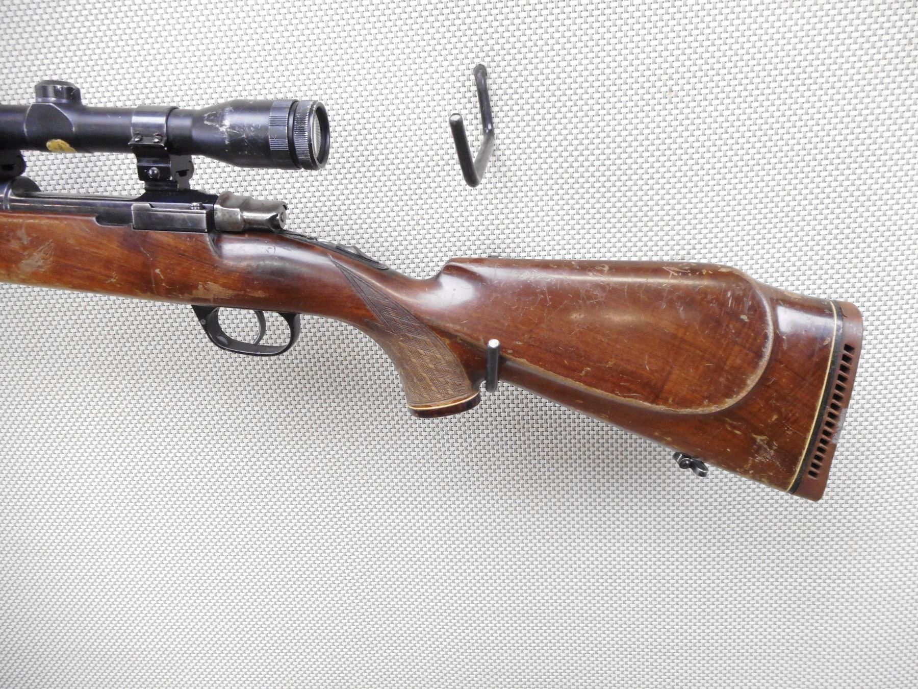 VOERE , MODEL: M98 COMMERCIAL , CALIBER: 30-06 SPRG , VERY GOOD BORE. BLADE FRONT MISSING THE REAR SIGHT. MIROKU 6 X SCOPE. ONE PIECE CHECKERED HARDWOOD STOCK WITH RAISED CHEEK PIECE AND VENTED RUBBER RECOIL PAD. SLING SWIVEL LOOPS. STOCK SHOWS EXTENSIVE HANDLING MARKS. ACTION: BOLT ACTION RIFLE , BARREL LENGTH: 24" , SERIAL # 83092 , CONDITION: 6/10 , CLASS: CANADIAN NON RESTRICTED CLASS
