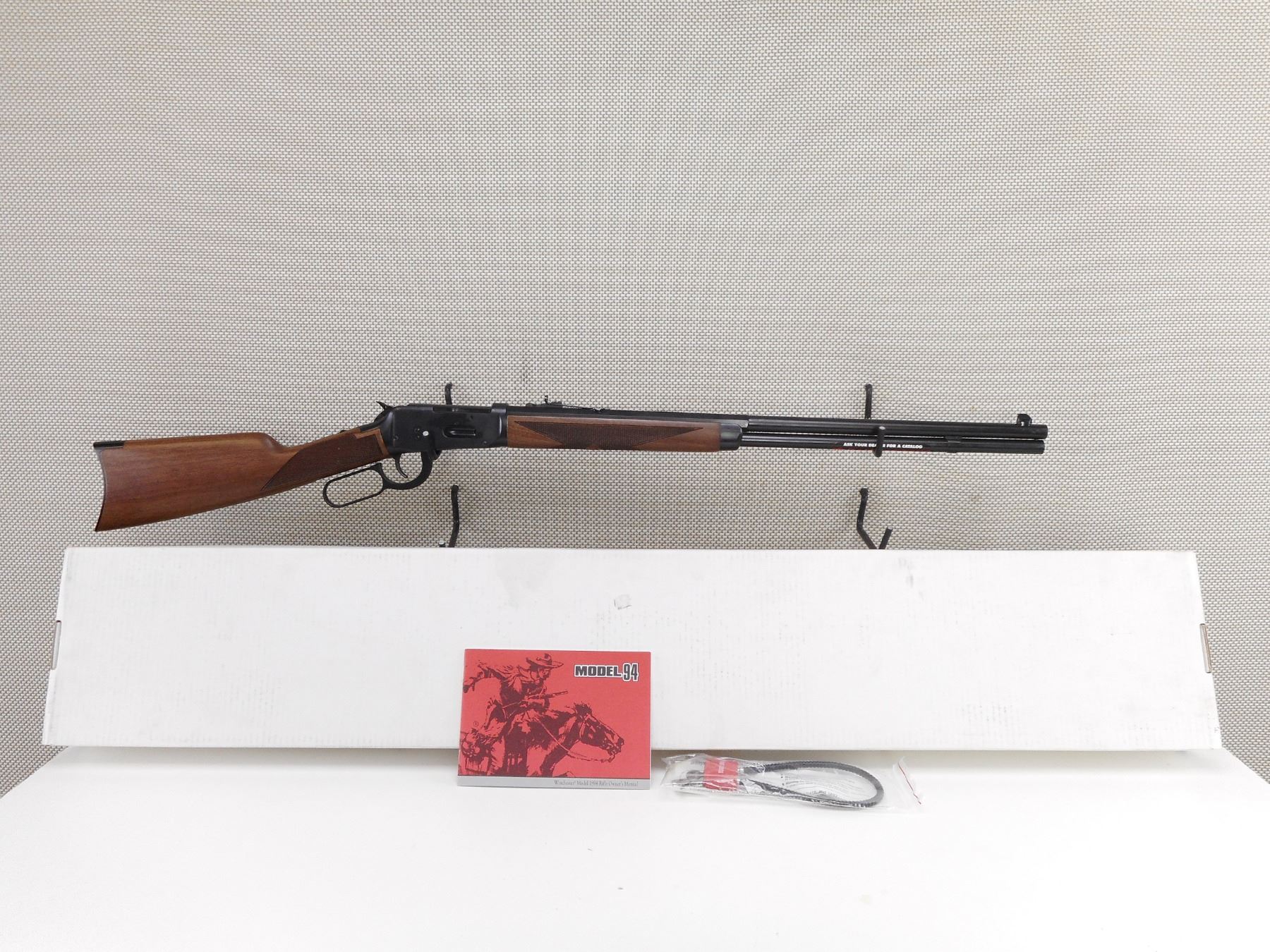 WINCHESTER , MODEL: 1894 SPECIAL ORDER , CALIBER: 30-30 WIN , COMES WITH BOX, MANUAL, CABLE LOCK. BORE IS EXCELLENT, APPEARS AS NEW, MAY HAVE BEEN TEST FIRED. BLADE FRONT SIGHT AND ADJUSTABLE REAR SIGHT. 1/2 ROUND 1/2 OCTAGONAL BARREL. CHECKERED TWO PIECE HARDWOOD STOCK WITH CRESCENT BUTT PLATE. SHOWS VIRTUALLY NO HANLDING MARKS.ACTION: LEVER ACTION RIFLE , BARREL LENGTH: 24" , SERIAL # 00258ZM94A , CONDITION: AS NEW IN BOX , CLASS: CANADIAN NON RESTRICTED CLASS