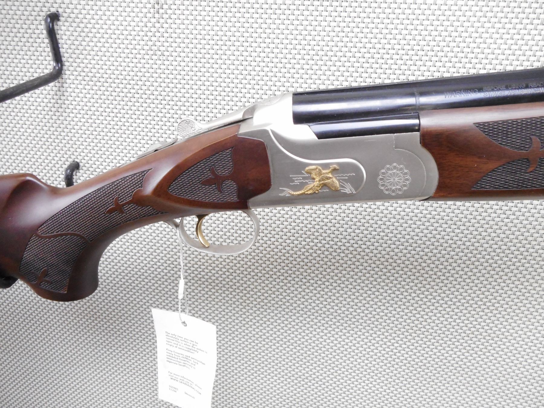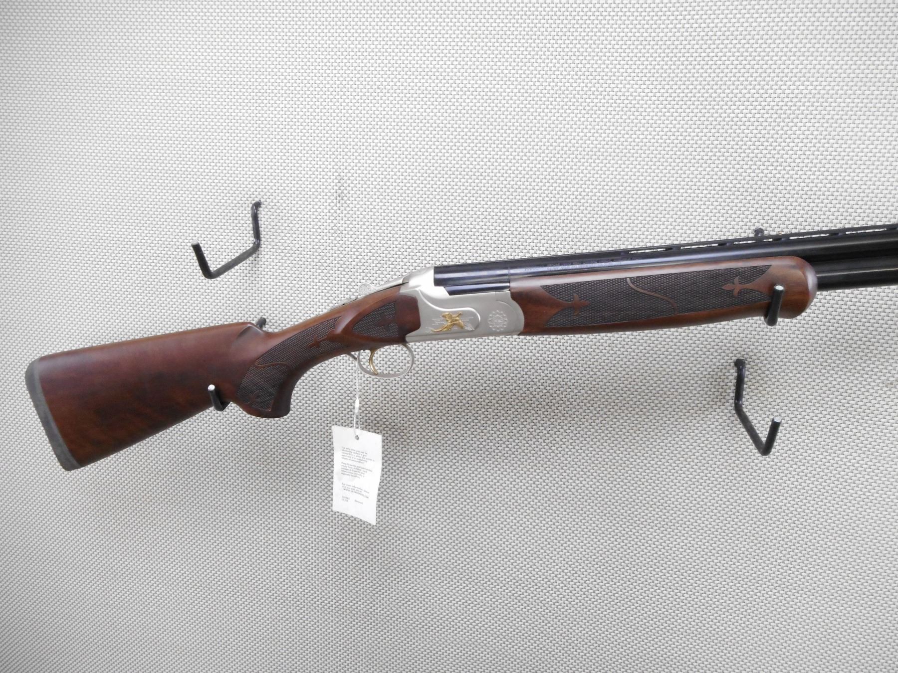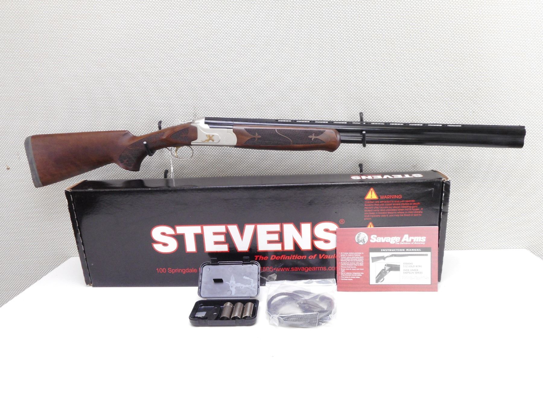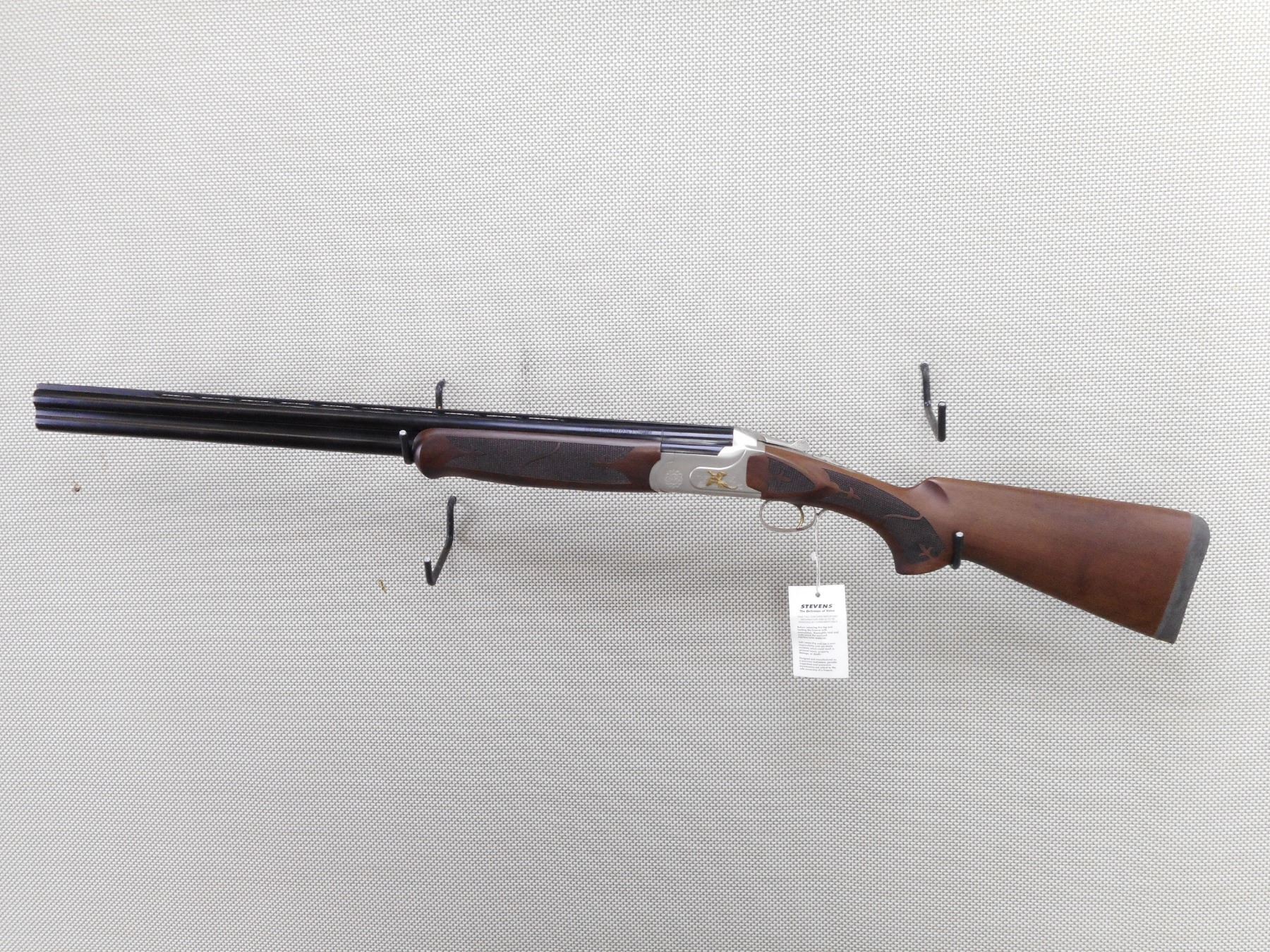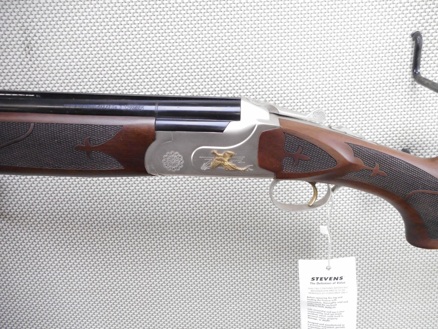 STEVENS , MODEL: 512 GOLDWING , CALIBER: 12GA X 3" , COMES WITH BOX, TOTAL OF 5 CHOKES WITH CHOKE WRENCH, CABLE LOCK, MANUAL. BORES ARE EXCELLENT, APPEARS AS NEW, MAY HAVE BEEN TEST FIRED. CHECKERED FOREND AND SEMI PISTOL GRIP BUTT STOCK WITH RUBBER RECOIL PAD. HIGH RELIEF GOLD PHESANTS ON THE RECEIVER. EXTRACTORS. LENGTH OF PULL IS 14". SINGLE SELECTIVE GOLD TRIGGER. SHOWS VIRTUALLY NO HANDLING MARKS. ACTION: OVER UNDER BREAK ACTION SHOTGUN , BARREL LENGTH: 28" , SERIAL # U10A0688 , CONDITION: AS NEW IN BOX , CLASS: CANADIAN NON RESTRICTED CLASS