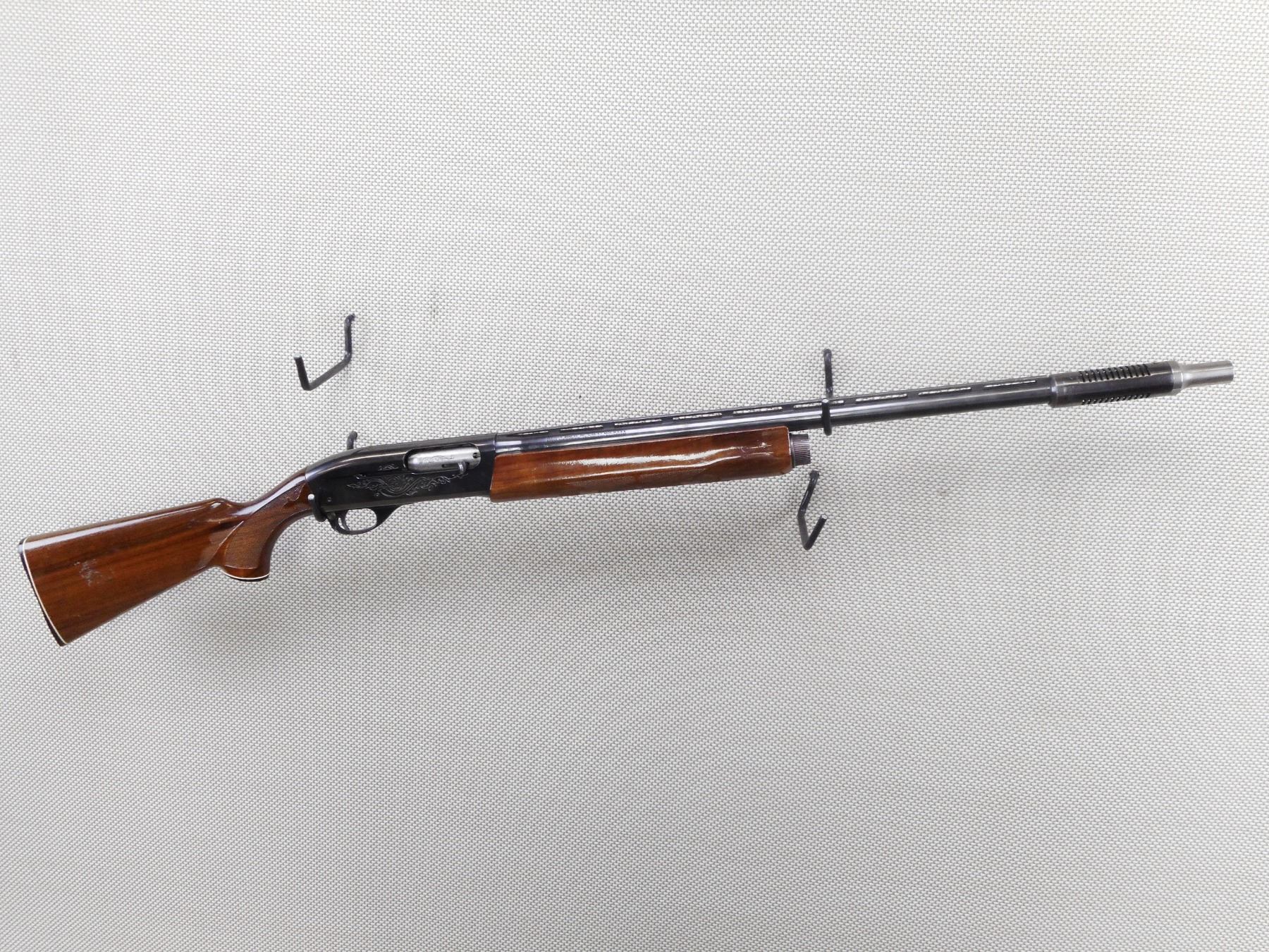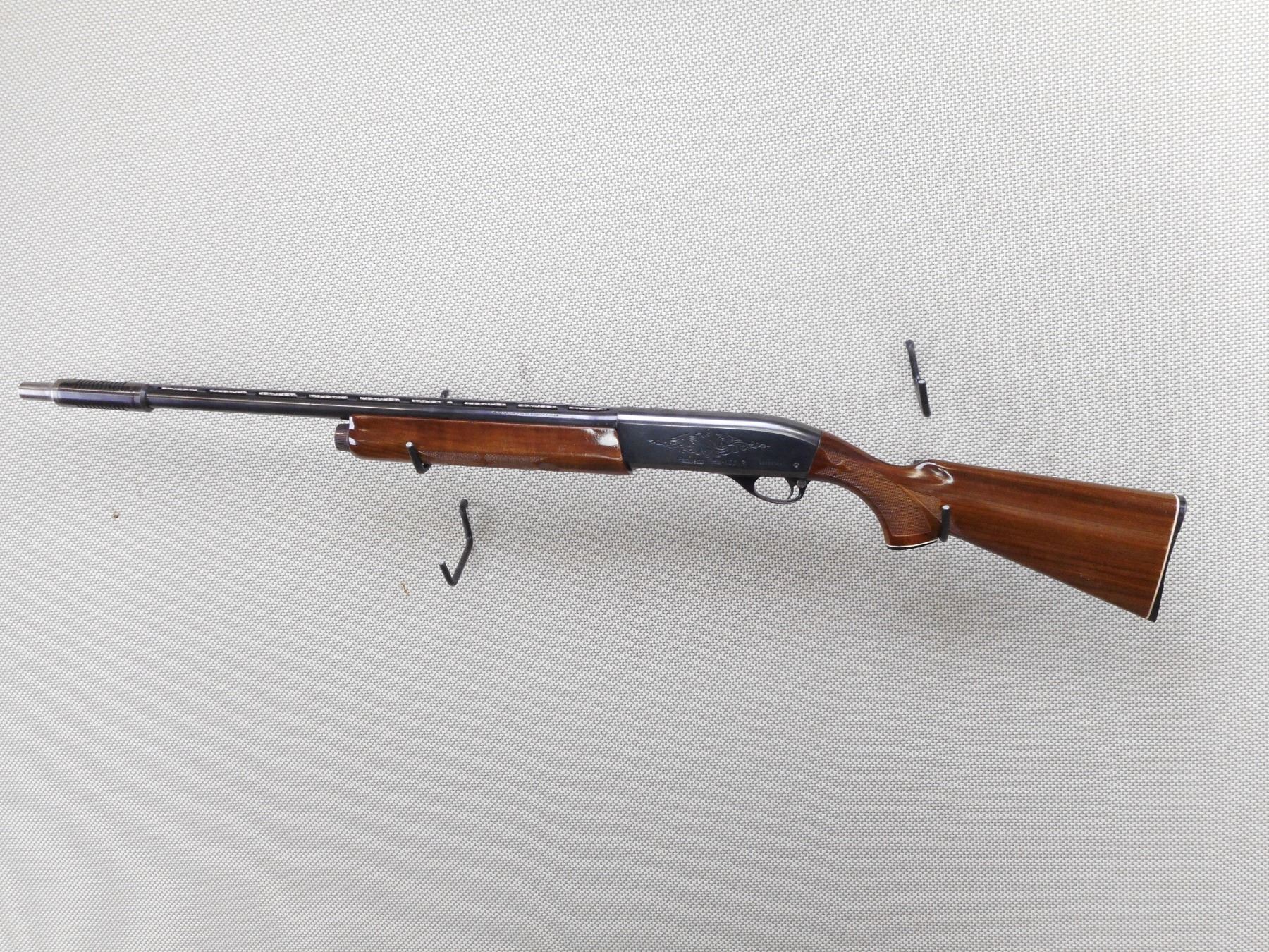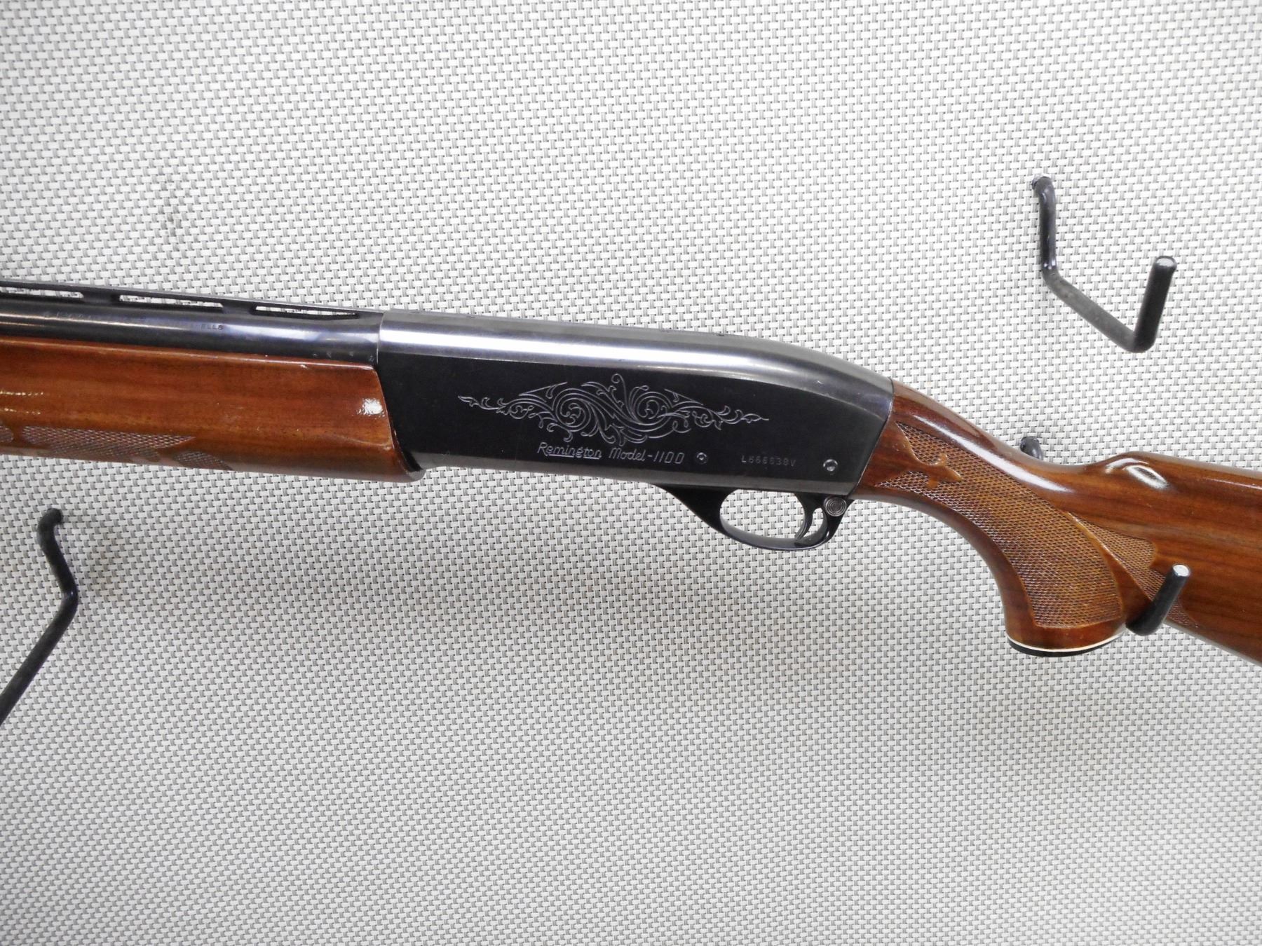 REMINGTON , MODEL: 1100 , CALIBER: 12GA X 2 3/4" , CUTZ COMPENSATOR FULL CHOKE. BORE IS GOOD. BEAD FRONT AND MID BEAD SIGHTS ON A VENTED RIB BARREL. DRILLED AND TAPPED FOR SCOPE MOUNTS. CHECKERED TWO PIECE HARDWOOD STOCK WITH CAPPED PISTOL GRIP AND BUTT PLATE. SMALL CRACK AT THE WRIST. SHOWS SOME HANDLING MARKS.ACTION: SEMI AUTOMATIC SHOTGUN , BARREL LENGTH: 23" , SERIAL # L666638V , CONDITION: 7/10 , CLASS: CANADIAN NON RESTRICTED CLASS