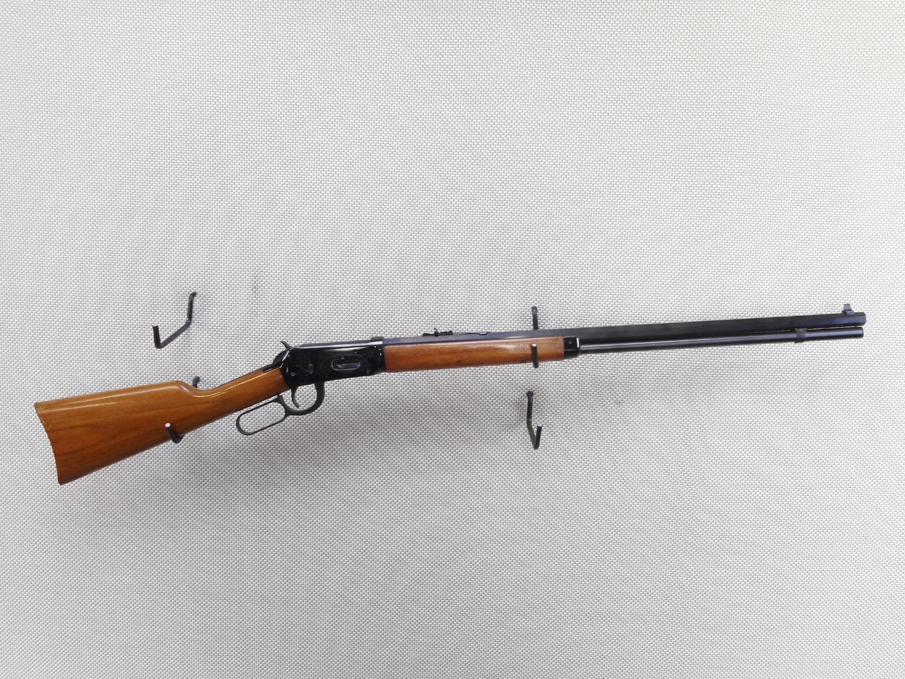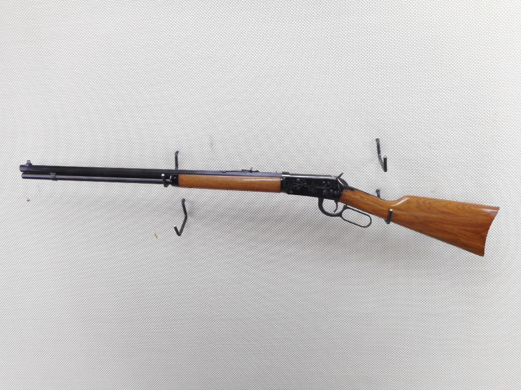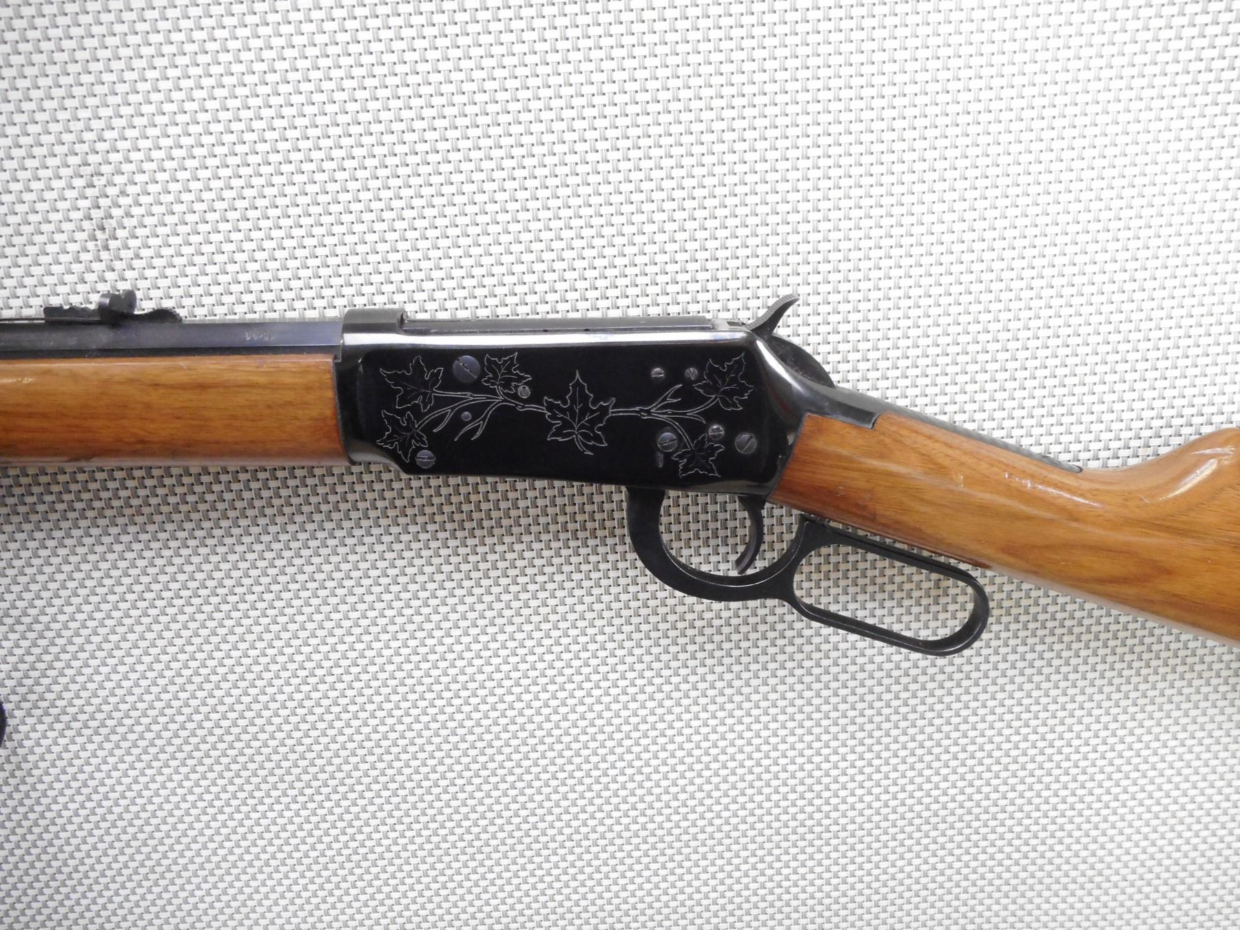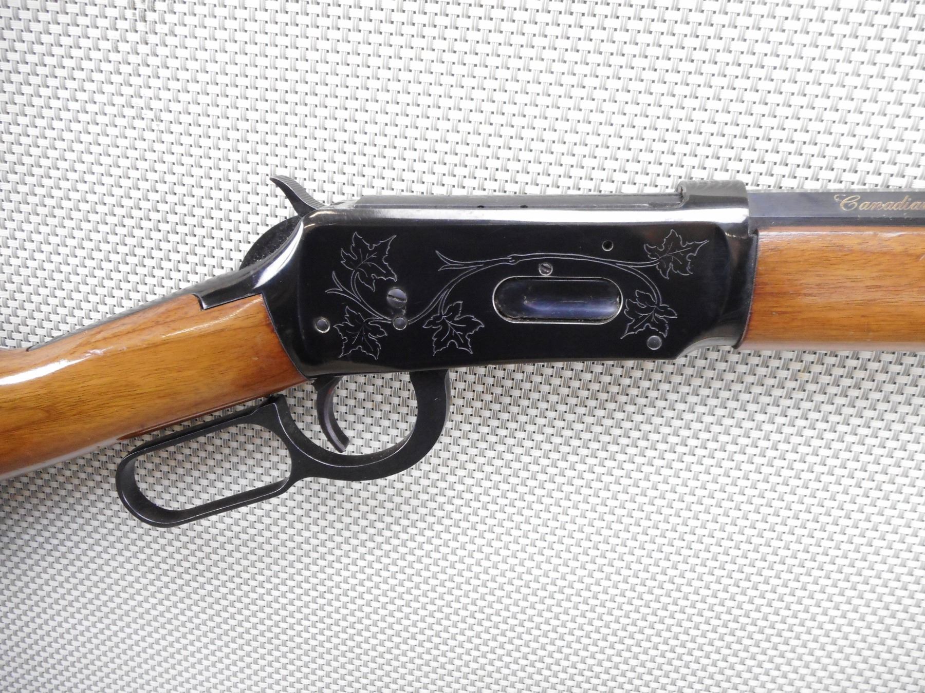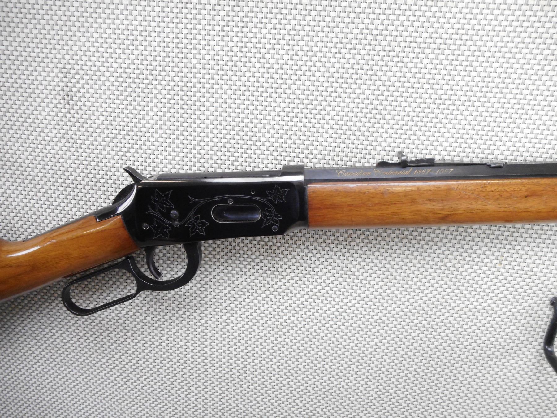 WINCHESTER , MODEL: CANADIAN CENTENNIAL COMMEMORATIVE , CALIBER: 30-30 WIN , COMES WITH BOX, AND PAPERWORK. BORE IS EXCELLENT, APPEARS AS NEW, MAY HAVE BEEN TEST FIRED. BLADE FRONT AND ADJUSTABLE REAR SIGHT ON AN OCTAGONAL BARREL. TWO PIECE HARDWOOD STOCK WITH STEEL BUTT PLATE. SOME VERY LIGHT SURFACE RUST AROUND SOME OF THE SCREWS. SHOWS VITRUALLY NO HANDING MARKS. ACTION: LEVER ACTION RIFLE , BARREL LENGTH: 26" , SERIAL # 14465 , CONDITION: 9/10 , CLASS: CANADIAN NON RESTRICTED CLASS